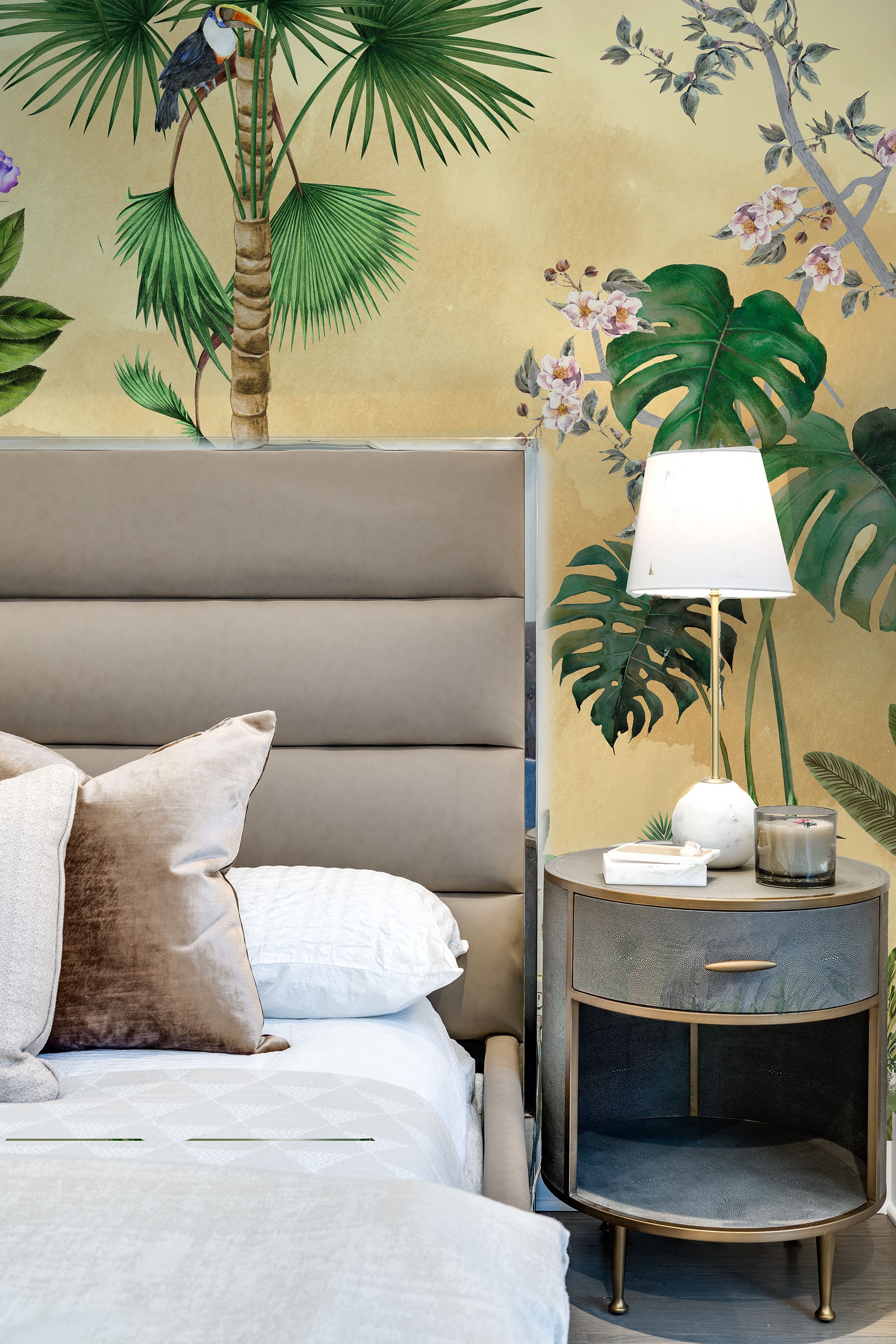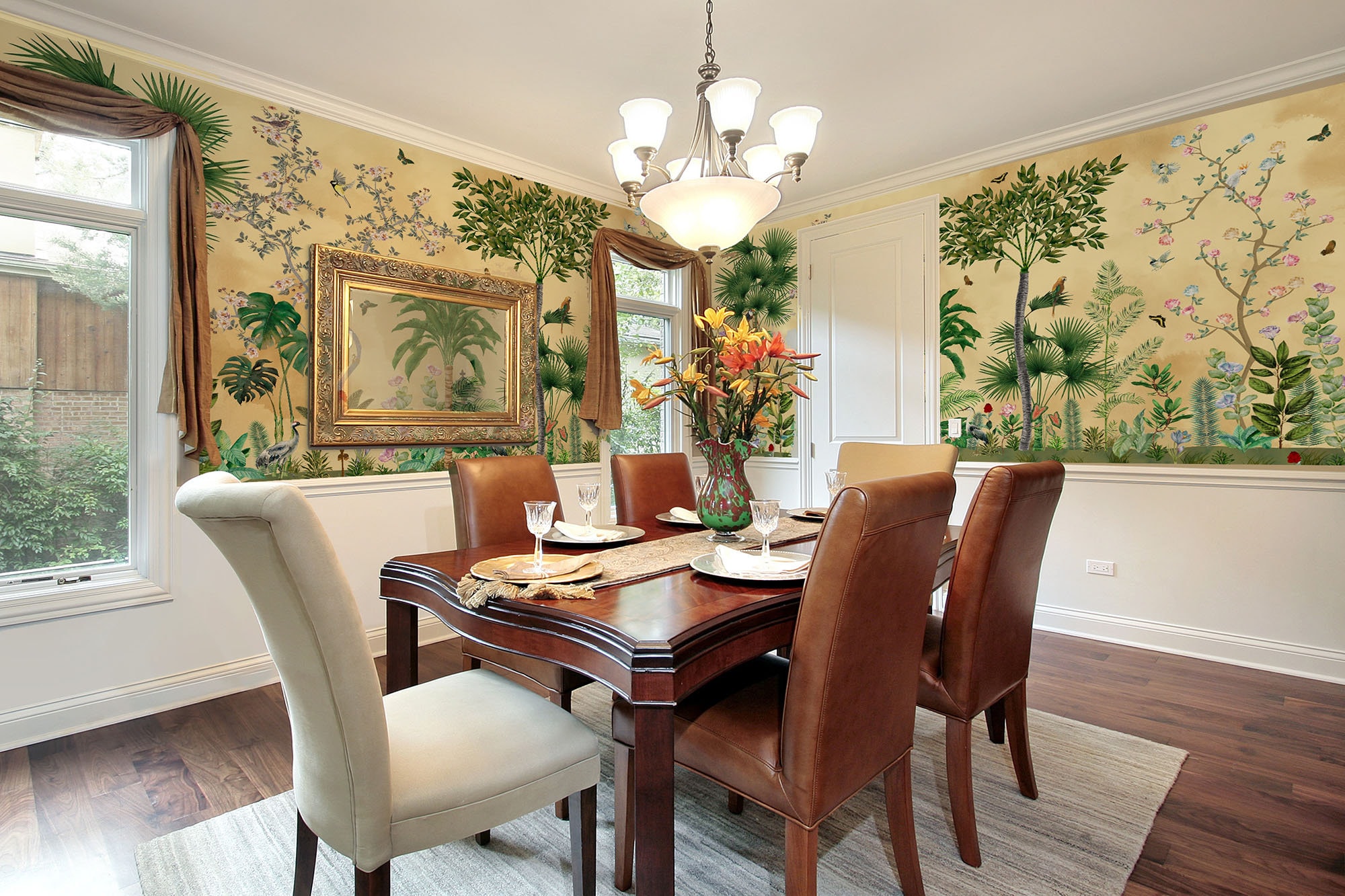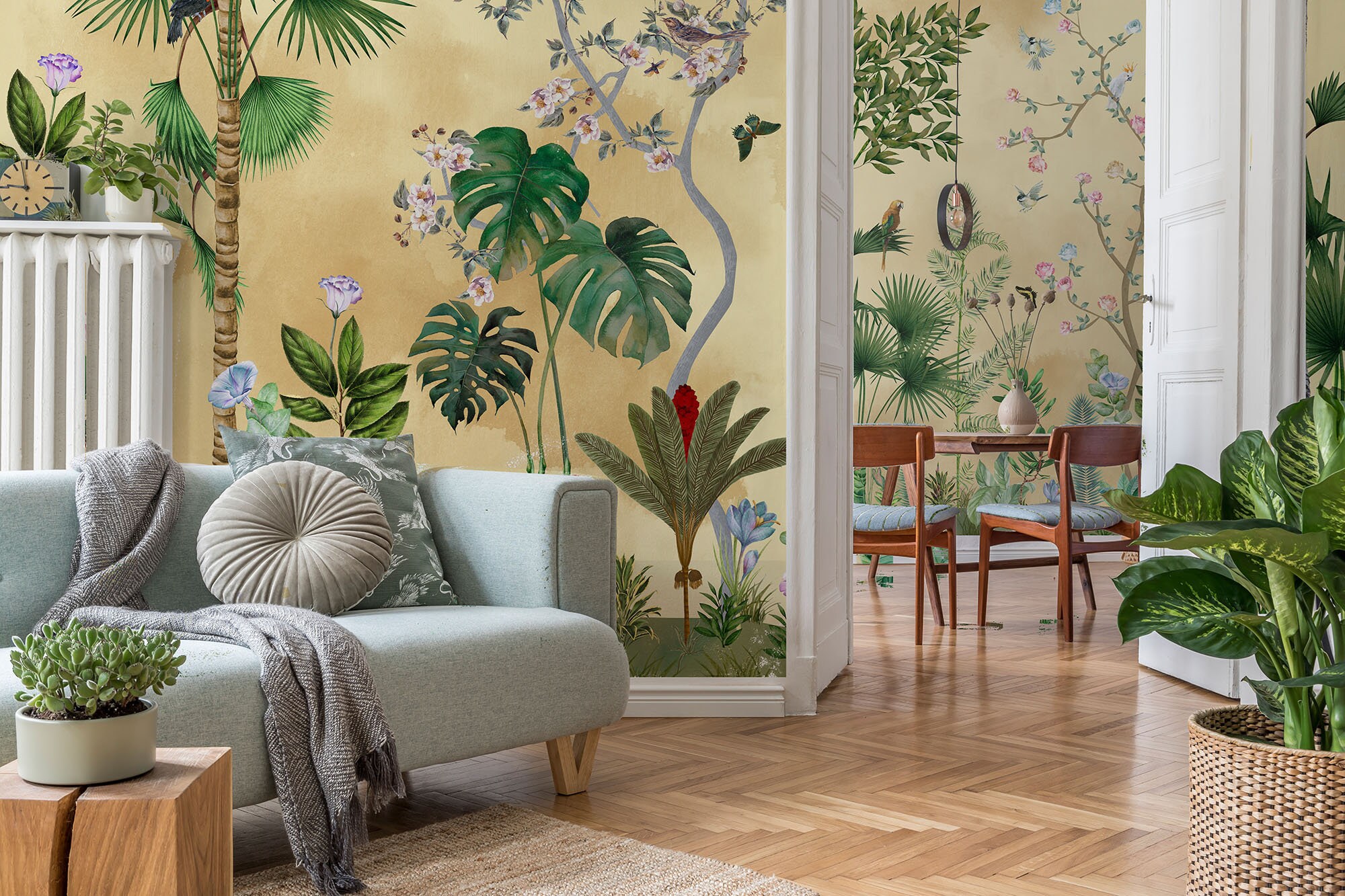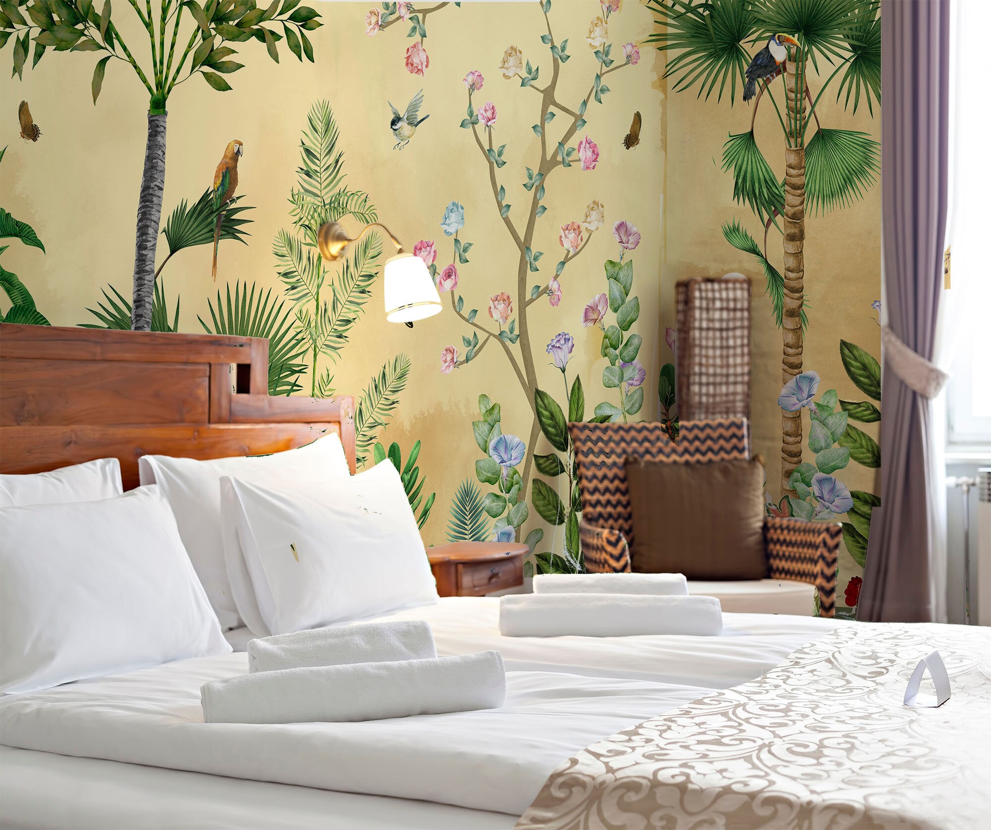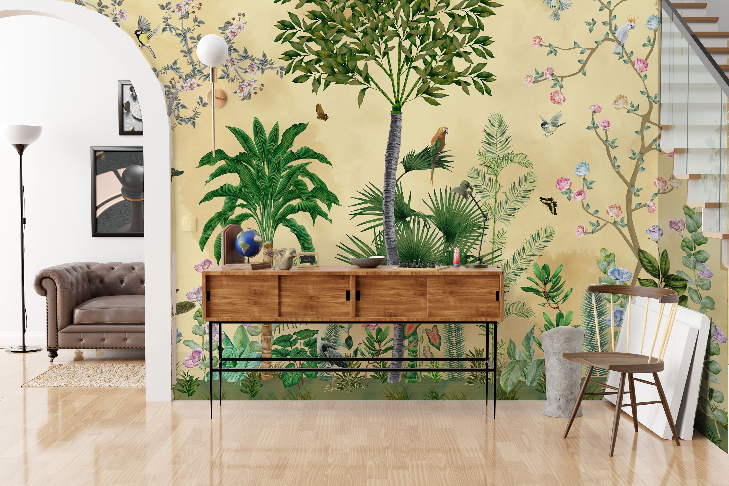 Introducing our Chinoiserie-inspired Home Décor Wallpapers! We've reimagined and modernized this timeless art form to suit today's aesthetic. Infused with vibrant yellow tones, these wallpapers bring the beauty of a mesmerizing sunset into your living space, as if you've captured a gift from nature itself. Step into a world of exotic plants and trees, as giant leaves and newly bloomed spring trees accompany you on this captivating journey. The best part Our wallpapers are not only visually stunning but also highly functional. With waterproof and vinyl paper alternatives, they are incredibly easy to apply and maintain. Crafted with utmost care using premium quality materials, these wallpapers are designed to bring joy and sophistication to esteemed individuals, just like you. Elevate your home with our healthy and high-quality papers that exude elegance and charm.