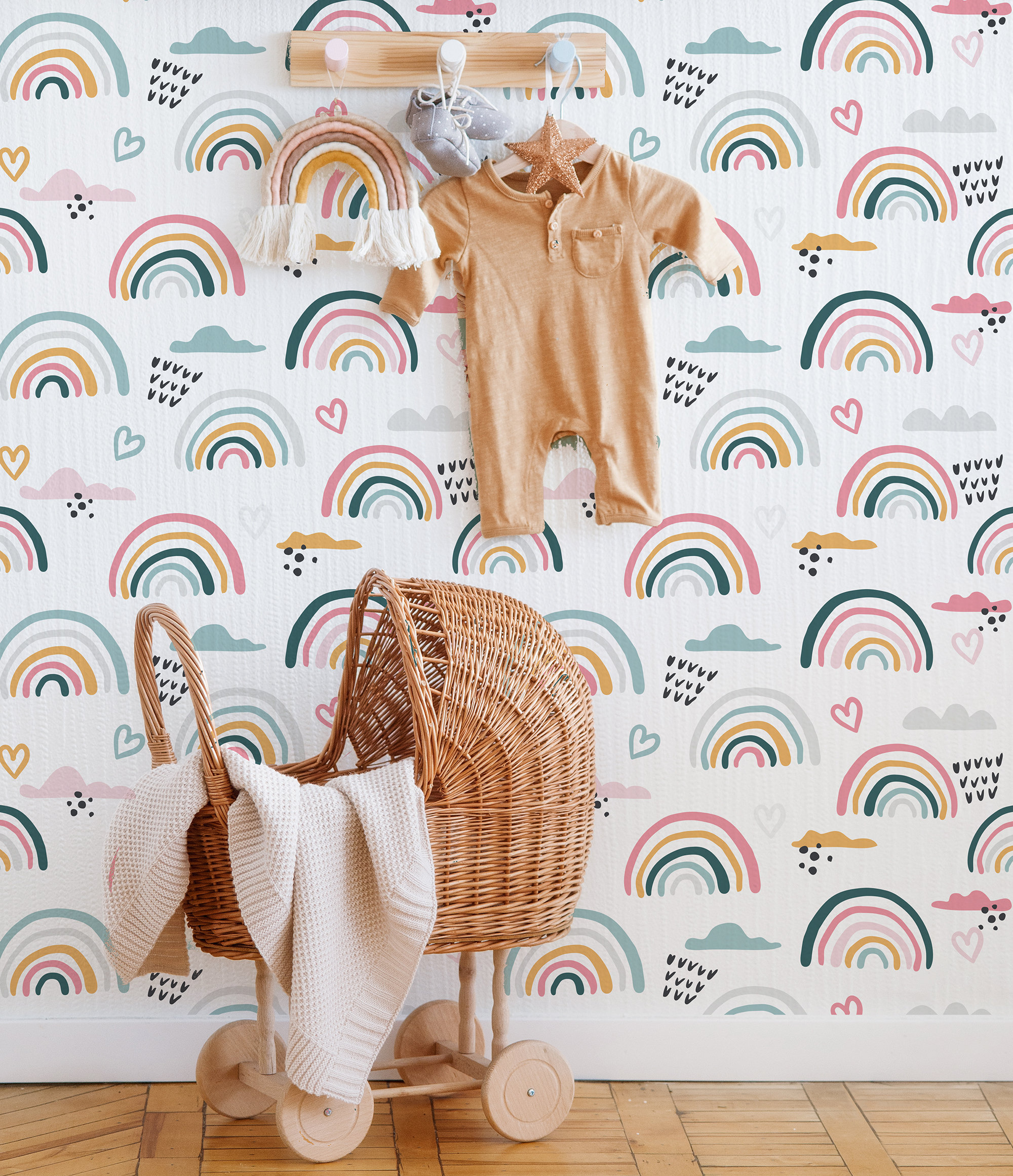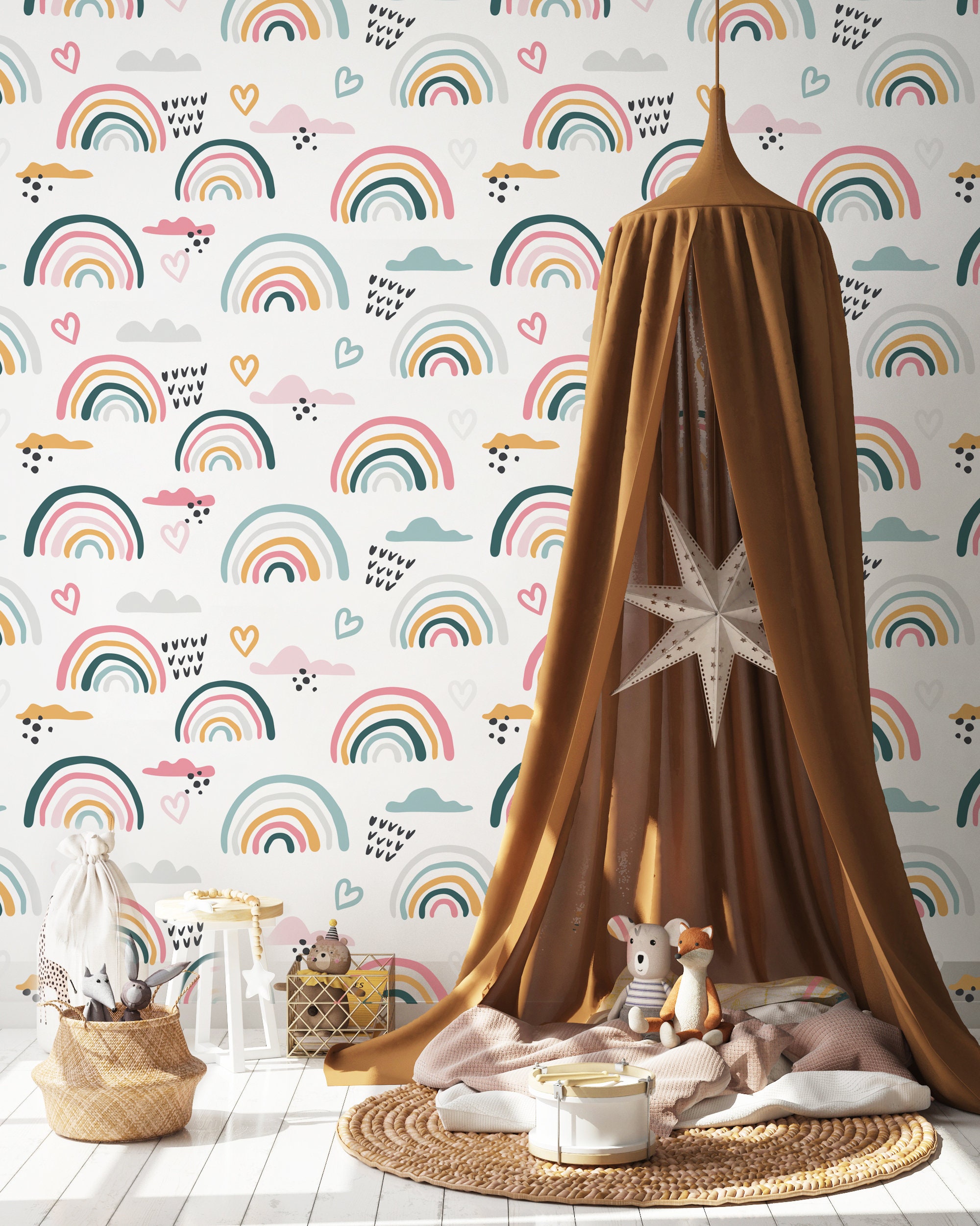 Cute Heart with Rainbow Wallpaper - Perfect for Pretty Nursery Decor,removable,self adhesive,peel and stick,vinly,wall mural,thick wallpaper
