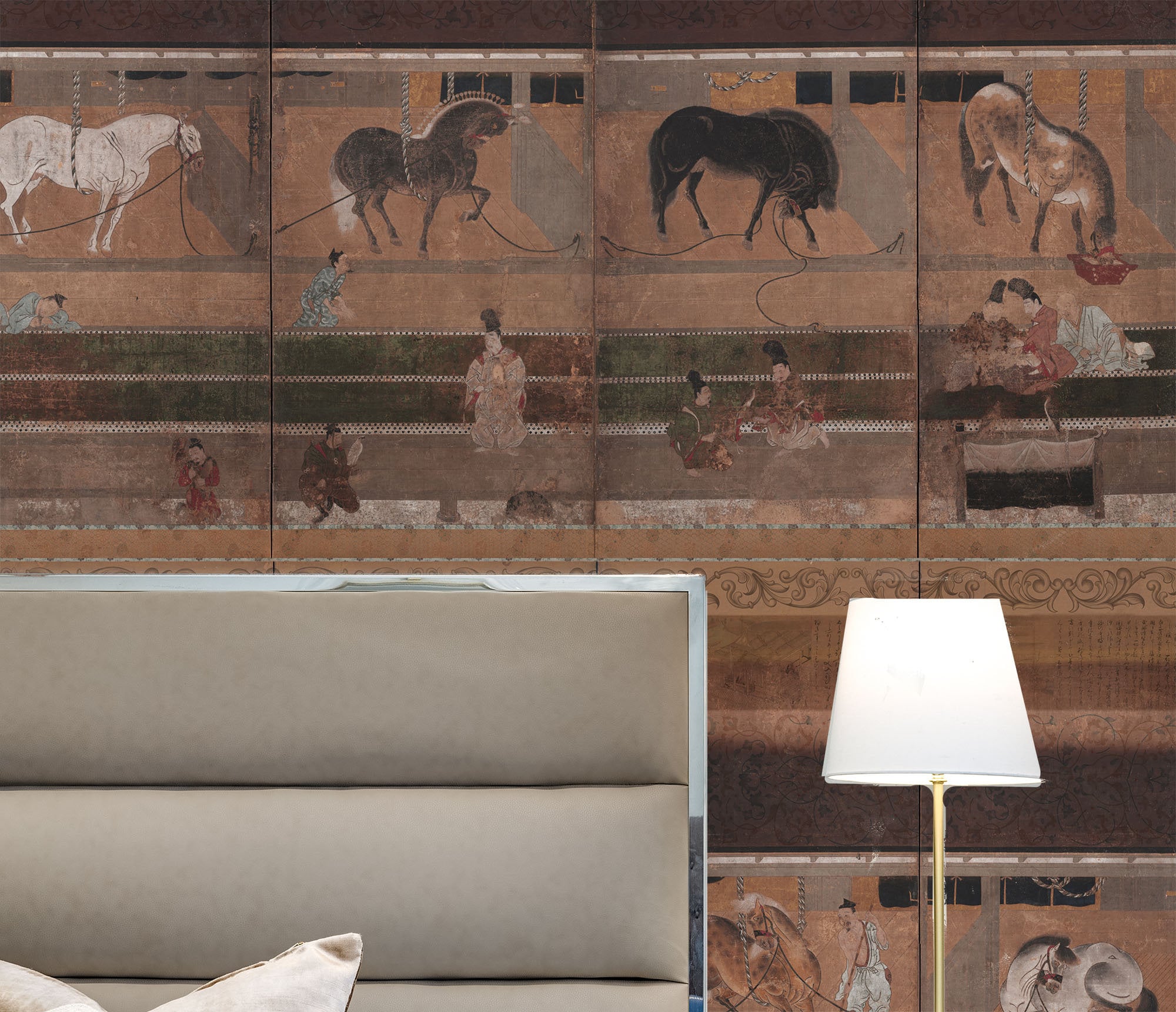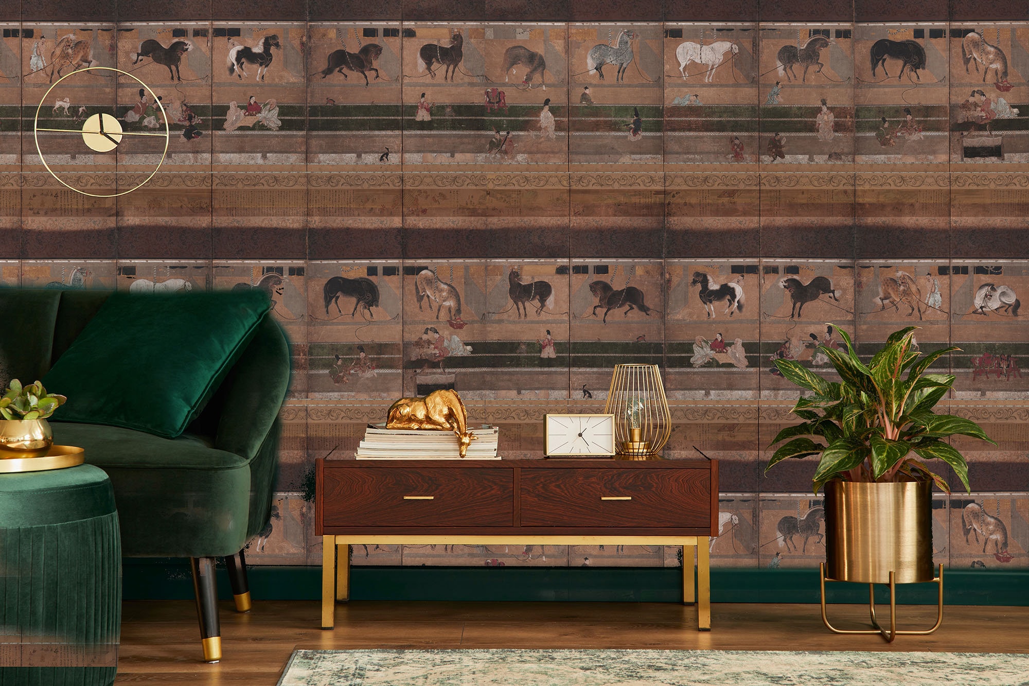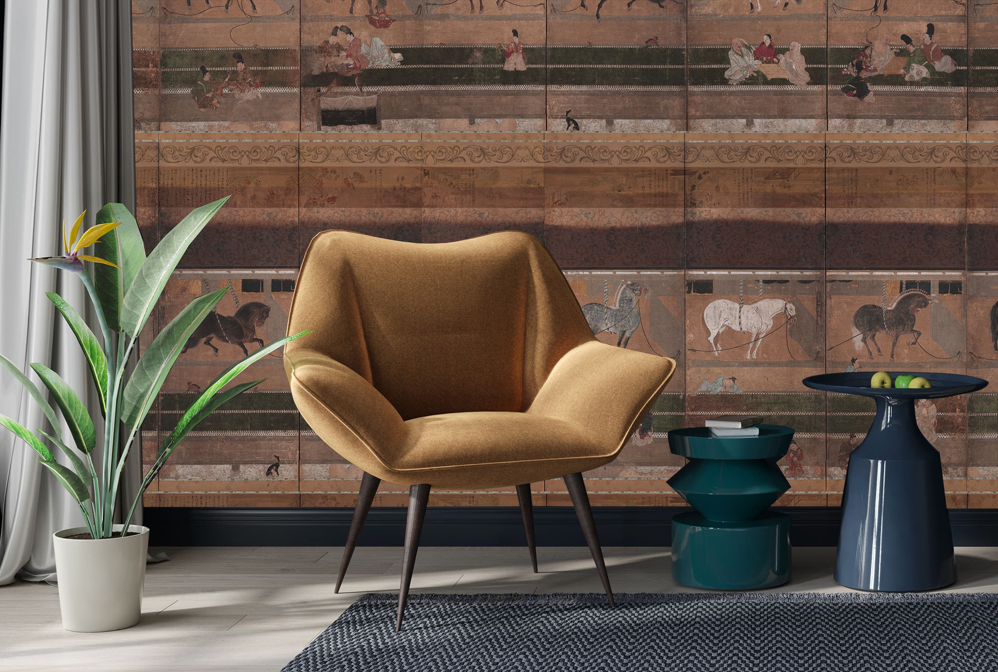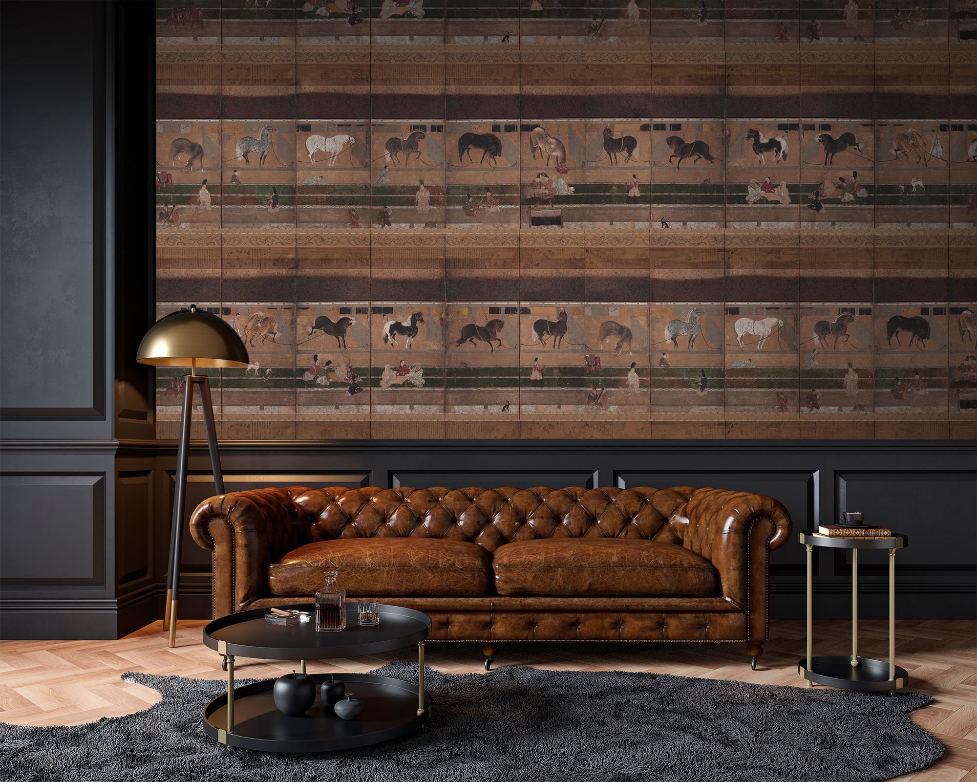 Take a journey to the past with this vintage horse wallpaper that will transport you back in time. This Chinese traditional wall art showcases the elegance and beauty of horses. The vintage design features a horse stud and trainers, capturing the essence of horseback riding and the rich history surrounding it. Made from removable vinyl, this peel and stick wallpaper is self-adhesive and easy to apply to any wall. Whether you're a horse lover or simply appreciate vintage wall art, this piece would make a stunning addition to your home decor. Embrace the charm of the past with this exquisite horse wallpaper.