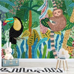 Bring jungle adventure into your nursery with this Botanical Lion King wallpaper. Baby lions, giraffes, zebras, and foxes roam a lush botanical forest in playful, vibrant scenes. Perfect for nurseries, playrooms, or anyone who loves whimsical animal and safari-inspired wall art. Transform walls into a fun, colorful, and imaginative jungle haven for your little one.
