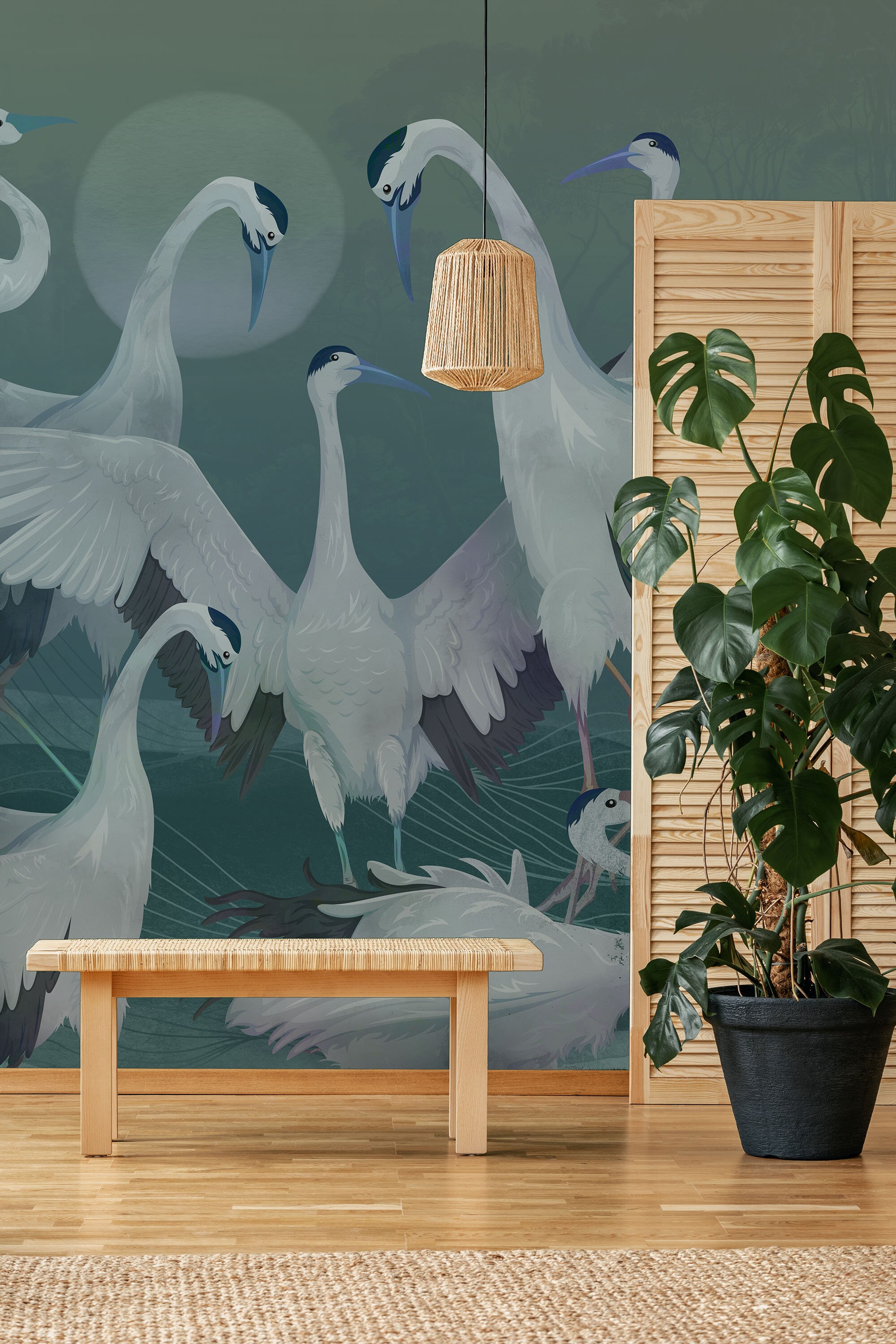Introducing our stunning Blue Heron Crane Wallpaper, a captivating piece of Asian-inspired wall art that will effortlessly transform any space into a serene sanctuary. With its contemporary design and elegant portrayal of graceful crane birds bathing in a tranquil lake, this vintage-inspired removable wallpaper is sure to be the focal point of your home decor. Made from high-quality vinyl, our peel and stick wallpaper is not only easy to install but also ensures long-lasting durability. Bring the beauty of nature indoors with this exquisite crane wallpaper, perfect for adding a touch of elegance to your walls. Upgrade your space with this one-of-a-kind piece of wall decor today!