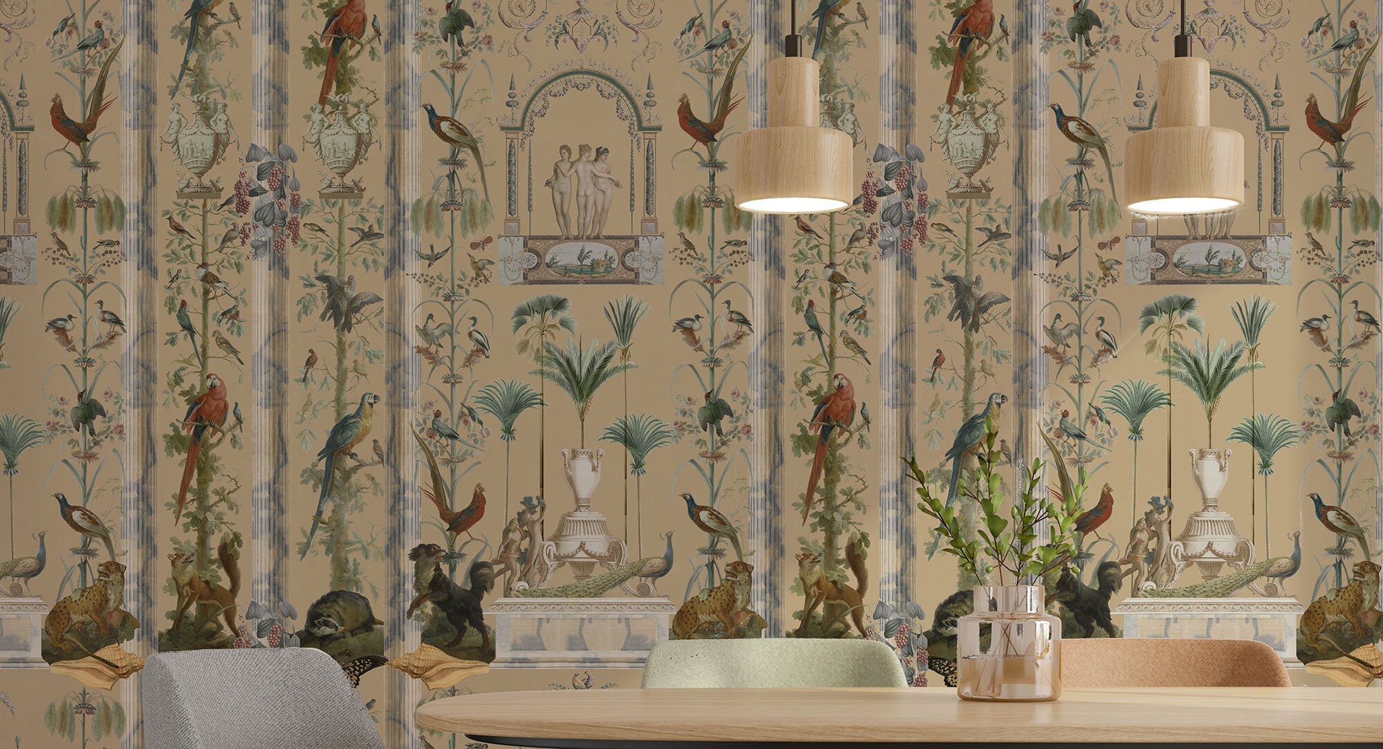Art Nouveau Animal Wallpaper: Elegant Rustic Peel and Stick Vinyl