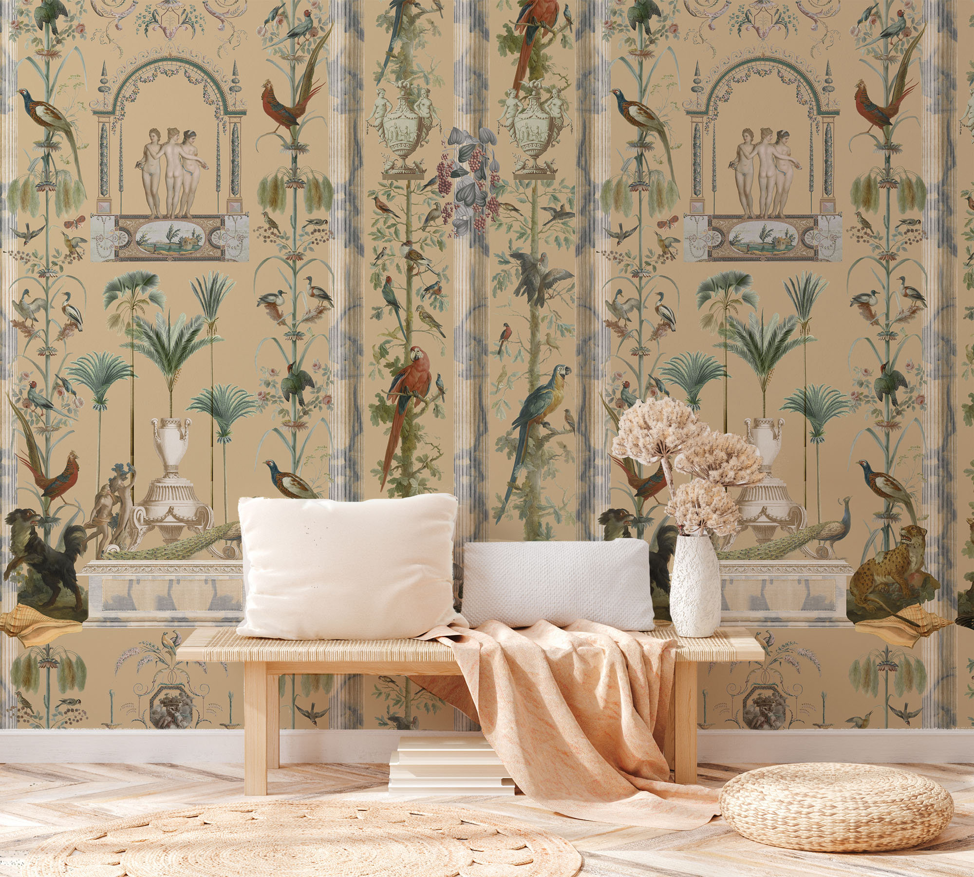 Introducing our breathtaking work of art wallpaper, specially crafted for the art enthusiasts in you. Inspired by the magnificent marble columns of Rome, vintage-style animals, rustic patterns, and art nouveau naked women, this design is a feast for the eyes. Each detail has been carefully curated to create a wallpaper that exudes elegance and sophistication. Not only do we prioritize design excellence, but we also ensure top-notch quality materials are used in our papers. Whether you choose our classic vinyl paper or explore our adhesive paper options for a seamless application, rest assured that our wallpaper is made to last and withstand the test of time. Elevate your space with this masterpiece, and let the beauty of art adorn your walls. Perfect for bedrooms, living rooms, or even as a statement piece in your office or studio, this wallpaper will transform any space into a haven of creativity and inspiration. Dare to bring art into your home and embrace the ambiance it creates. This wallpaper is not just a simple decor choice; it's a reflection of your artistic personality and a testament to your refined taste. Treat yourself and your walls to a touch of luxury with our art-inspired wallpaper, and experience the joy of living surrounded by beauty.