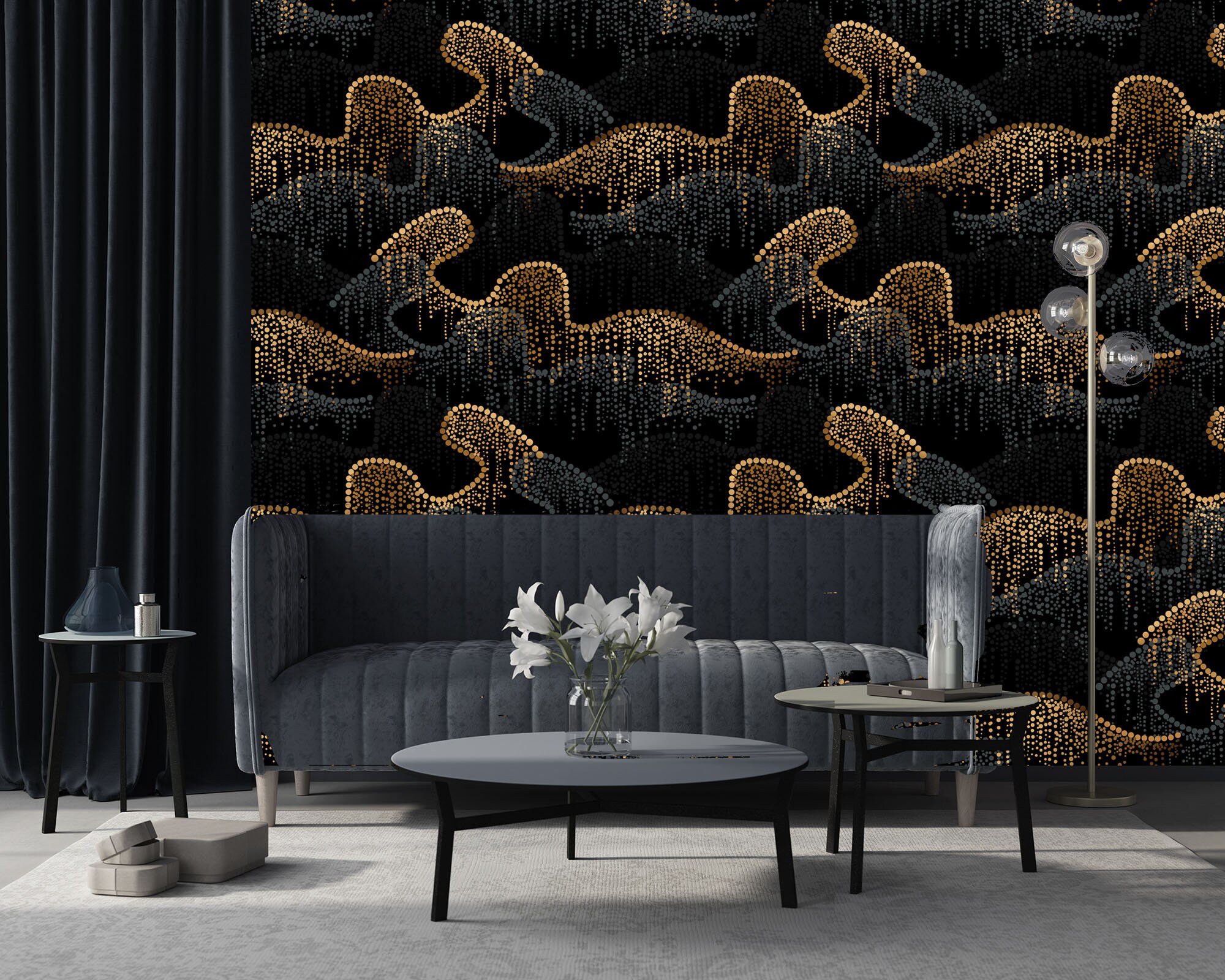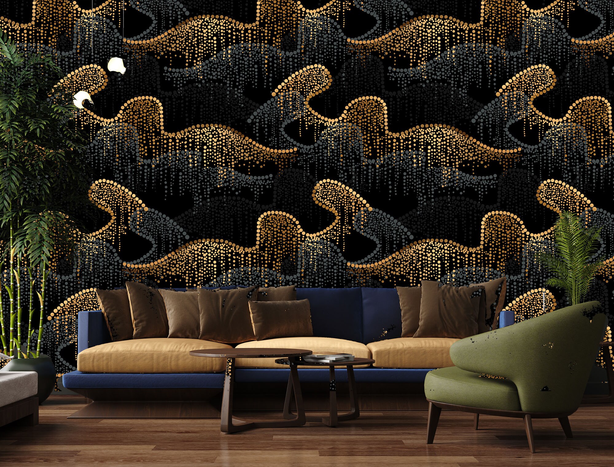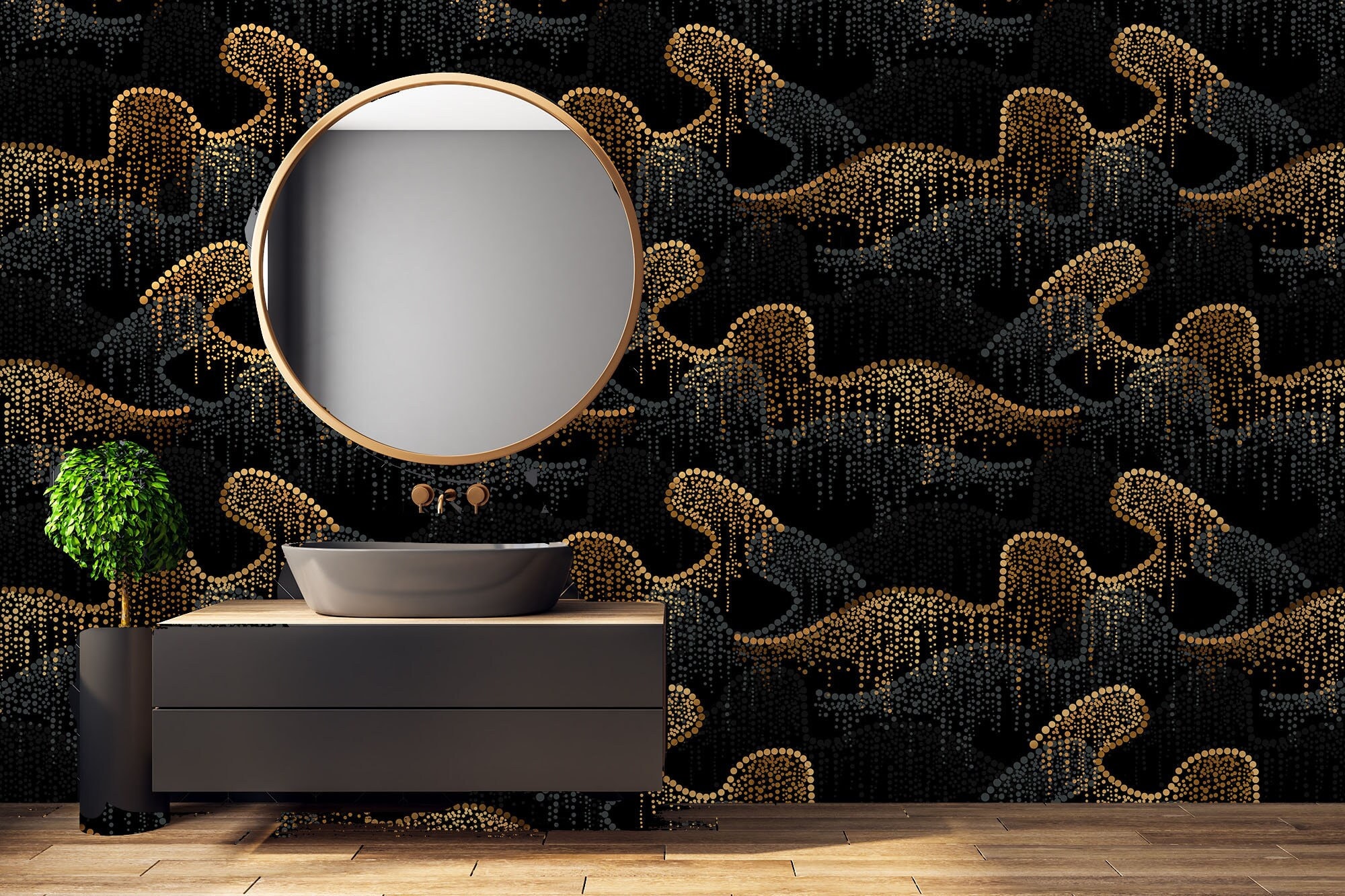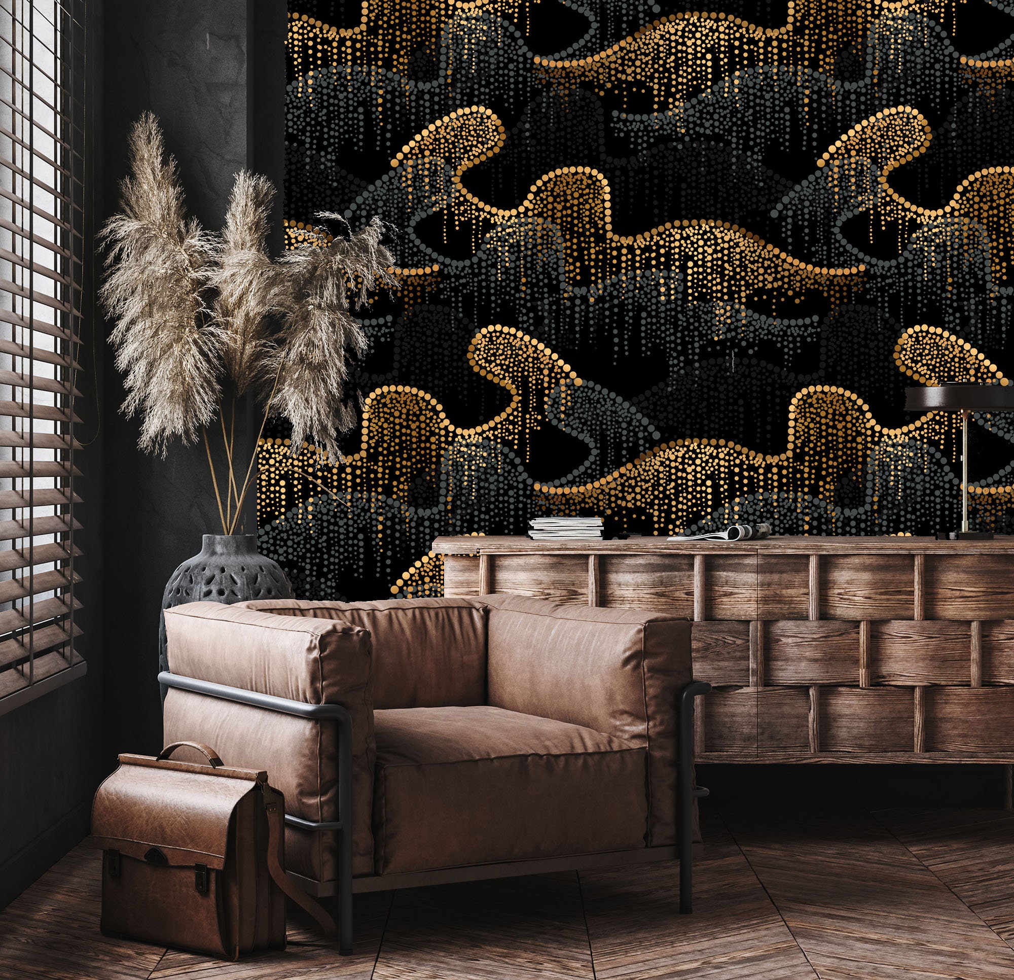 Black and Gold Dot Wallpaper: Art Deco Peel and Stick Wall Mural