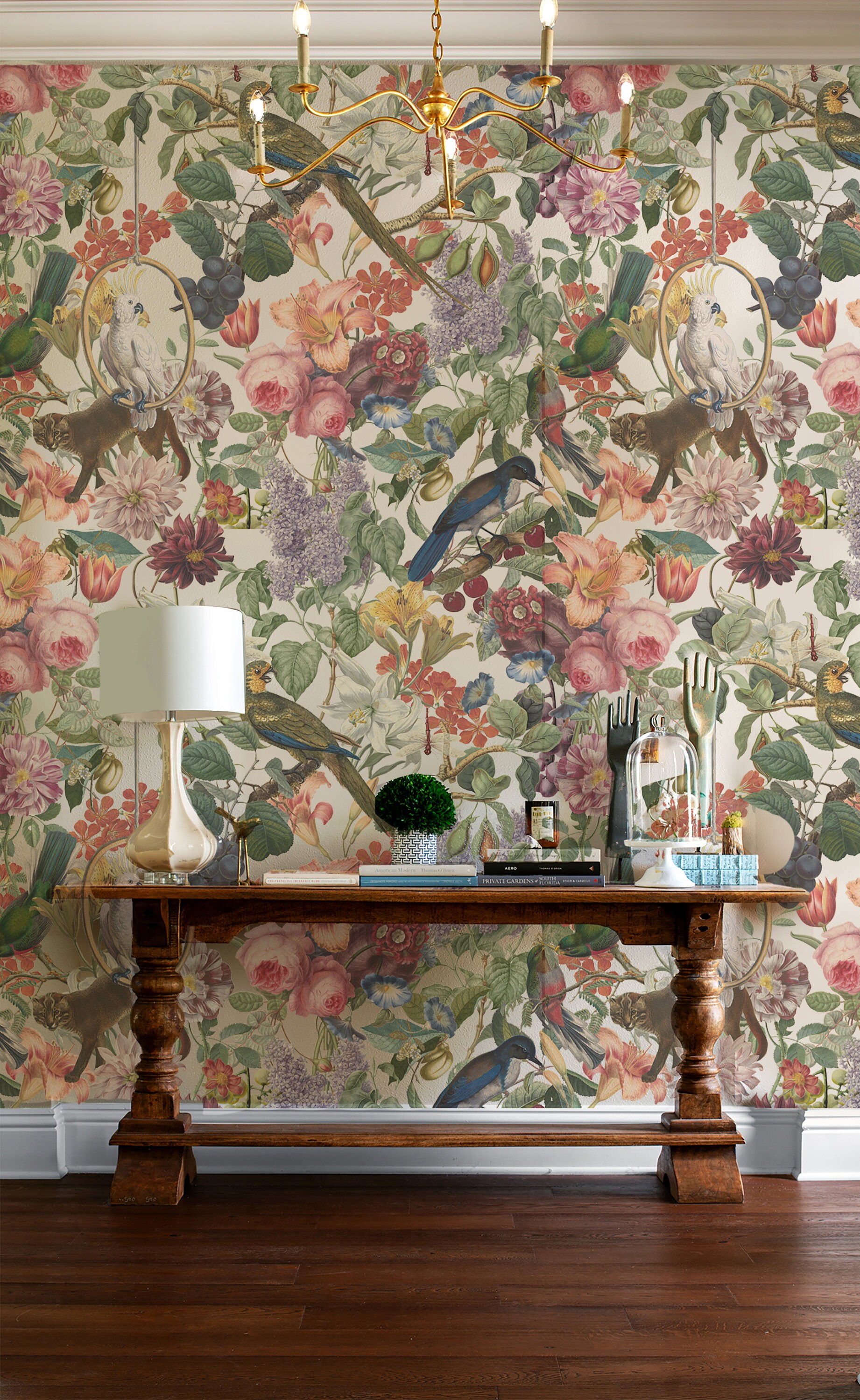 Floral Oasis Wallpaper Mural: Birds and Flowers, Peel and Stick