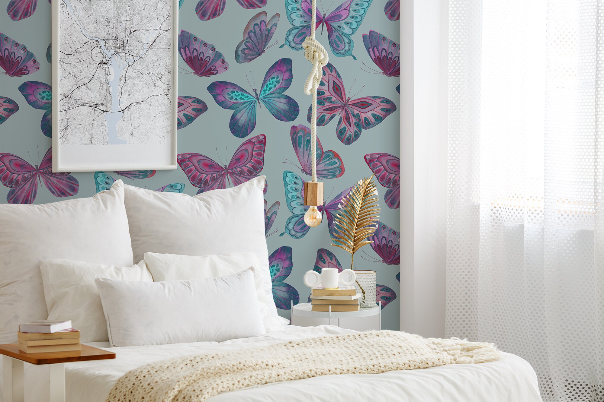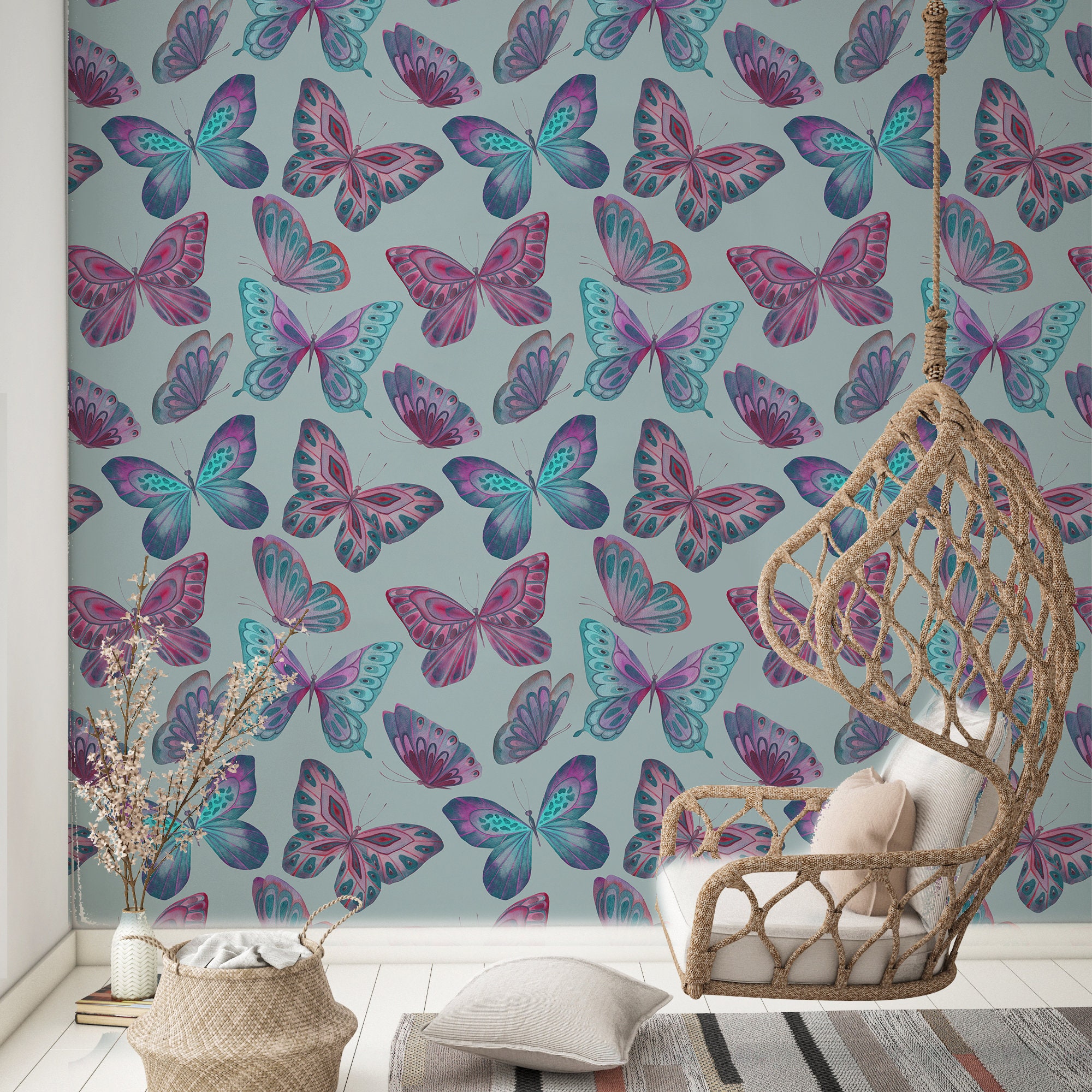 Butterfly wallpaper,colorful butterfly,blue background,vintage butterfly,vinly,peel and stick butterfly,fresh wallpaper,self adhesive,bold
