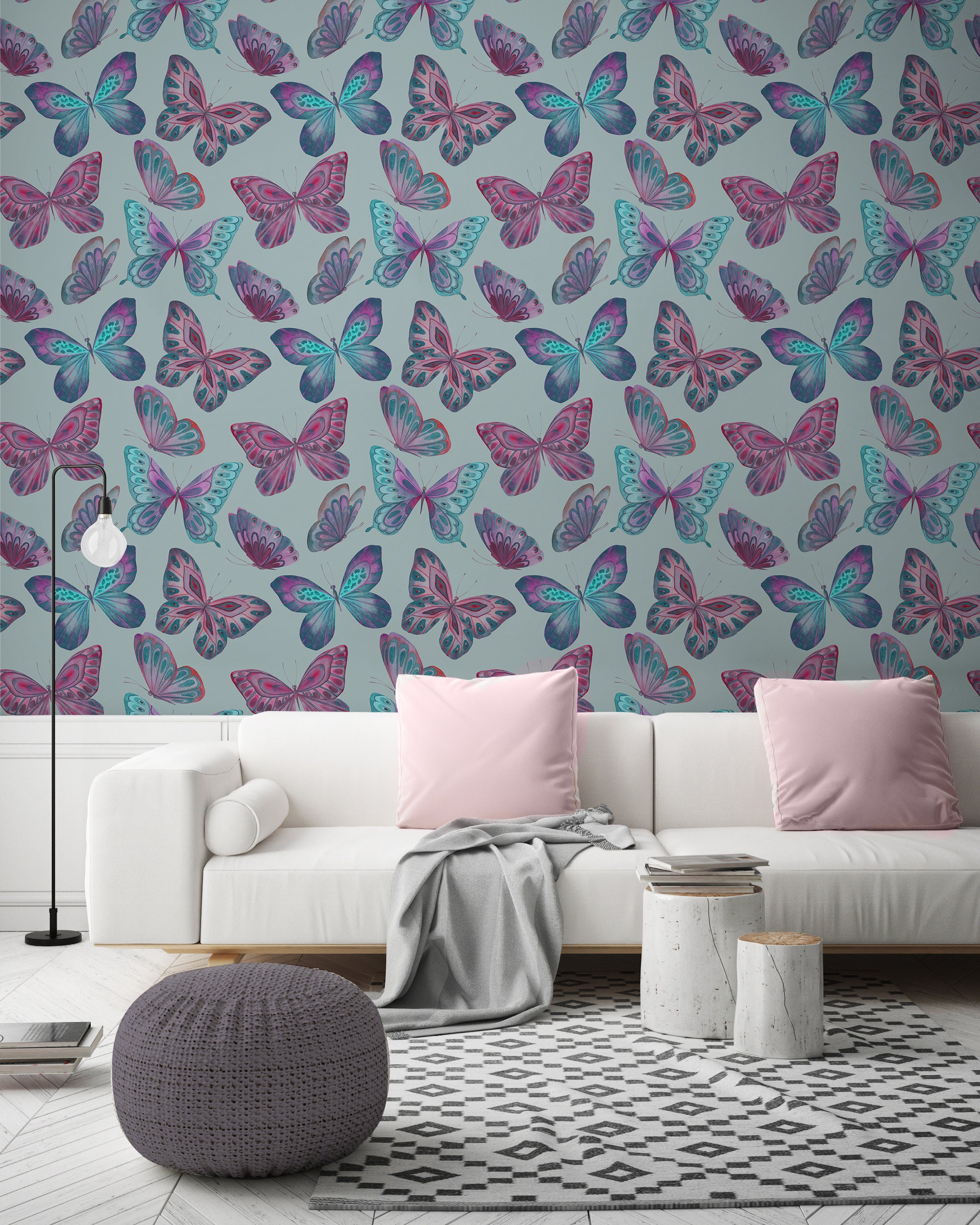 Transform your living space into a paradise with our enchanting butterfly wallpaper. Bursting with vibrant colors, the butterflies flutter gracefully against a stunning pink background, creating a captivating display that will transport you to a vintage wonderland. Let these colorful butterflies dance across your walls, infusing any room with a touch of charm and nostalgia. Add a touch of magic and allure to your home decor with our exquisite butterfly wallpaper.