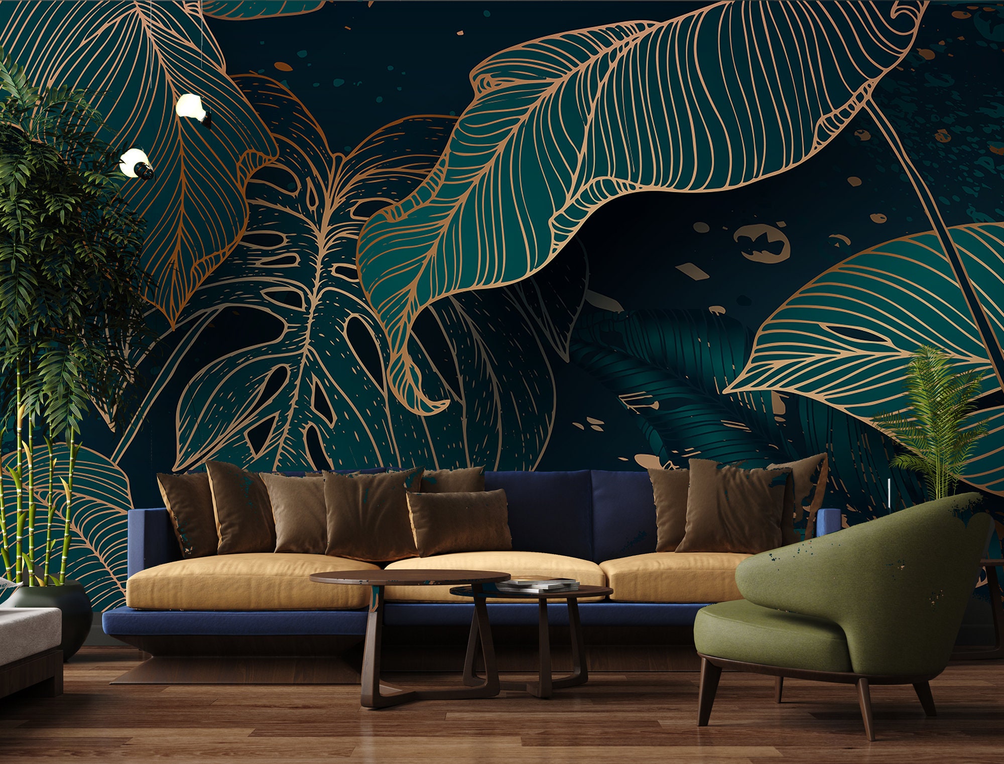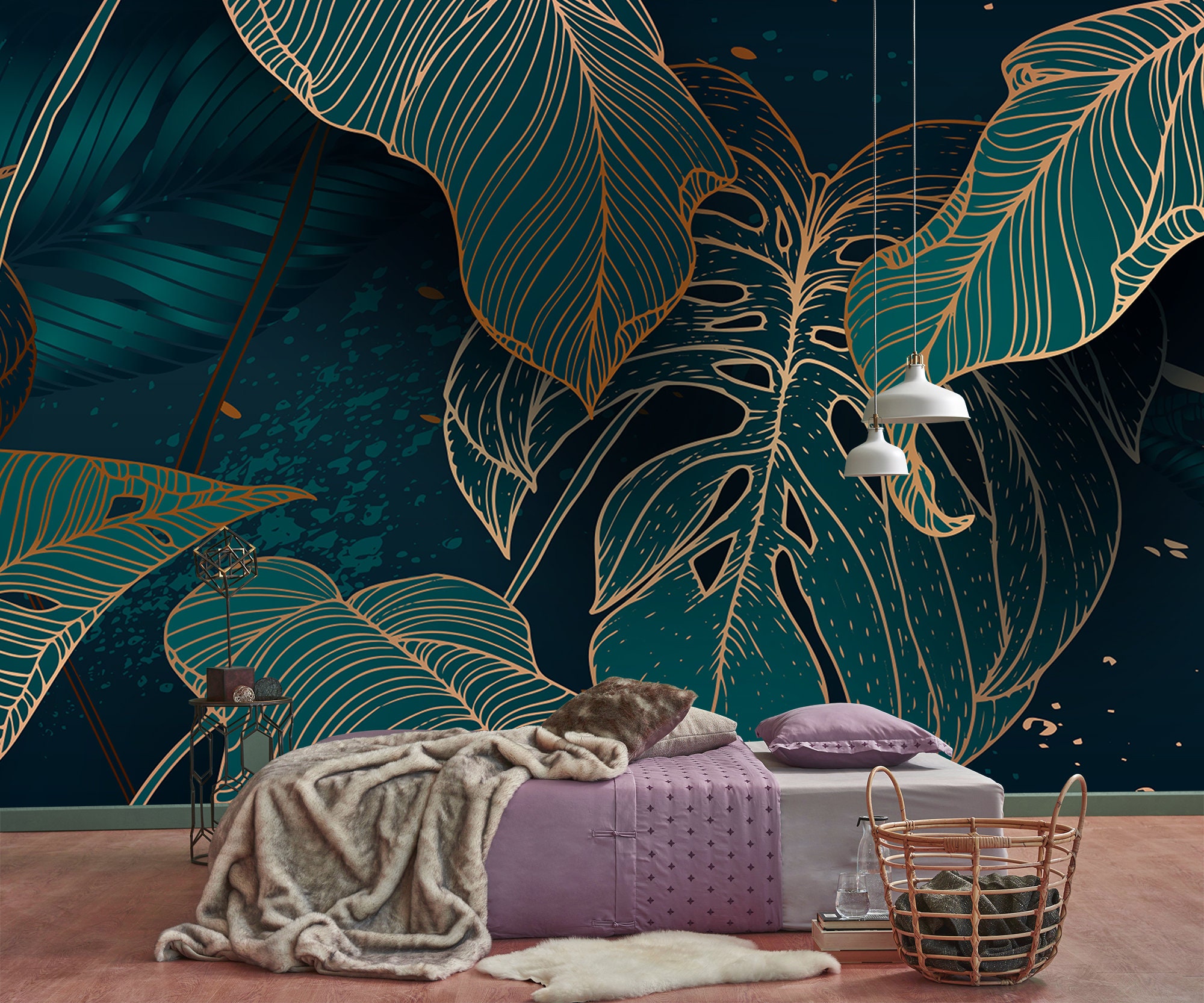 Art Deco Monstera Leaf Wallpaper: Peel and Stick Vinyl Wall Mural