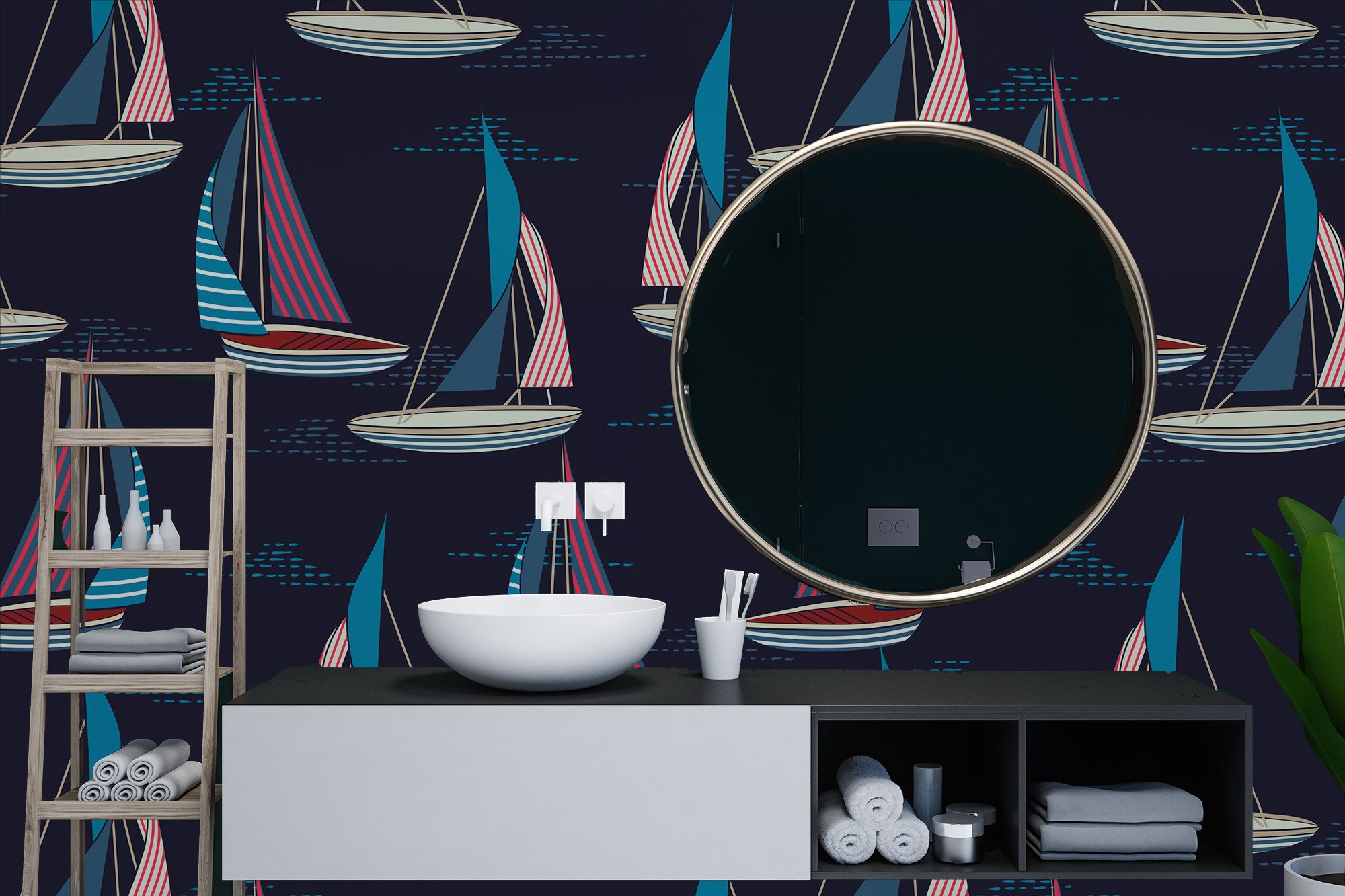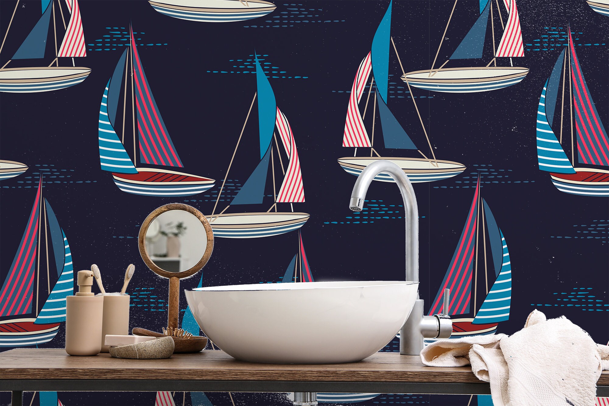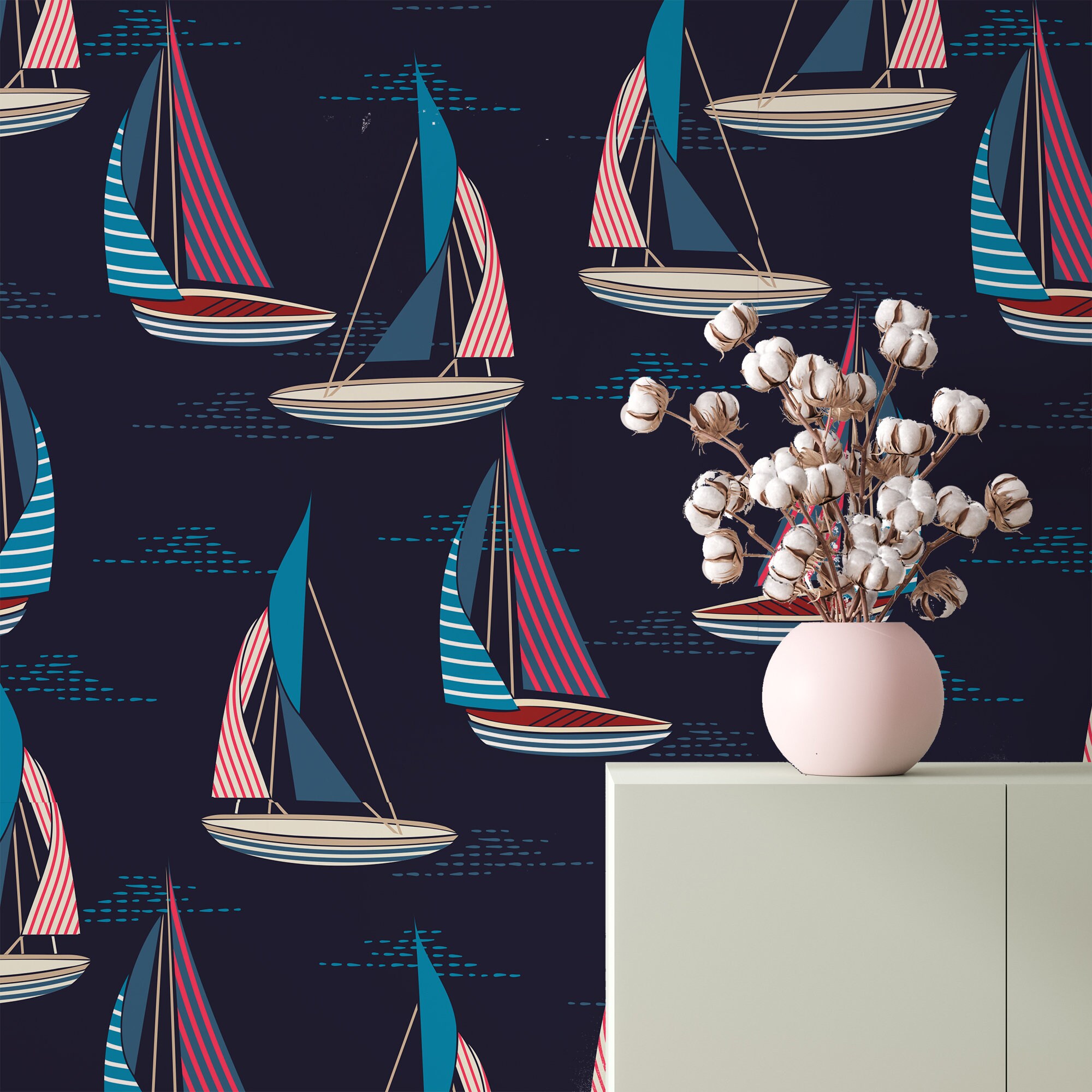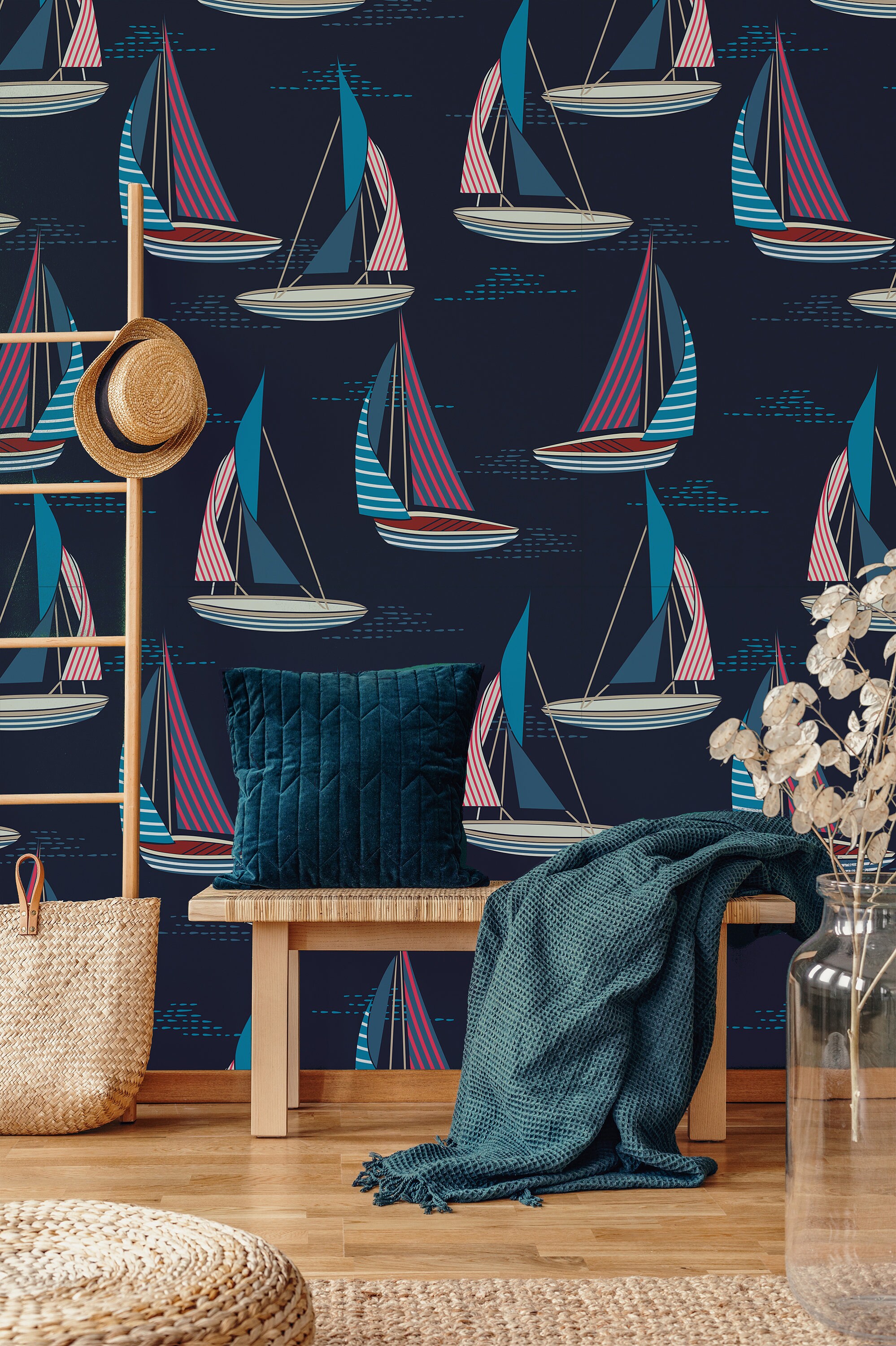 Nautical Dreams: Peel and Stick Sailboat Wallpaper for Easy Marine Decor - Vinyl