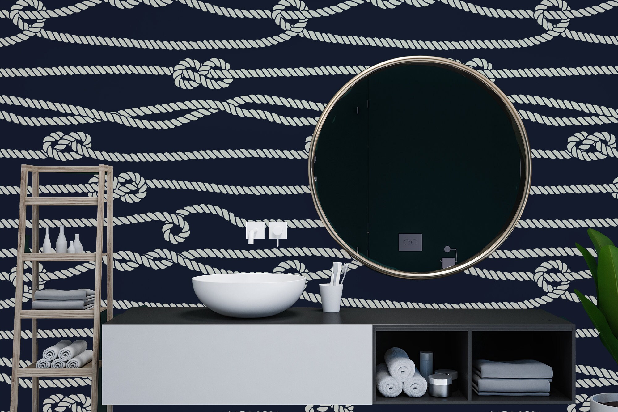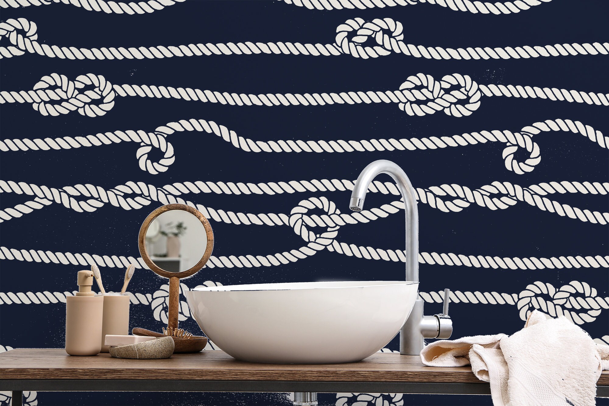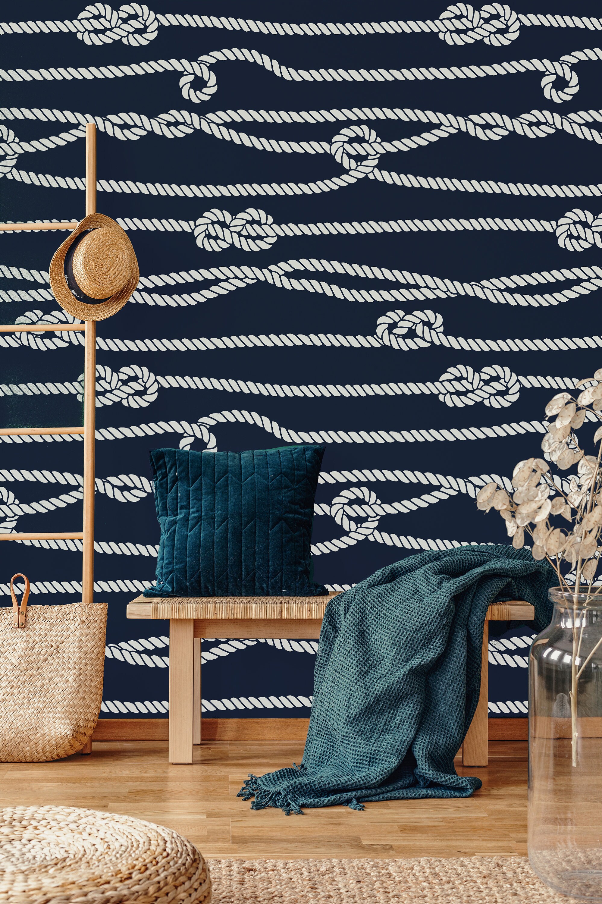 Navy Blue Rope Wallpaper: Peel and Stick Vinyl, Maritime Design