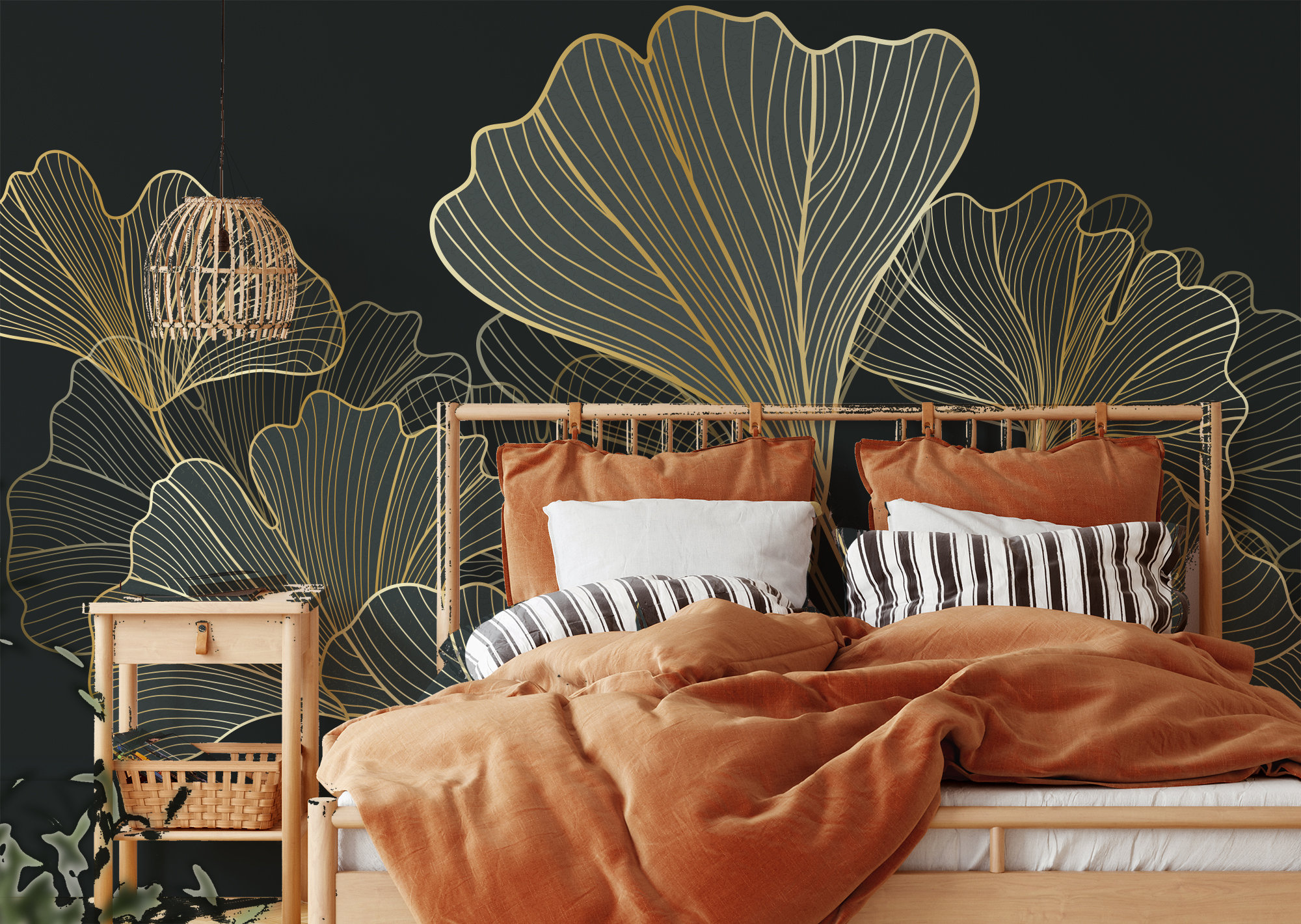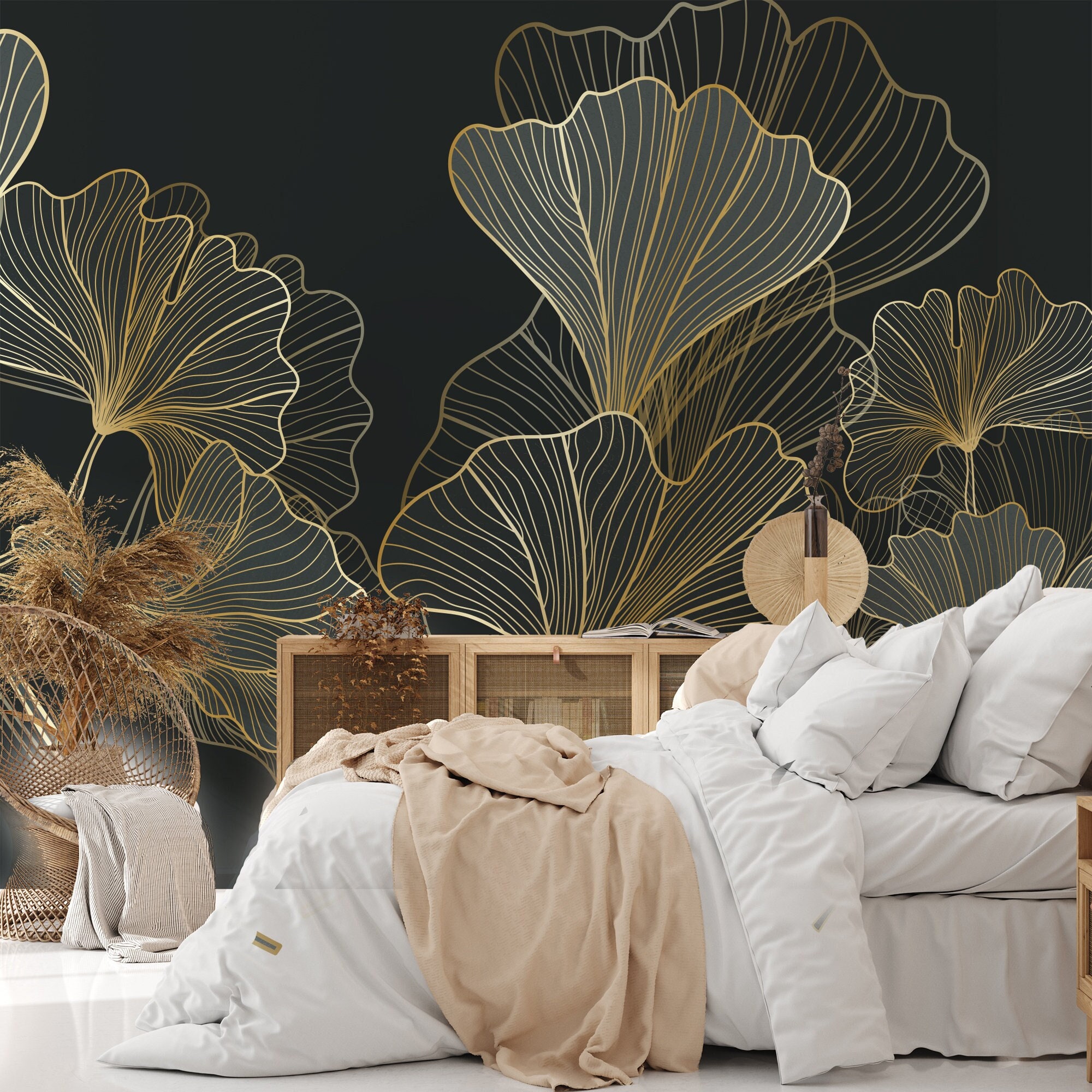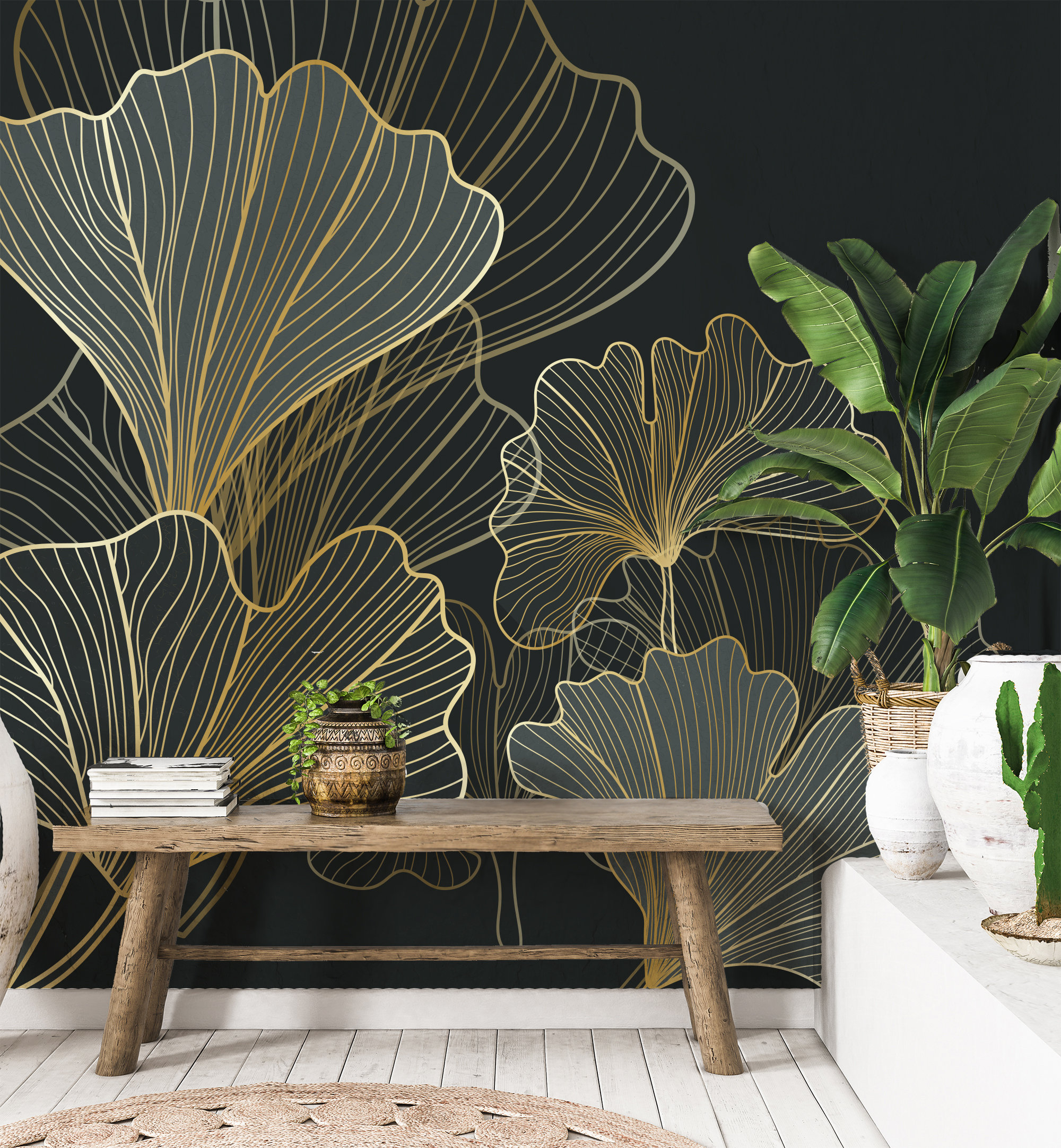 Gold Ginkgo Leaf Wall Decal: Elegant Art Deco Peel and Stick Wallpaper