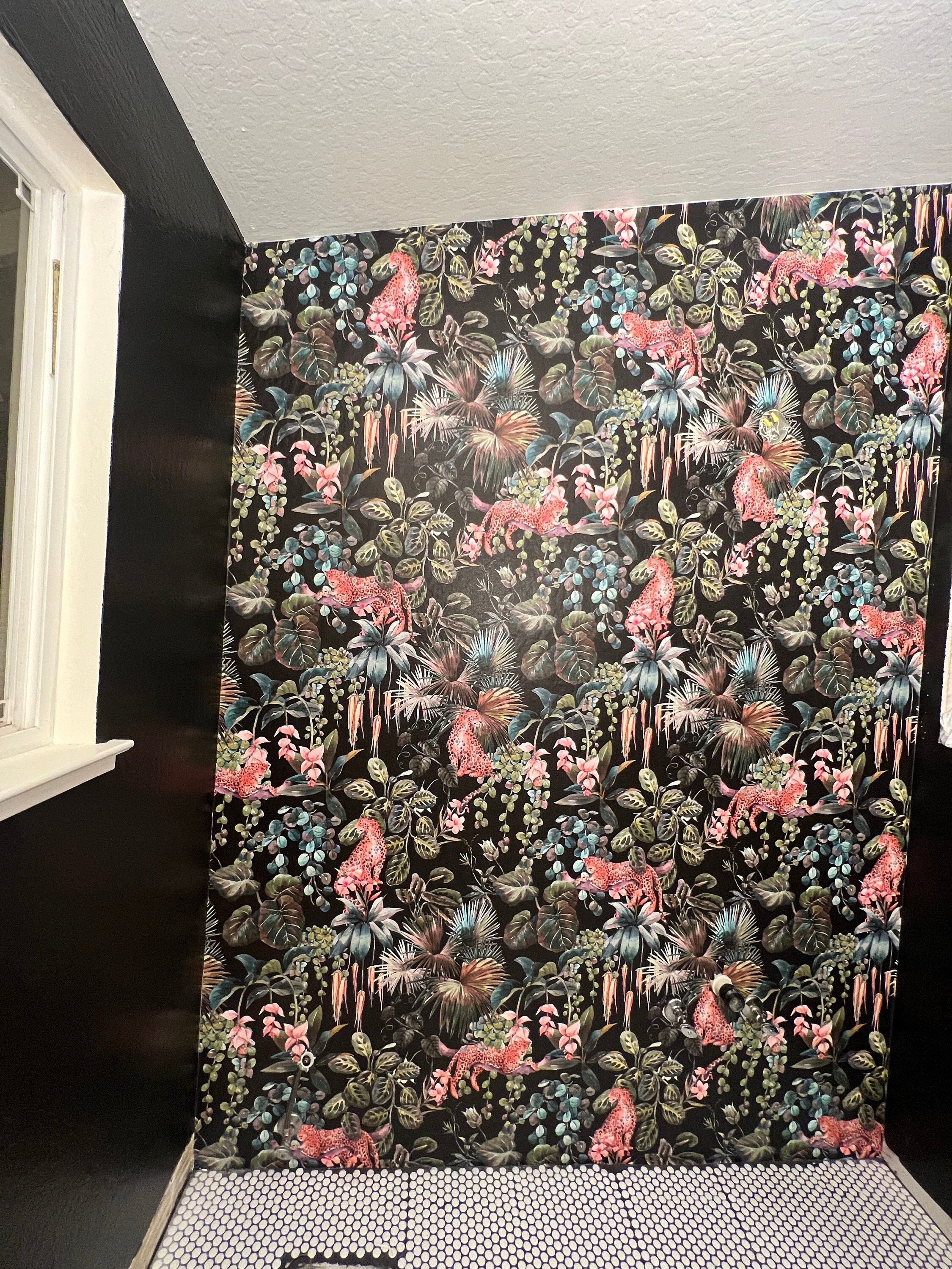 This wallpaper is INCREDIBLE!!! My husband and I were first time wallpaper installers for this project. Despite our lack of knowledge, the wallpaper placed so beautifully and was super forgiving to the mistakes we kept making lining stuff up. So glad we ordered it. It gives our bathroom the best vibe. Customer service was amazing, and shipping was so fast!