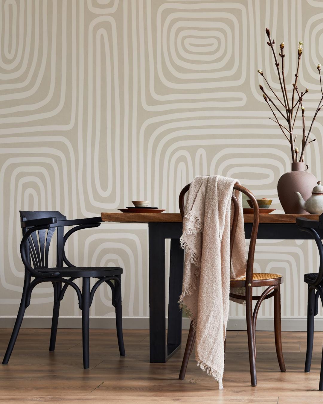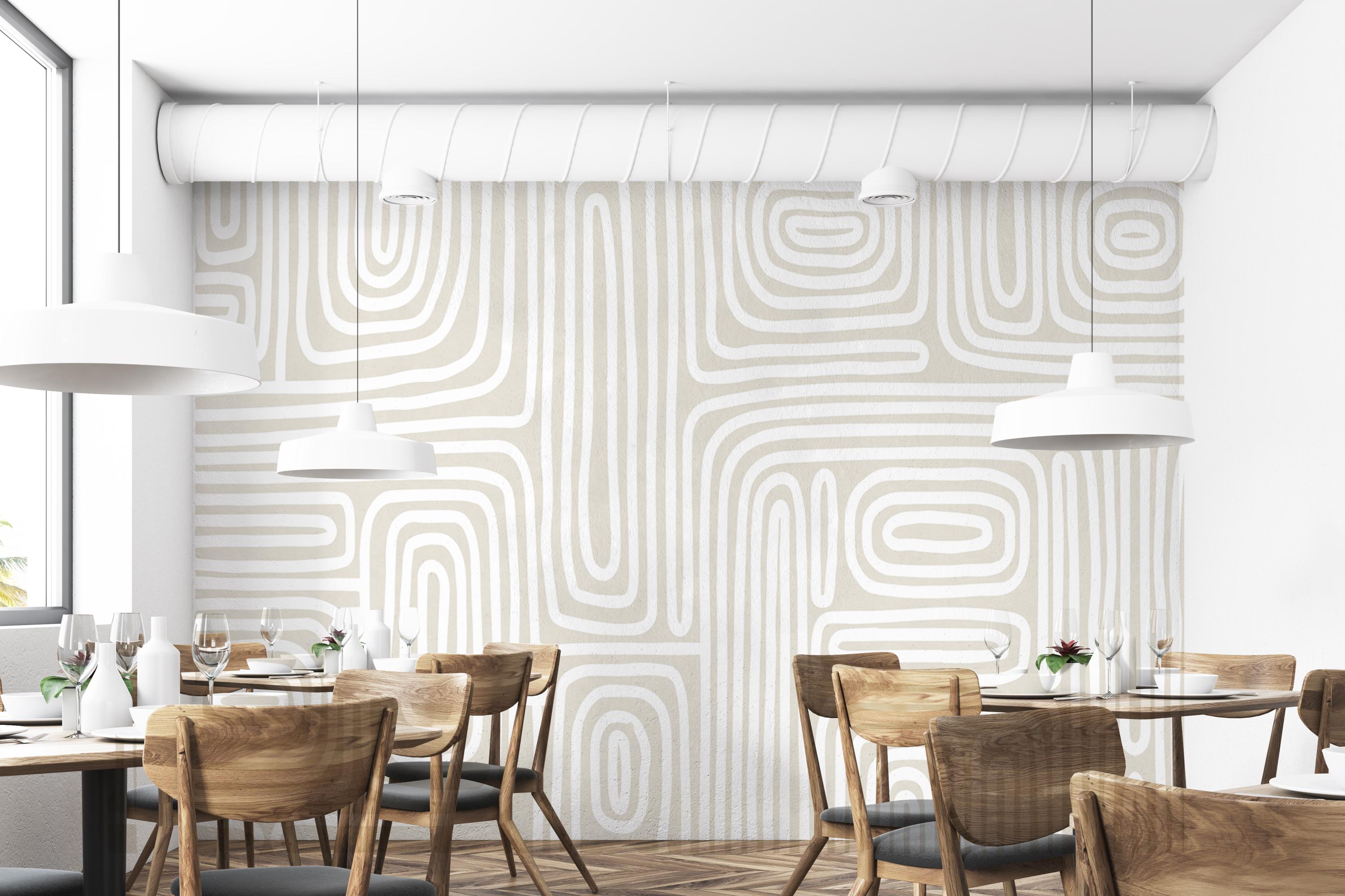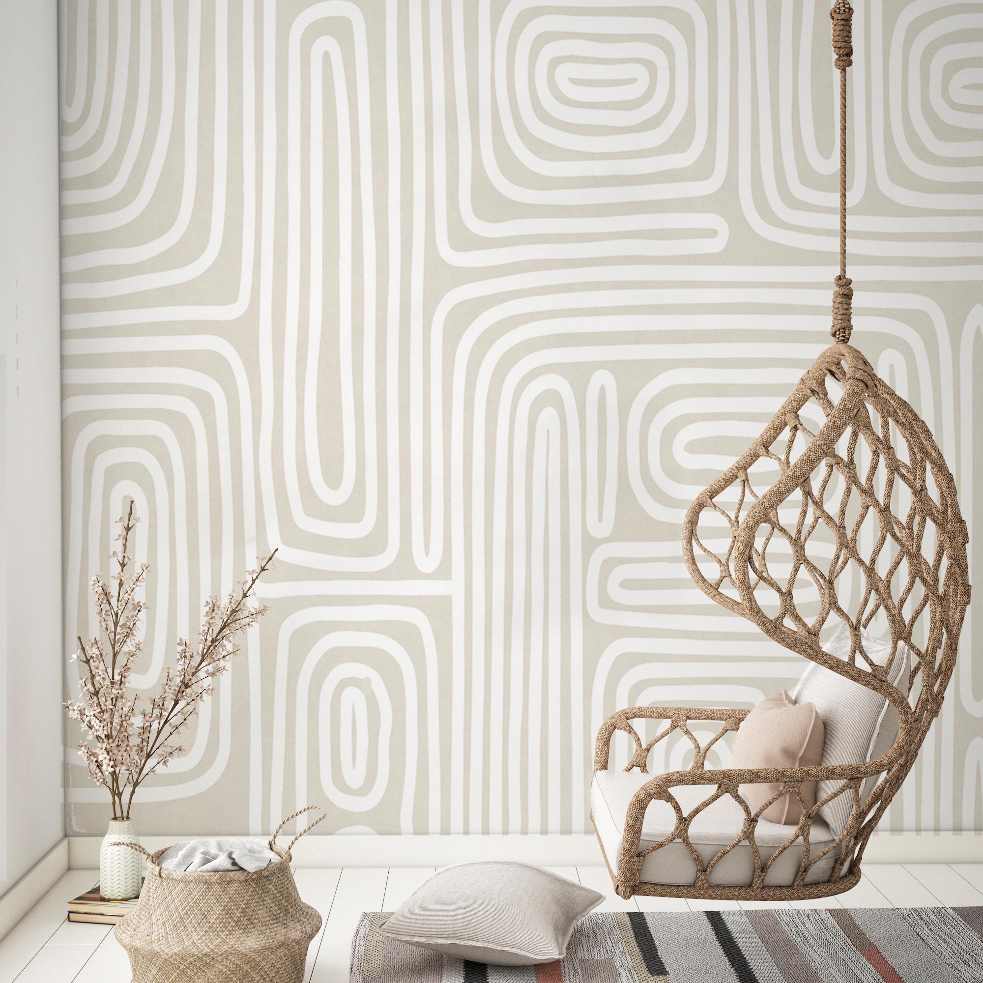 Mid Century Boho Wallpaper – Nude Tones with Modern Boho Line Art | Vinyl & Peel and Stick Wallpaper Alternative for Stylish Spaces