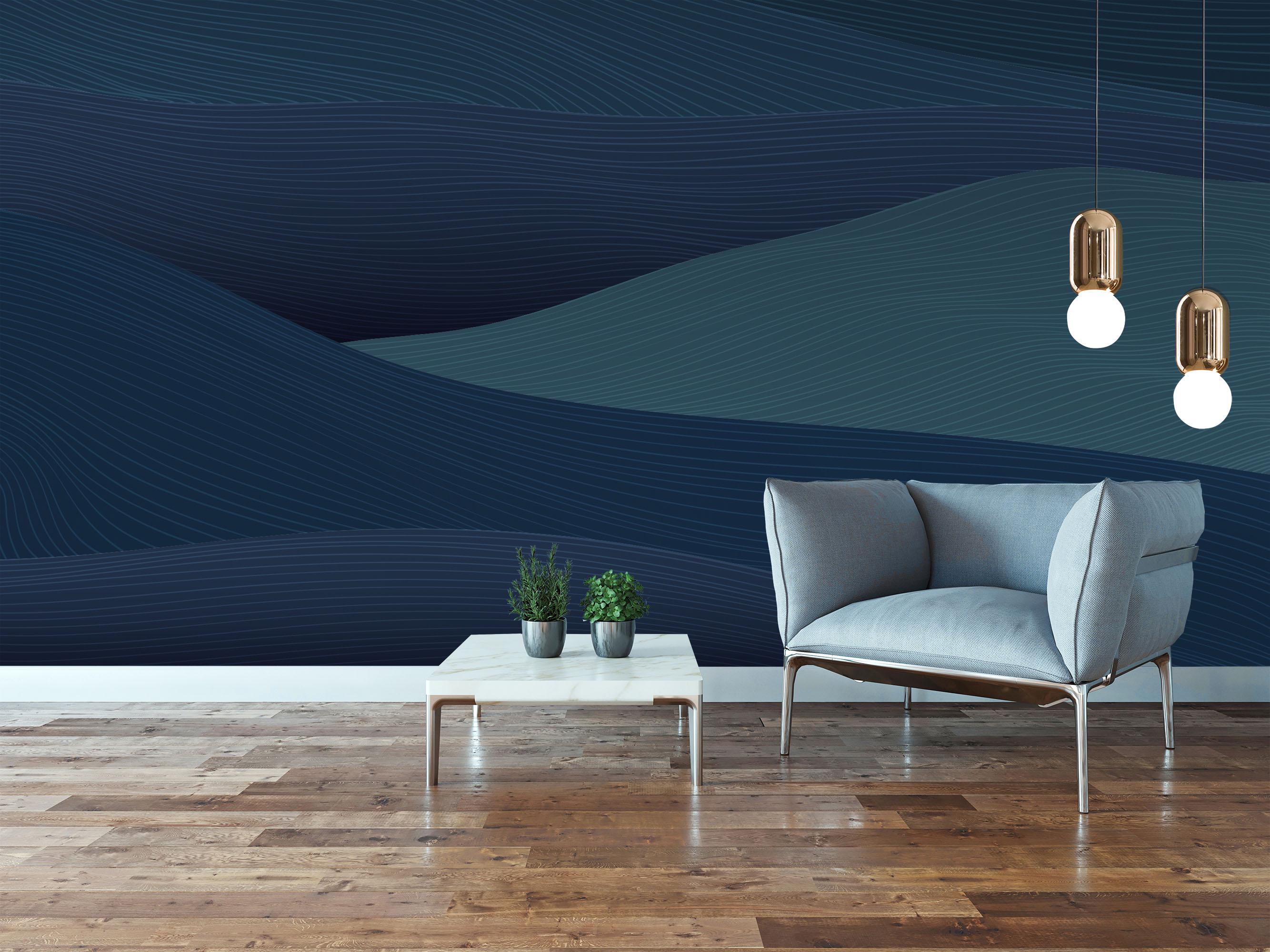 Introducing our exclusively crafted design for your home decor! Our line art wallpaper showcases a mesmerizing dark color palette, creating a stunning, contemporary backdrop. With exquisite attention to detail, we've captured the and original state of a wavy sea, evoking a sense of tranquility and serenity. This unique combination of elements will certainly make your home shine, adding a touch of elegance and serene beauty to any room. Elevate your space with our captivating design and transform your home into a sanctuary of style and sophistication.