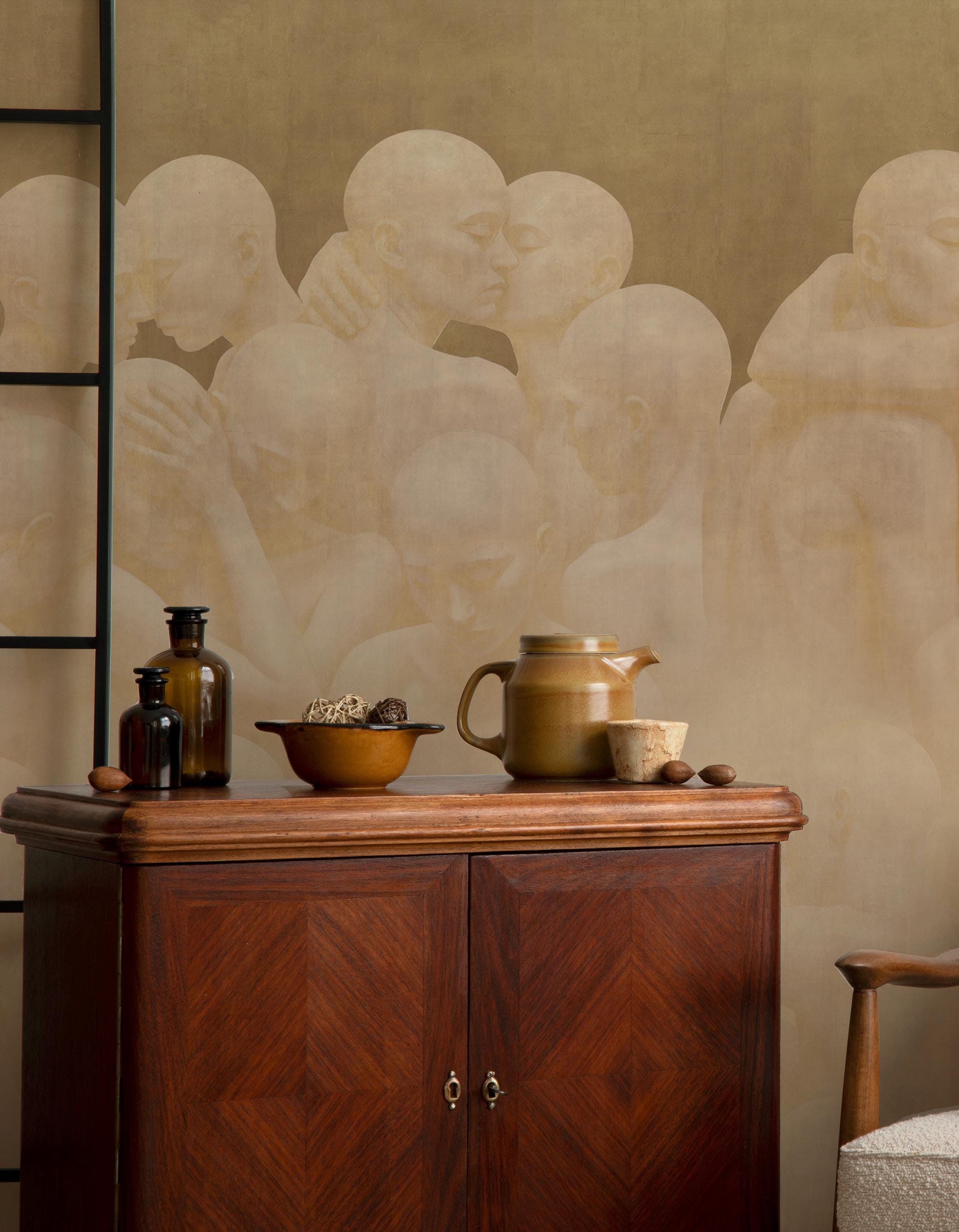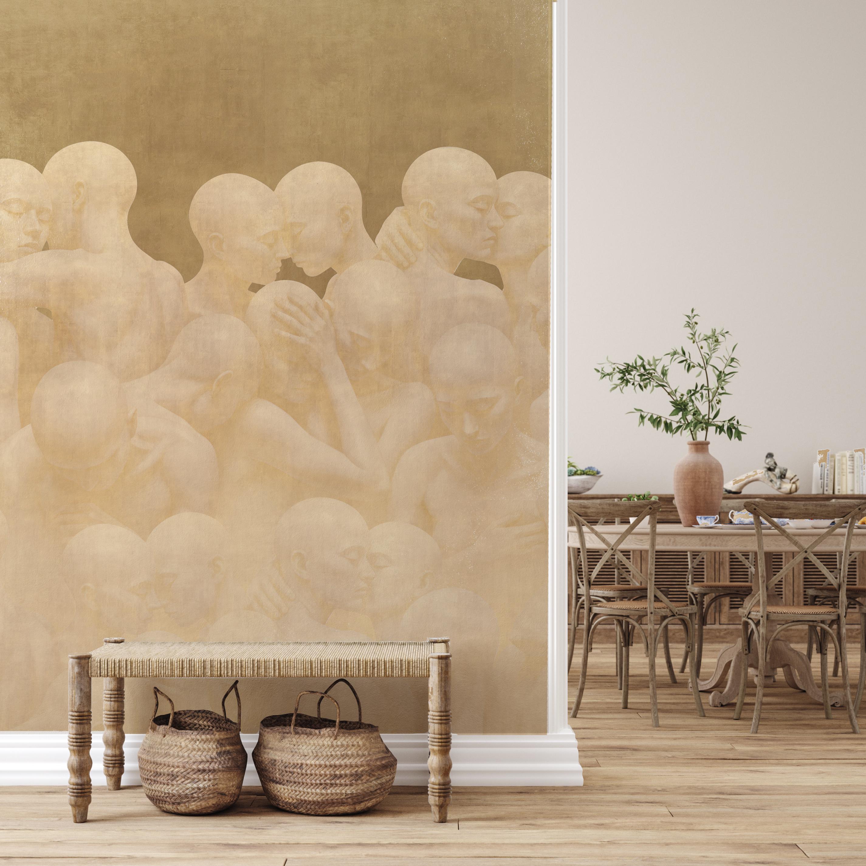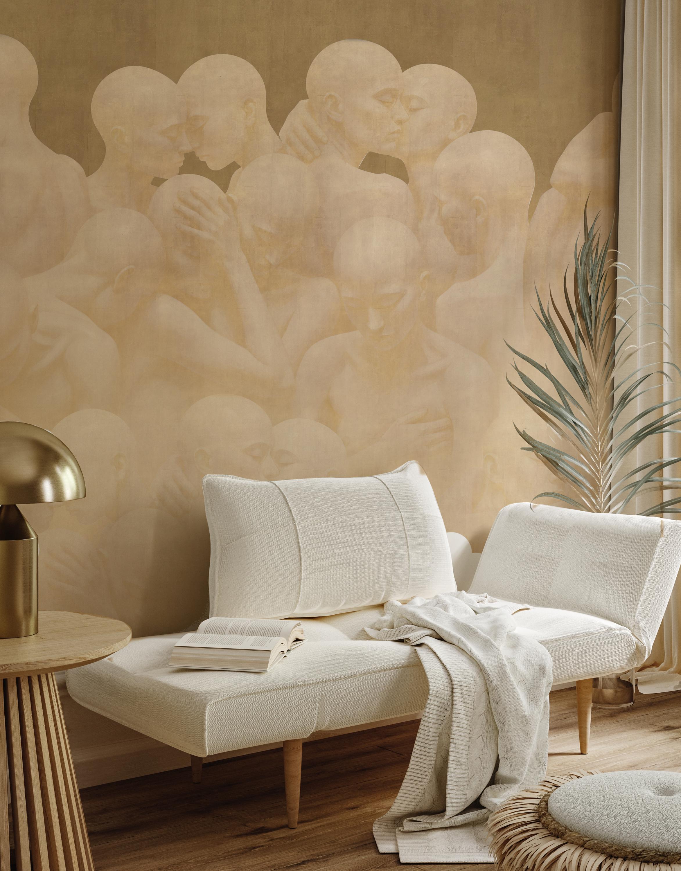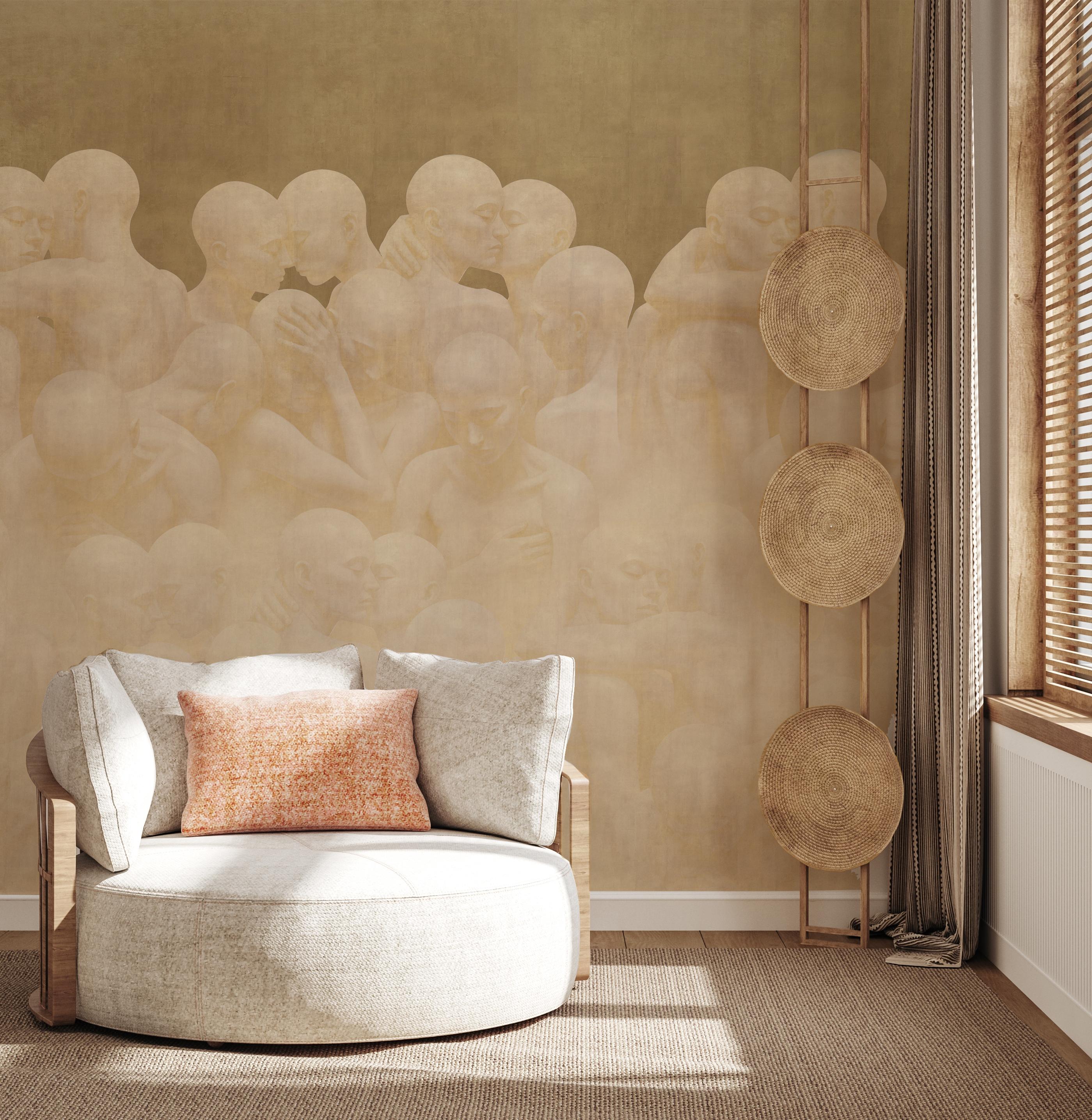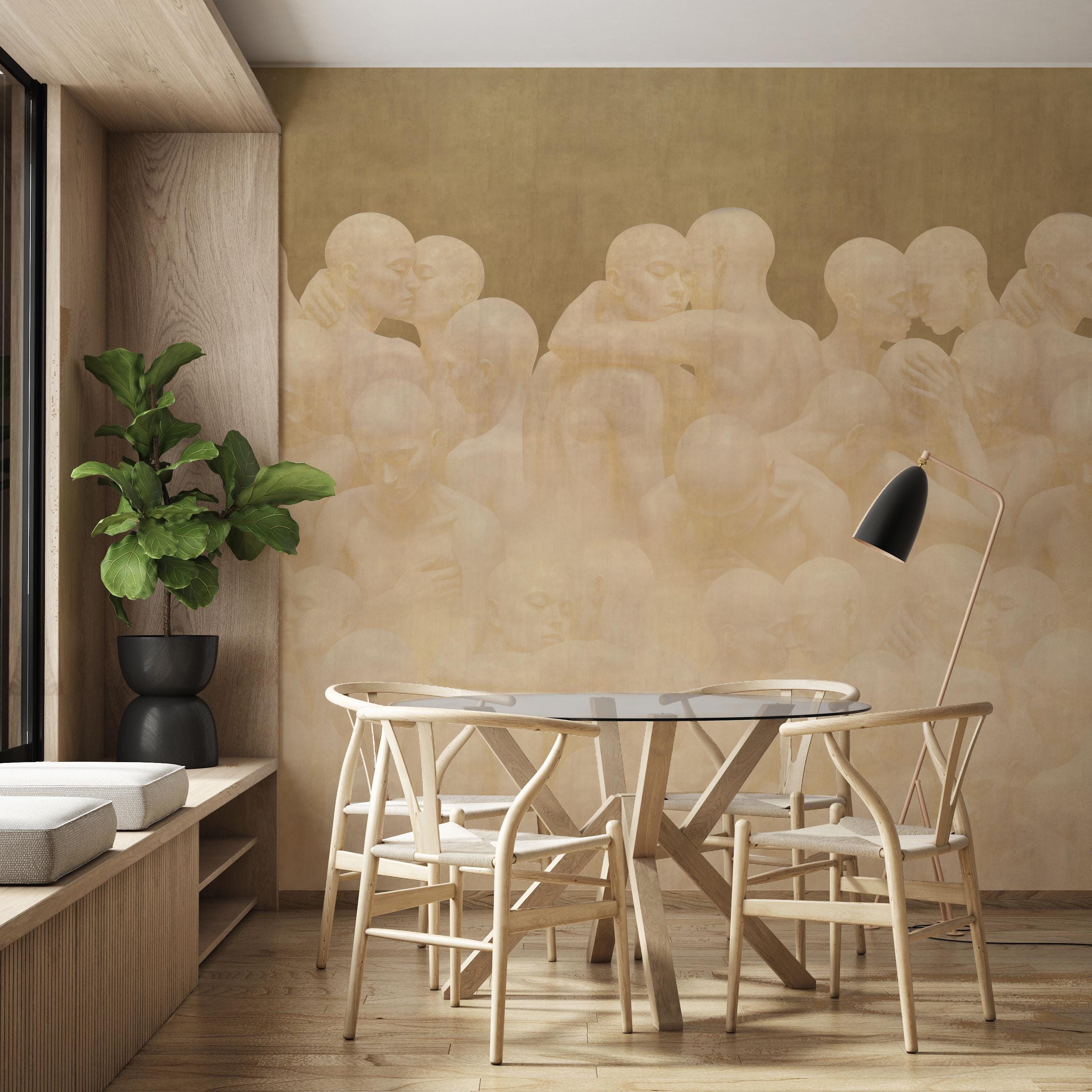 This design is more than just a wallpaper; it is contemporary art brought into your space. Intertwined human figures unite individual existence with collective togetherness. Abstract tones and minimalist lines create a spiritual atmosphere on the surface. In your home or office, it goes far beyond a wallpaper, evoking the effect of a gallery wall. Produced as a collectible contemporary art piece, this work is unique and designed to be displayed in a special setting.