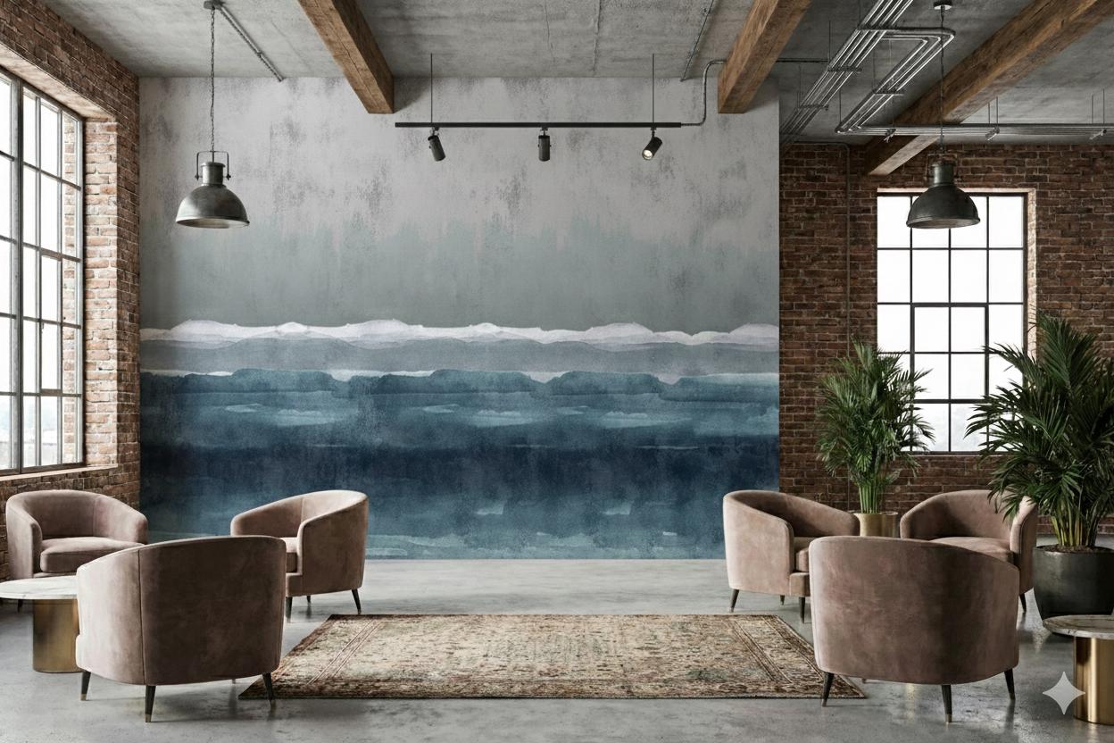 Step into a sanctuary where the soothing energy of watercolor waves meets the raw, industrial soul of a concrete horizon. You can almost hear the gentle ebb and flow of the tide as it moves through delicate blue and gray brushstrokes. Defined by subtle pastel effects and a modern textured look, this design is more than a pattern; it’s a dialogue between coastal tranquility and urban grace. Designed for visionary spaces, this mural brings a striking depth and a peaceful soul to your atmosphere. Experience a vivid, sharp look that transforms your space into a timeless masterpiece.