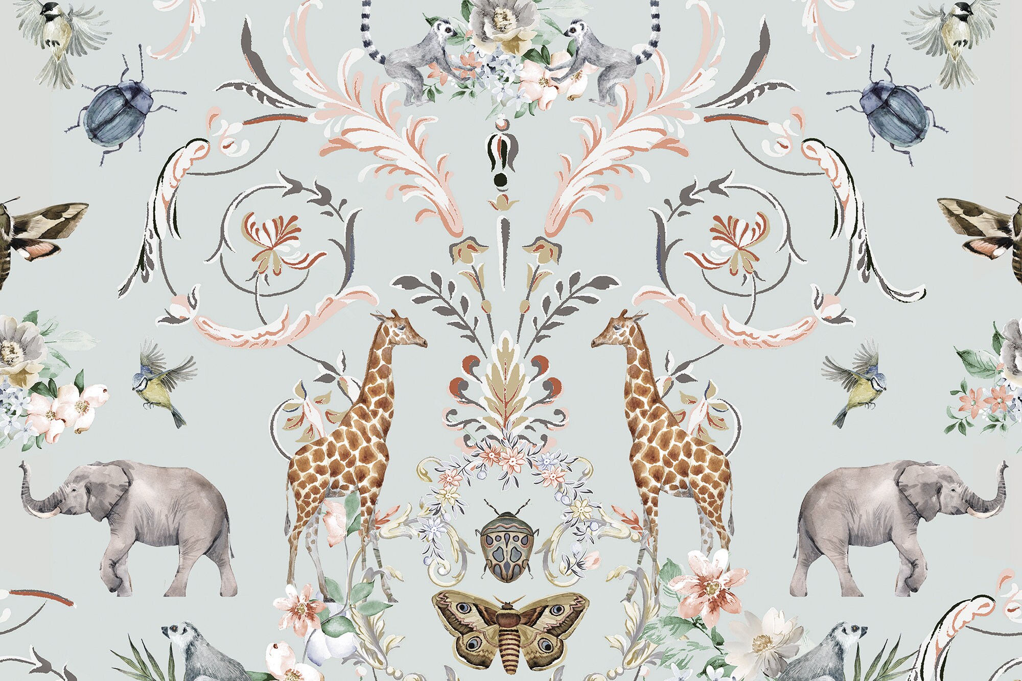 Jungle Animal Wallpaper: Elephant & Giraffe Removable Wall Art