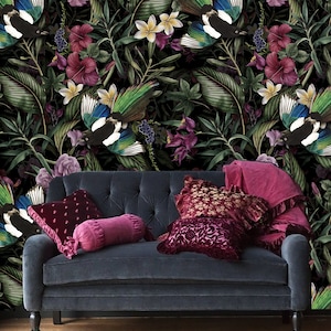 Bring the beauty of the jungle into your home with this Jungle Animal Wallpaper. Featuring majestic elephants, graceful giraffes, delicate flowers, and playful butterflies in hand-painted watercolor style, this peel-and-stick mural creates a serene and captivating ambiance. Perfect for nature lovers looking to add artistic charm and tranquility to any interior space.