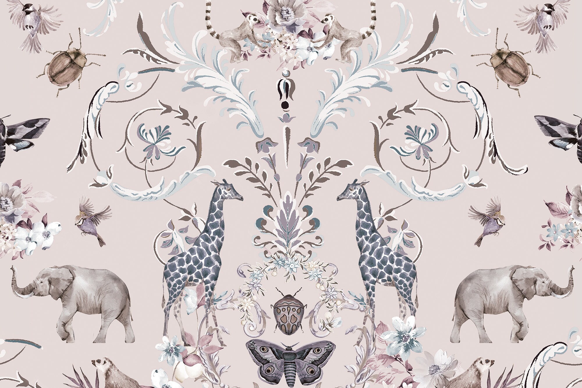 Transform any room into a serene oasis with this hand-painted watercolor mural featuring a beautiful nature-inspired landscape. Adorned with delicate flowers, majestic elephants, graceful giraffes, and enchanting butterflies, this stunning wall decor is a true masterpiece. Let the intricate details and soothing hues transport you to a tranquil place where you can feel the inspiration from nature. Elevate your space with this unique and original design that exudes elegance and charm. Embrace the beauty of the outdoors within your home and immerse yourself in this captivating mural that combines elements of nature and art seamlessly.
