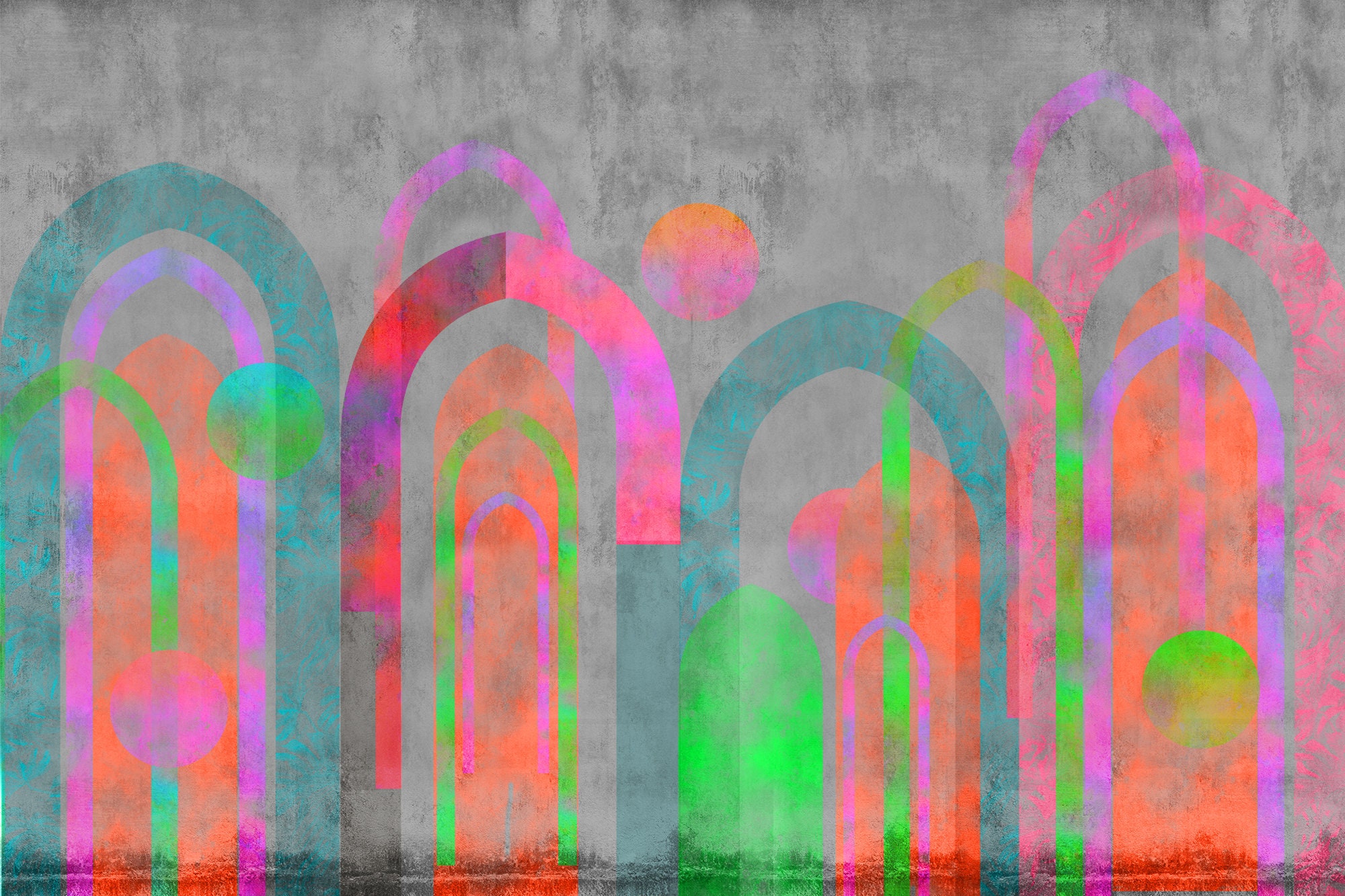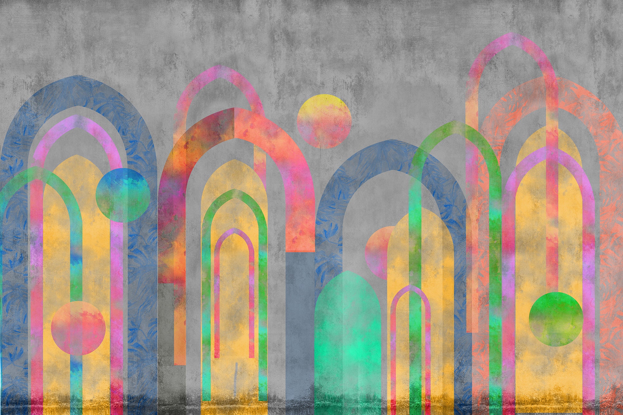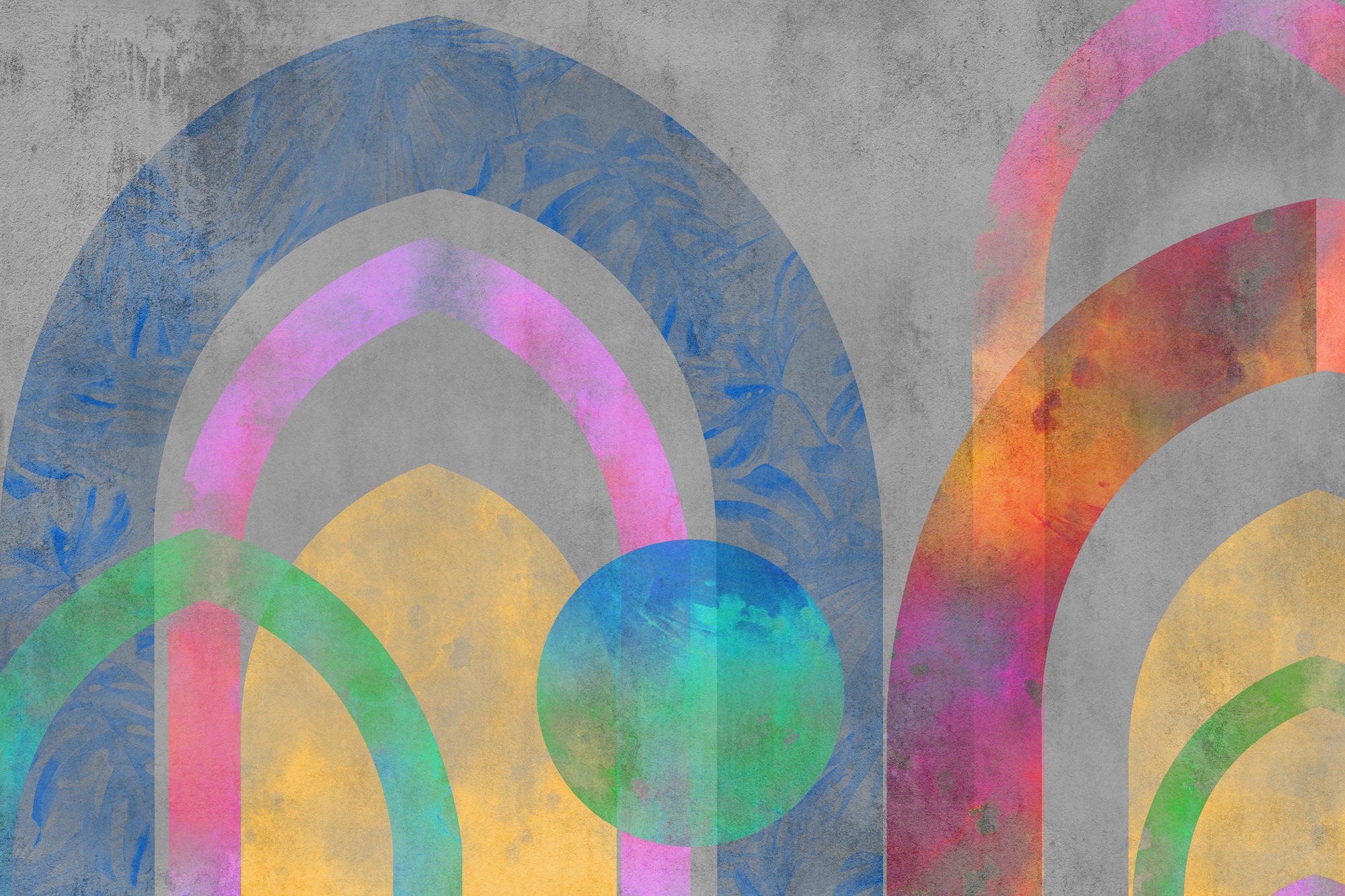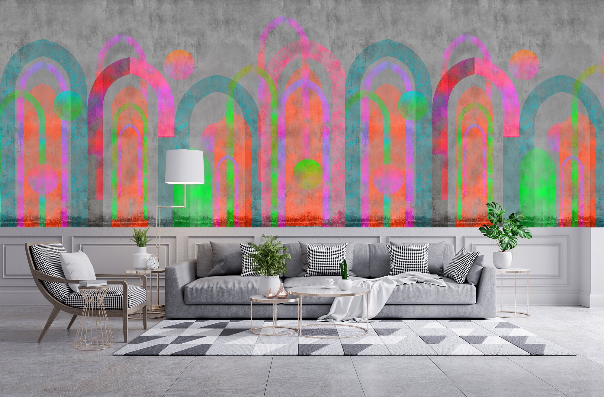 Add a touch of modern artistry to your space with this stunning minimalistic colorful interior design wallpaper featuring a concrete effect. Transform your walls into a canvas that reflects art and creativity, with colorful bridge patterns leading to new and exciting destinations. Each glance at this unique wallpaper is like opening a door to a new world, making it a captivating addition to any room. Bring a touch of abstract art to your home and create a space that is truly one-of-a-kind.