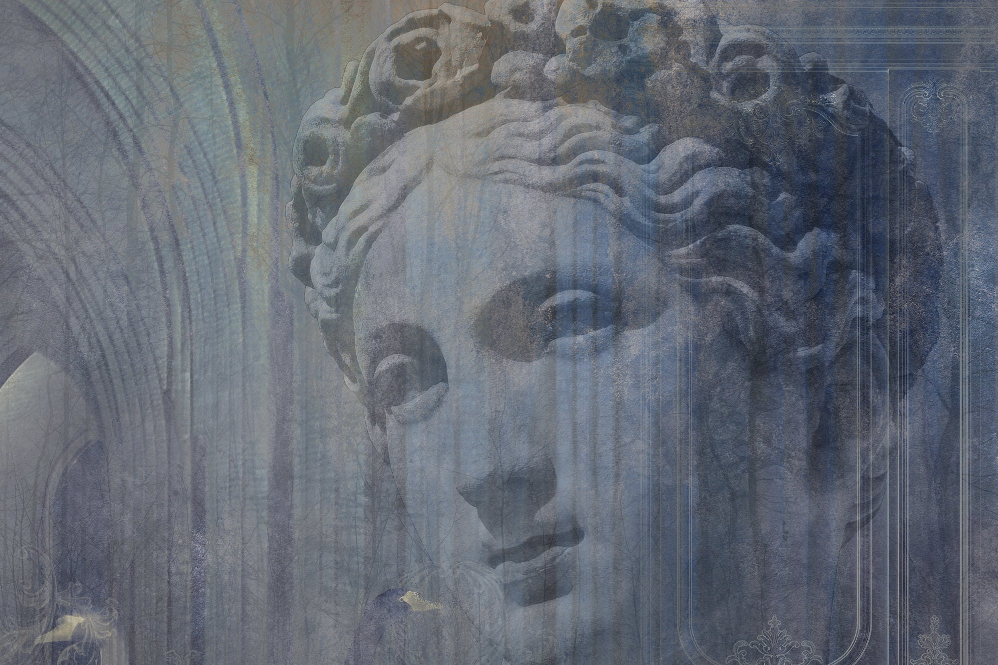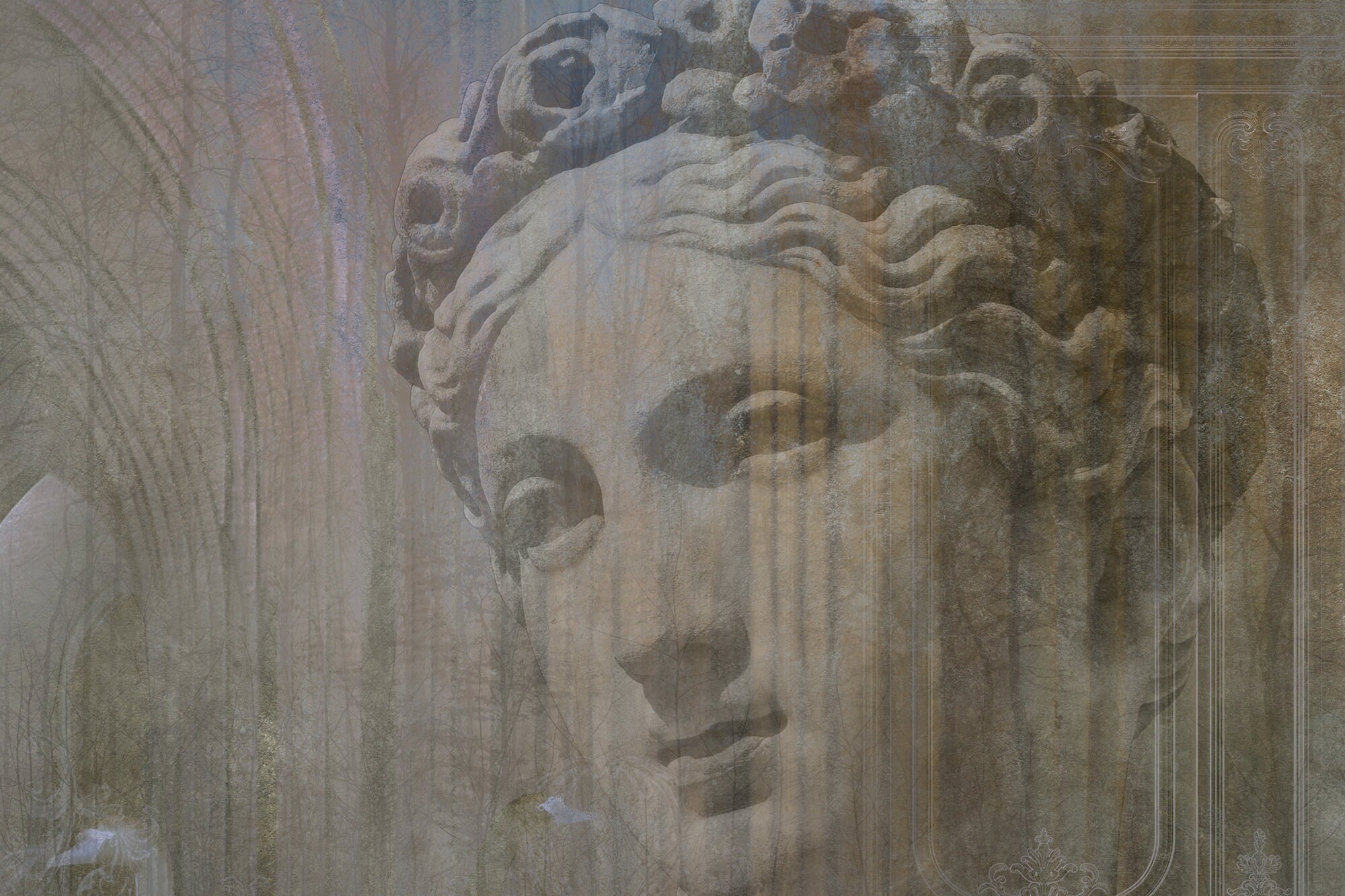 Roman Bust Wallpaper Mural: Concrete Effect, Peel and Stick Vinyl