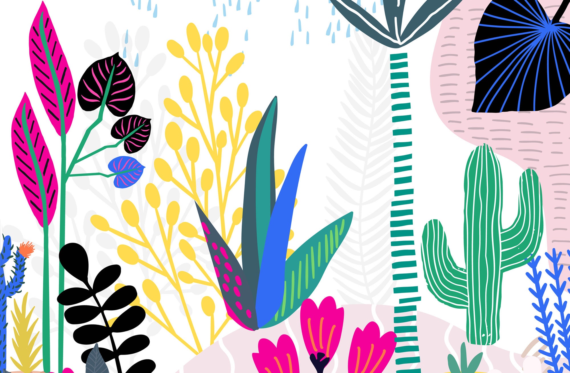 Step into a whimsical world where you are invited to a botanical garden with cathedrals right in the comfort of your own home. Are you ready for such a modern narrative view that will transform your space? This illustrated nature wallpaper will bring a touch of the outdoors indoors, making your home feel both modern and warm. Add a unique and enchanting ambiance to any room with this captivating wallpaper design.
