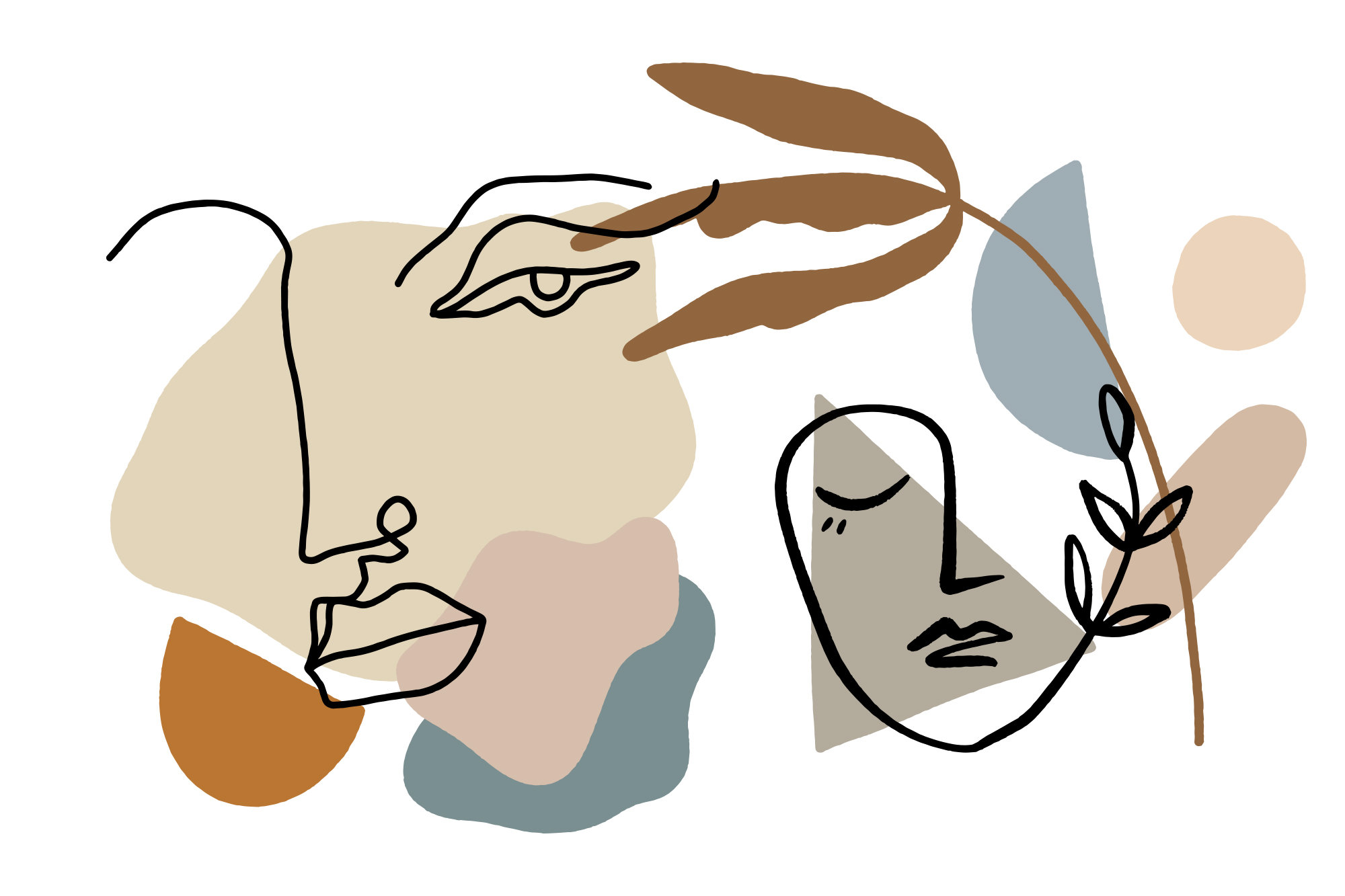 Modern Line Art Wallpaper: Pastel Face Design, Peel and Stick