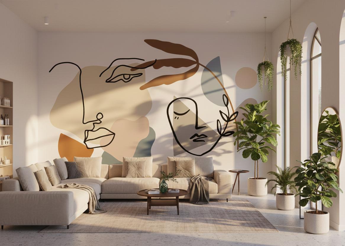 Transform your walls with this Modern Line Art Wallpaper featuring sleek male and female face designs in delicate pastel tones. This peel-and-stick mural adds contemporary charm, sophistication, and artistic flair to any space. Perfect for interiors seeking modern, minimalist, and boho-inspired wall art.