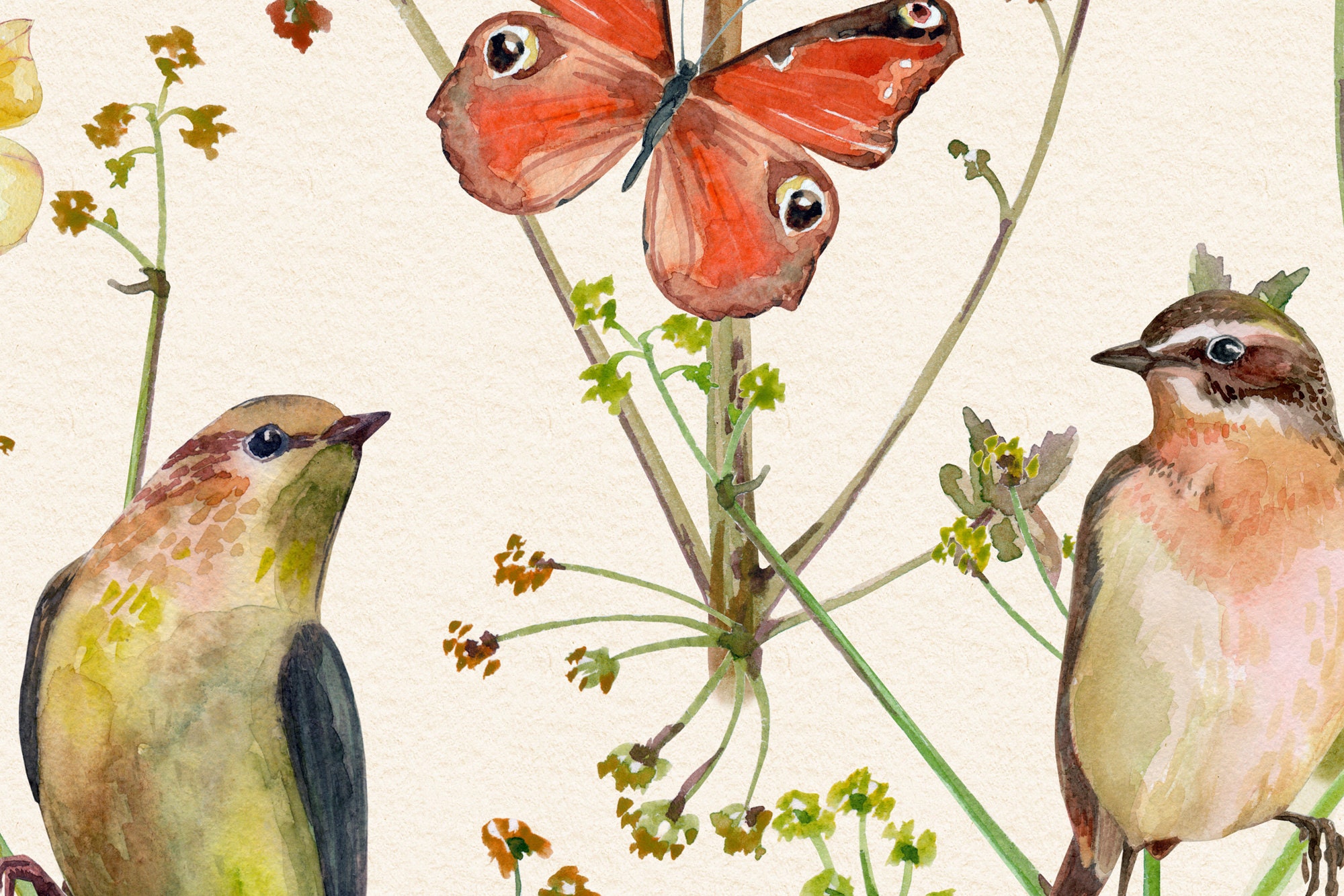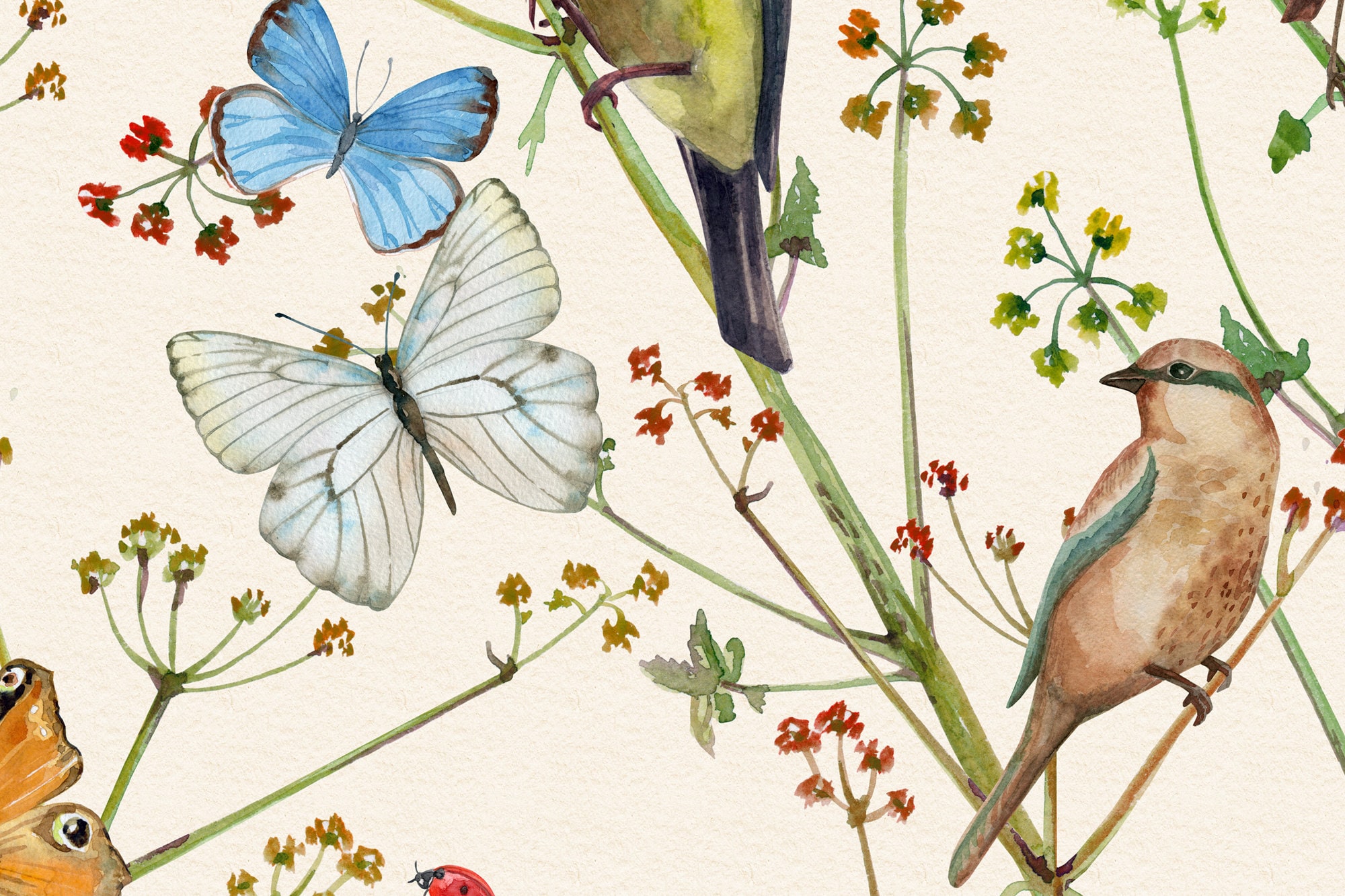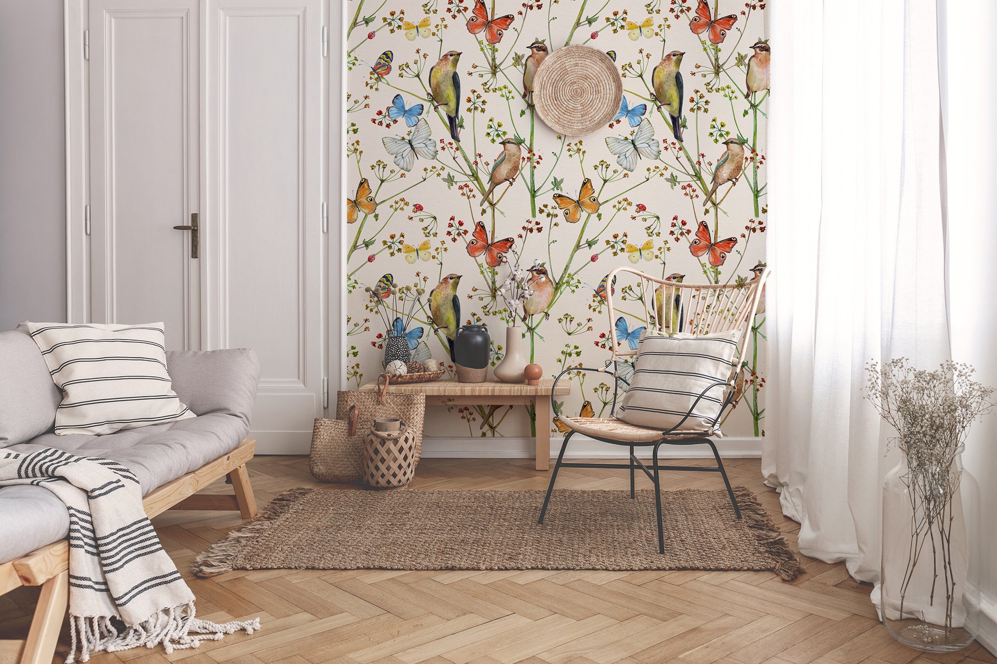 Spring Bliss Wallpaper - Colorful Butterflies and Birds, Peel and Stick, Removable, Self-Adhesive Vinyl