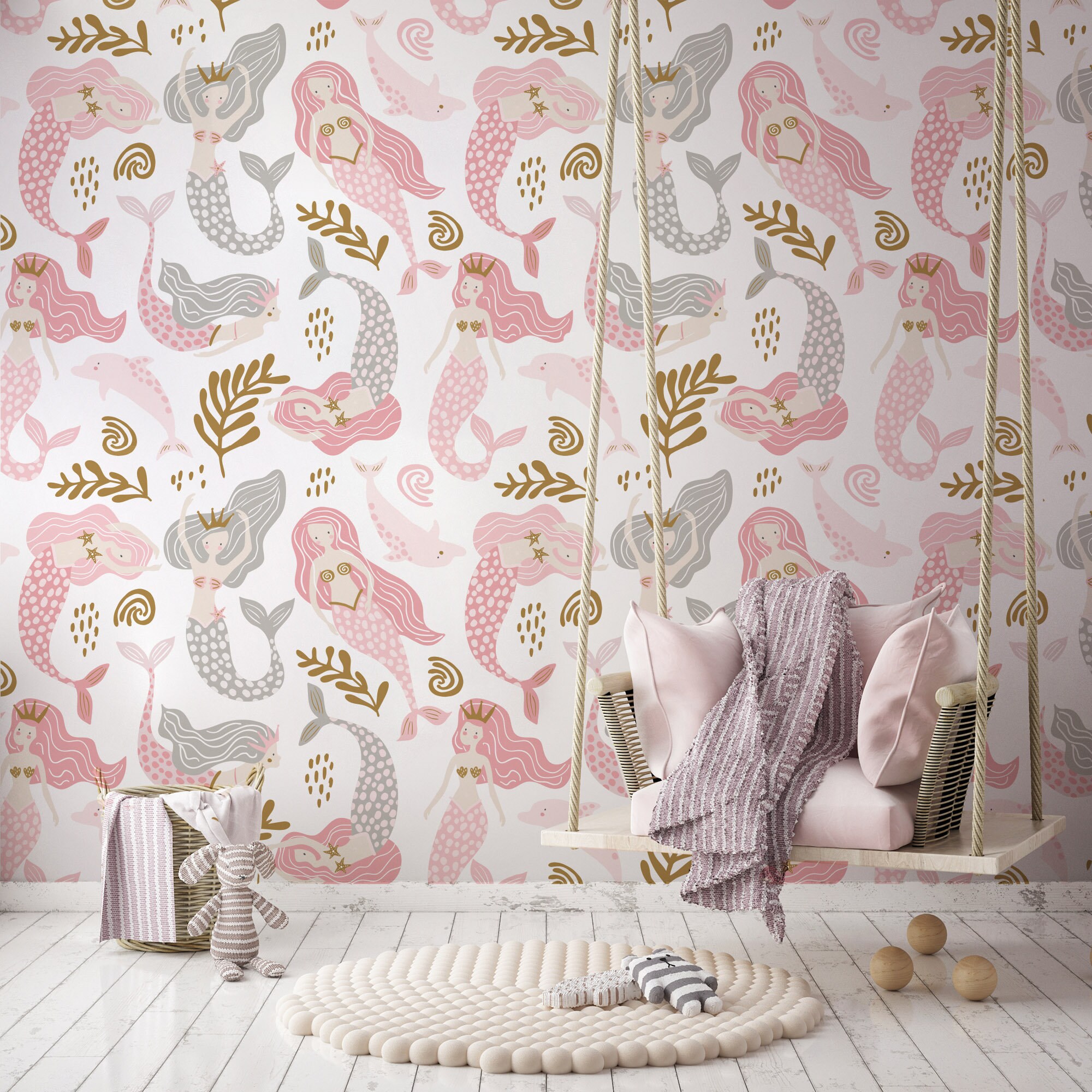 Introduce an enchanting and whimsical touch to your little one's nursery with our Kids High-Quality Wallpaper featuring a delightful Mermaid pattern. This colorful and vibrant wall decor is perfect for creating an underwater oasis for your baby girl. The captivating pink hues perfectly complement the sea-inspired design, immersing the room in a world of wonder. Crafted from removable peel and stick vinyl, this easy-to-install wallpaper ensures hassle-free application and removal. Let the sea's little mermaid inspire your child's imagination, making their space truly magical.