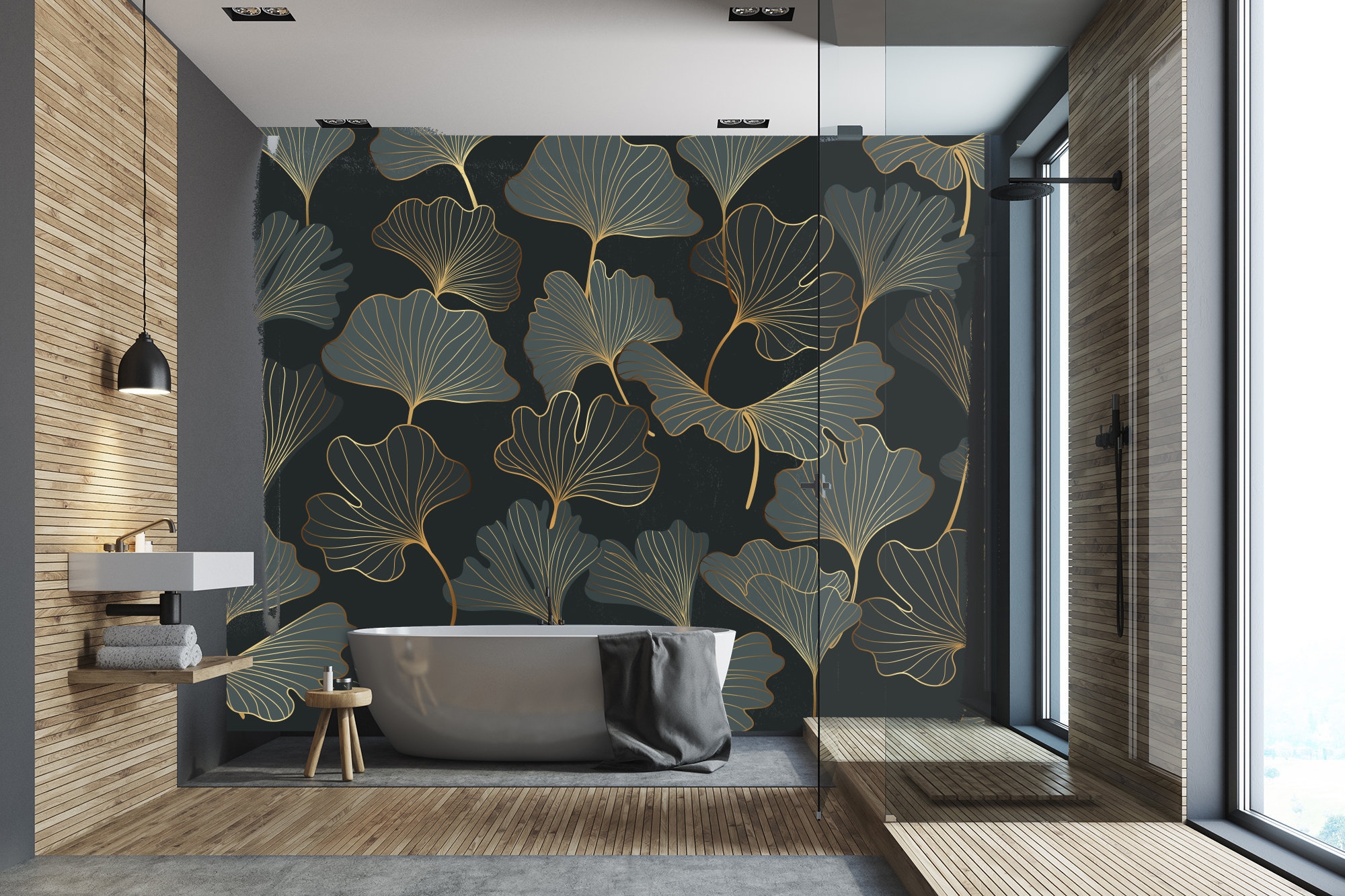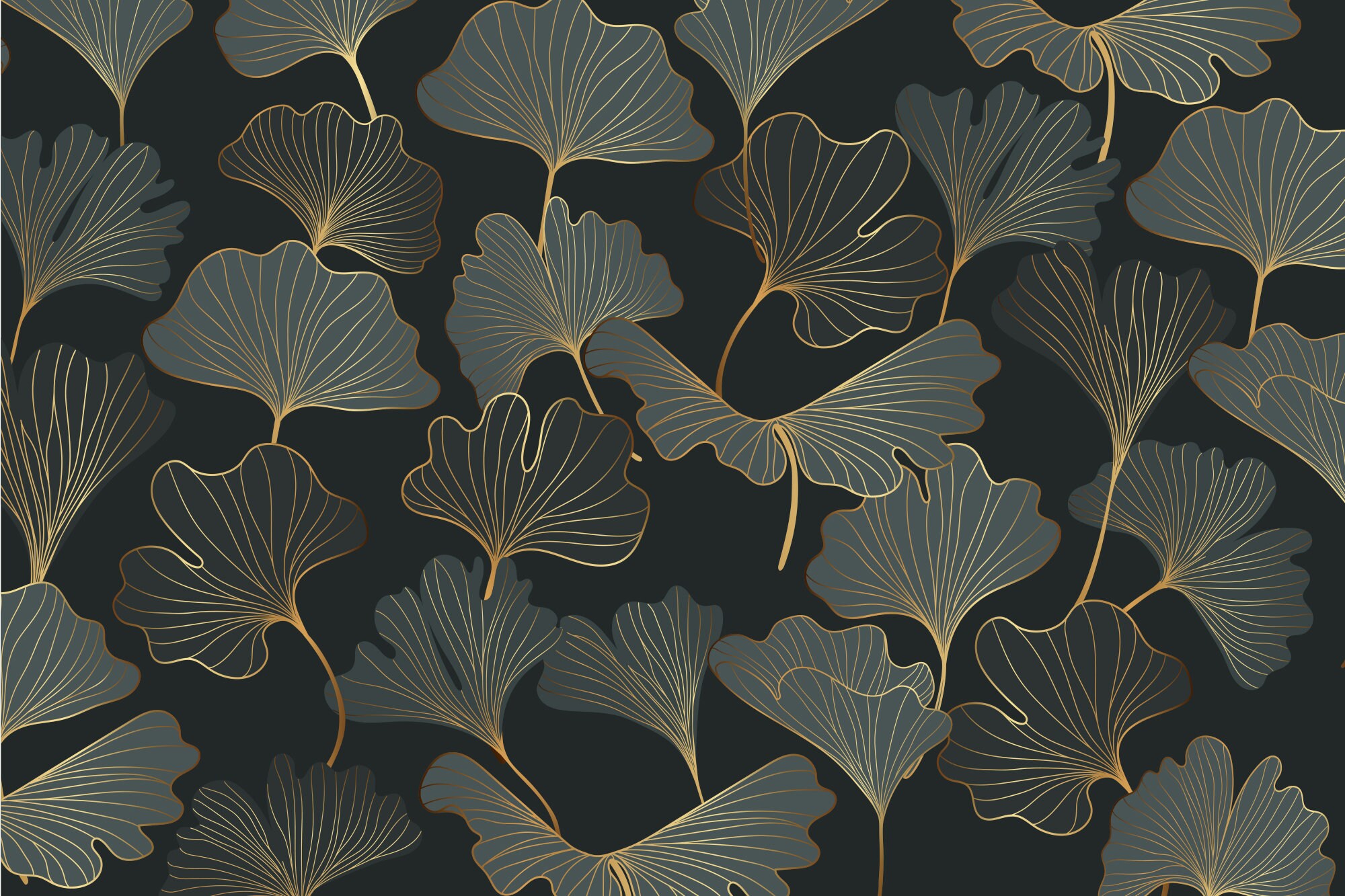 Gold Ginkgo Leaf Wall Mural: Art Deco Home Decor (Removable)