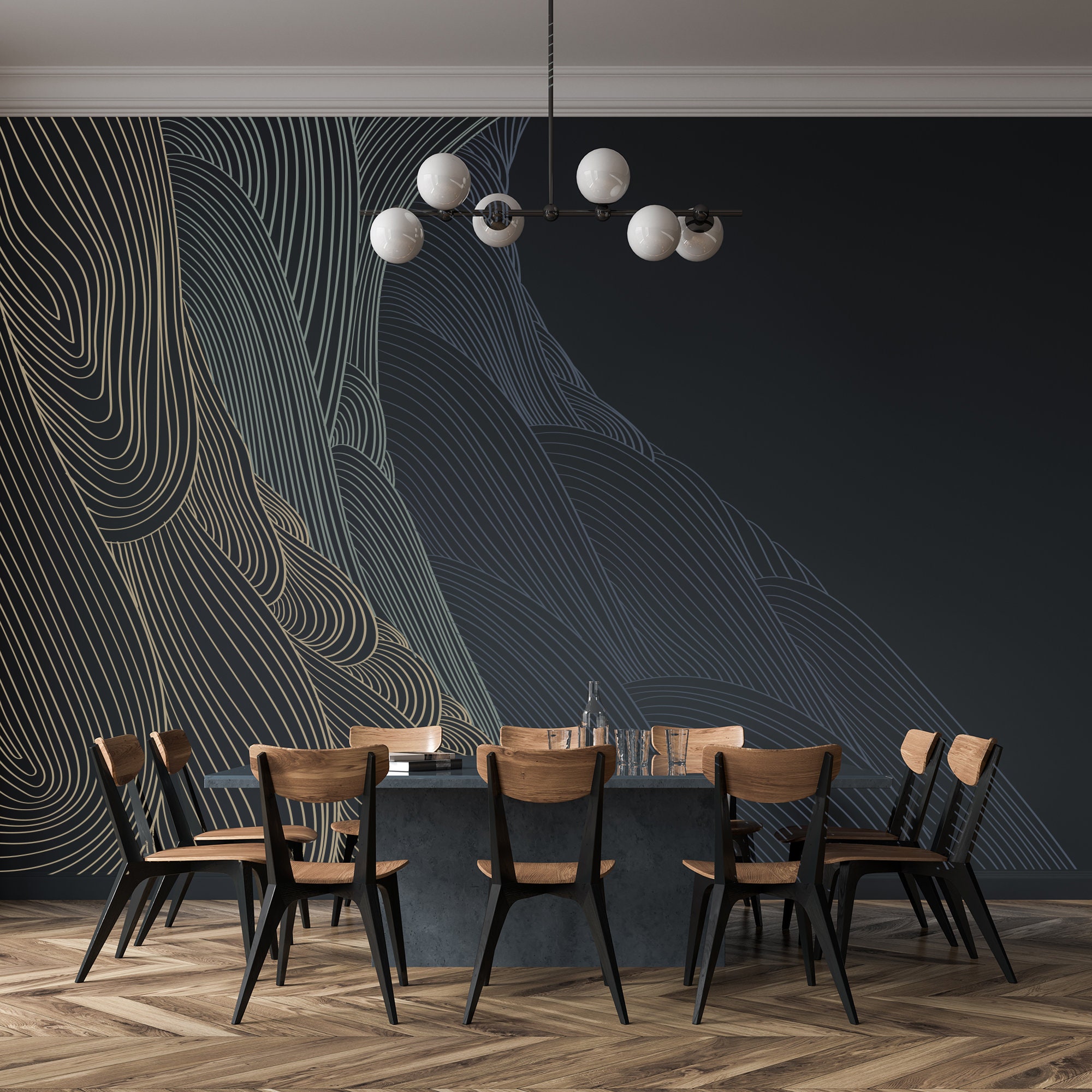 Dark Abstract Line Art Wallpaper: Wavy Sea Design Peel and Stick