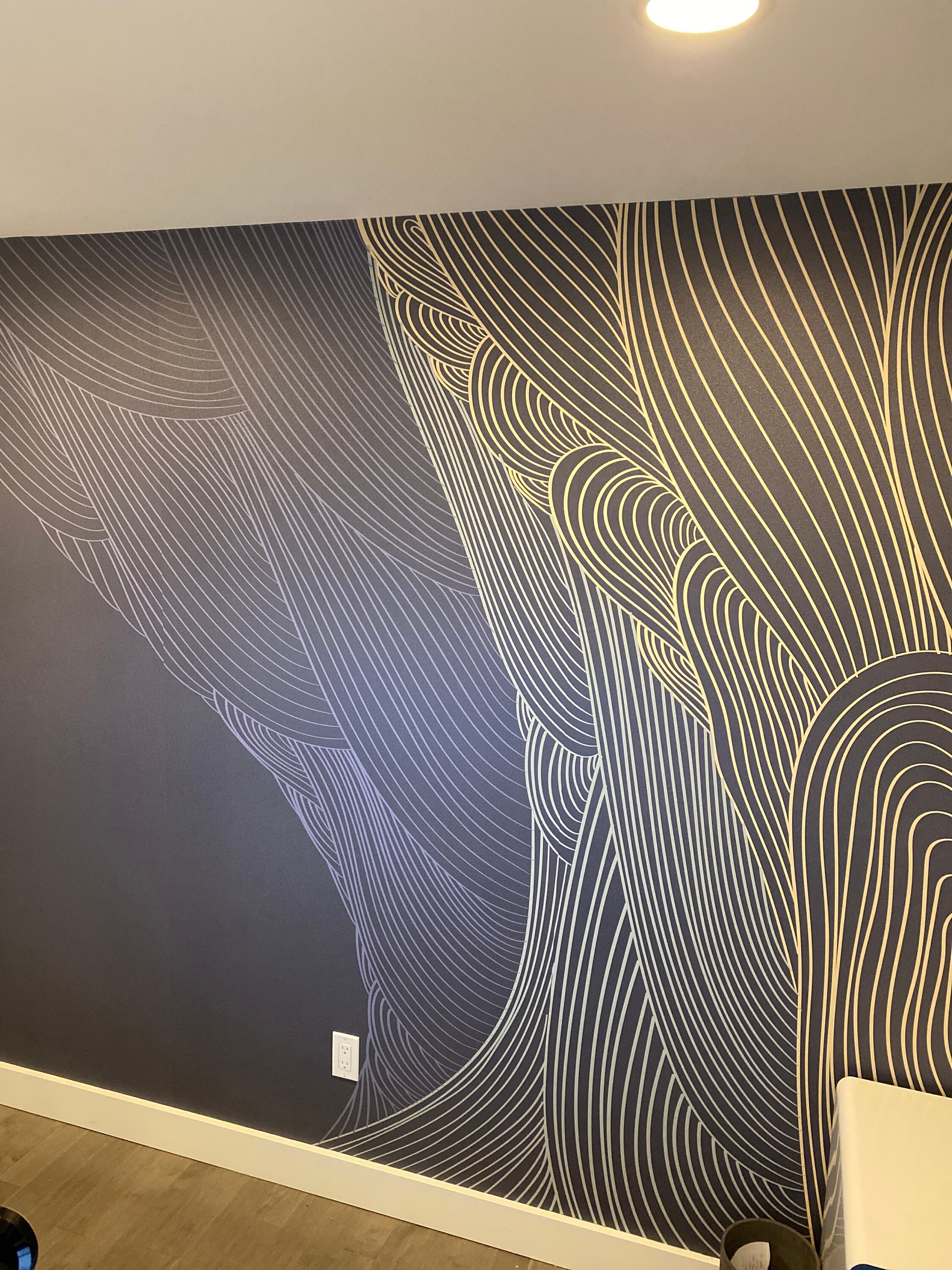 Introducing our exclusively crafted design for your home decor! Our line art wallpaper showcases a mesmerizing dark color palette, creating a stunning, contemporary backdrop. With exquisite attention to detail, we've captured the and original state of a wavy sea, evoking a sense of tranquility and serenity. This unique combination of elements will certainly make your home shine, adding a touch of elegance and serene beauty to any room. Elevate your space with our captivating design and transform your home into a sanctuary of style and sophistication.