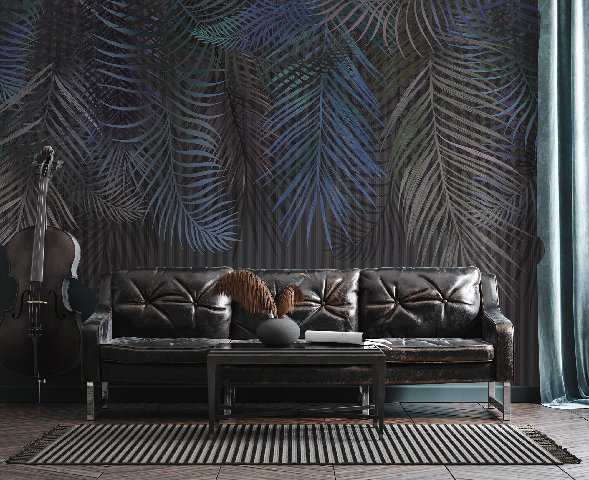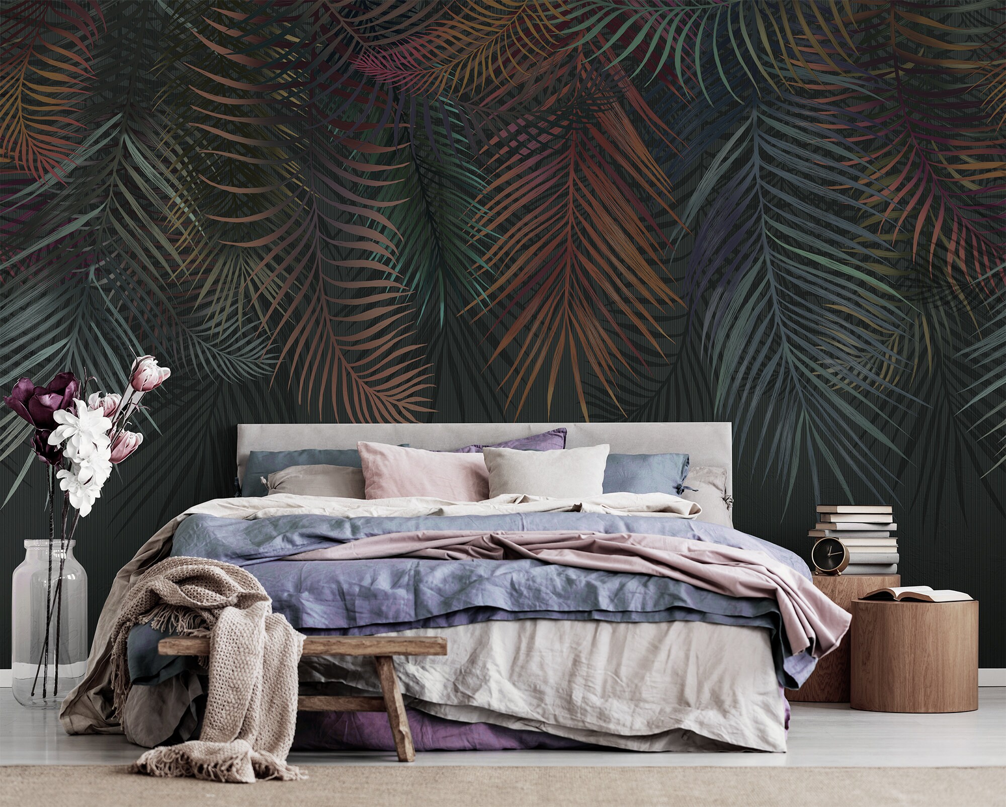 Step into the enchanting allure of an exotic jungle with our extraordinary Dark Botanical Wallpaper. This breathtaking design transports you to a world filled with towering palm trees, their leaves dancing gracefully to the mesmerizing melody of the wind. Lose yourself in the rich, lush hues of this wallpaper, available in an array of captivating shades. Allow the captivating beauty of nature to envelop your space and embark on a journey of serenity and tranquility. With the subtle yet striking allure of our Dark Botanical Wallpaper, your surroundings will be transformed into a tropical haven that soothes your soul and rejuvenates your spirit.
