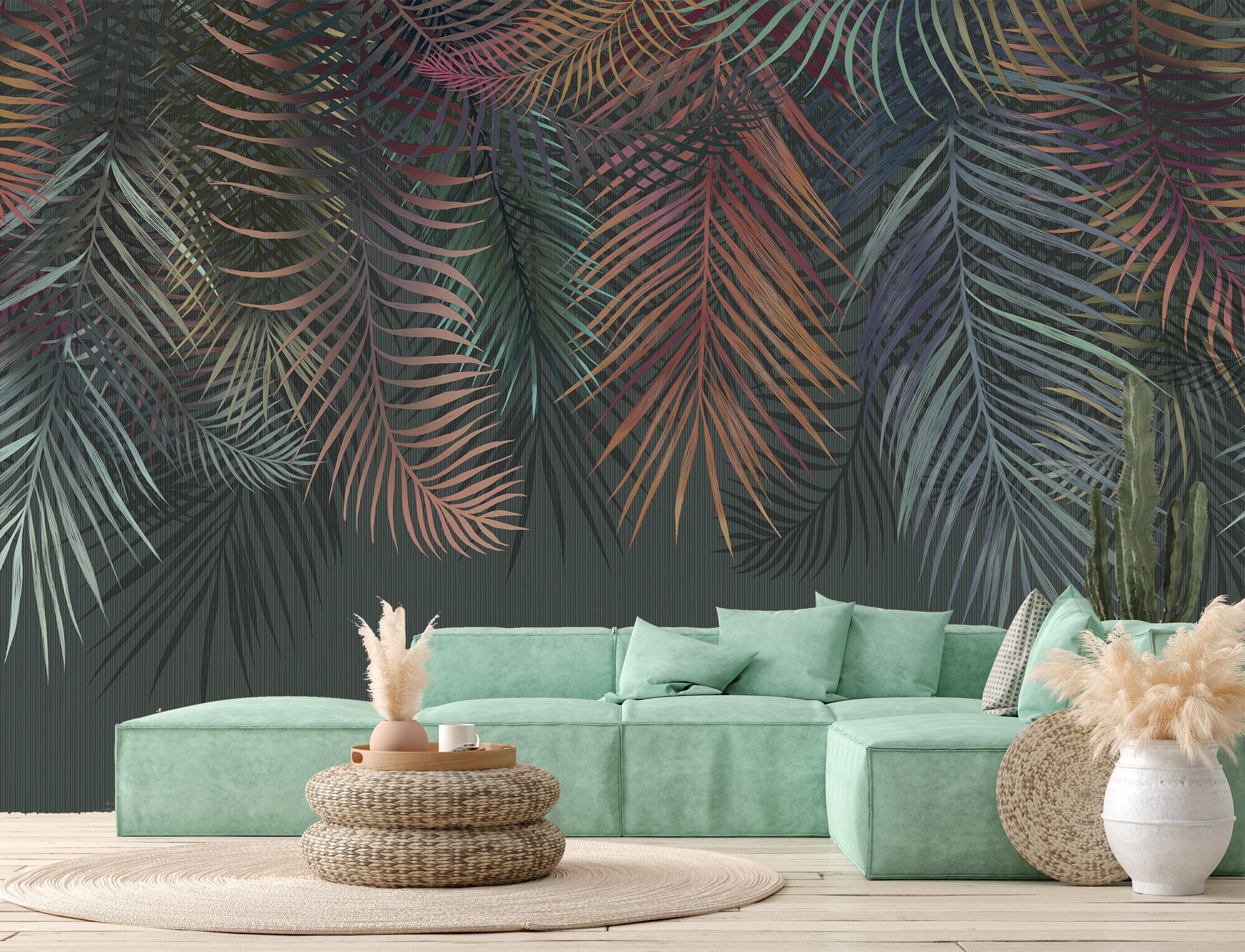 Dark Palm Leaf Wallpaper: Tropical Jungle Peel and Stick Vinyl