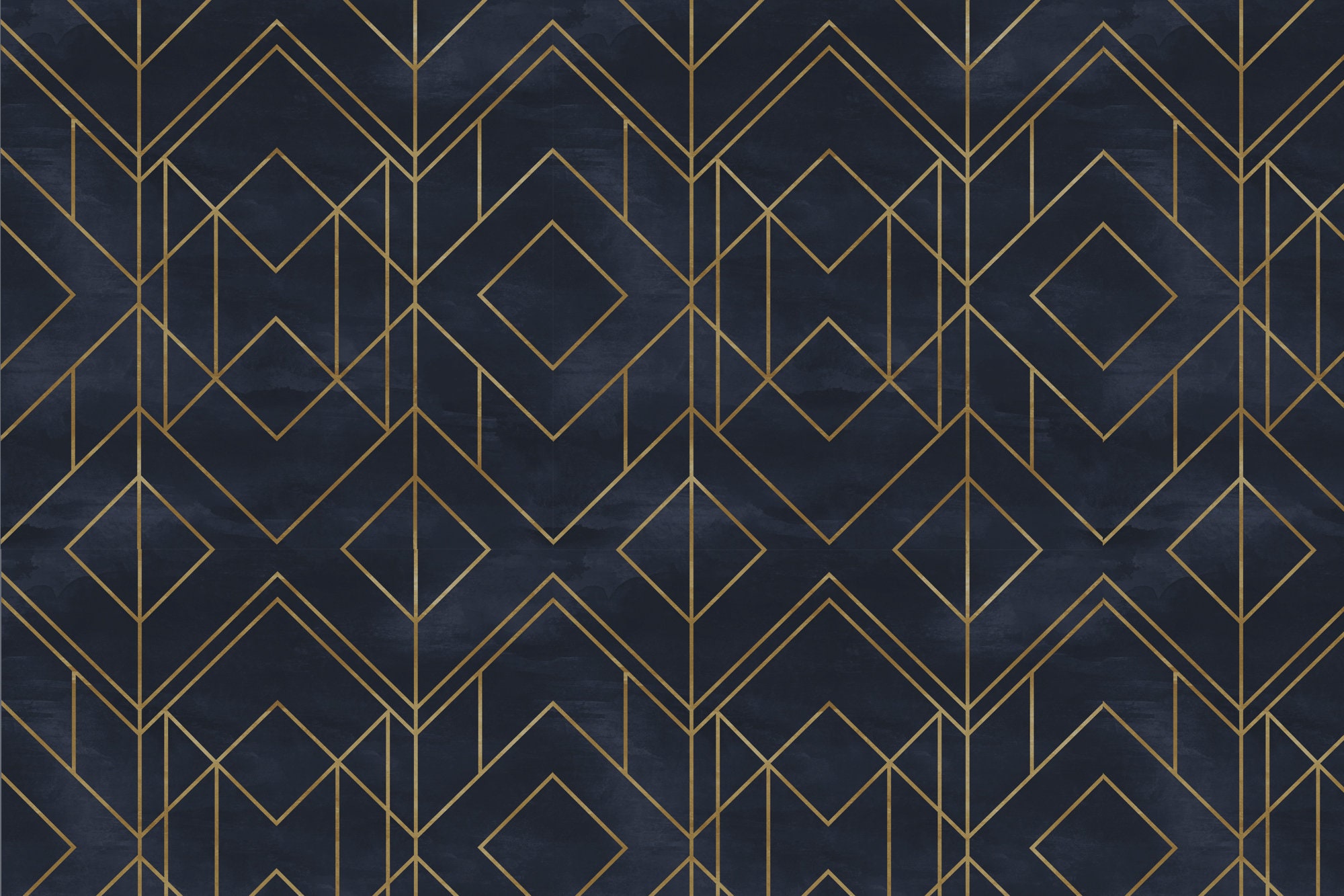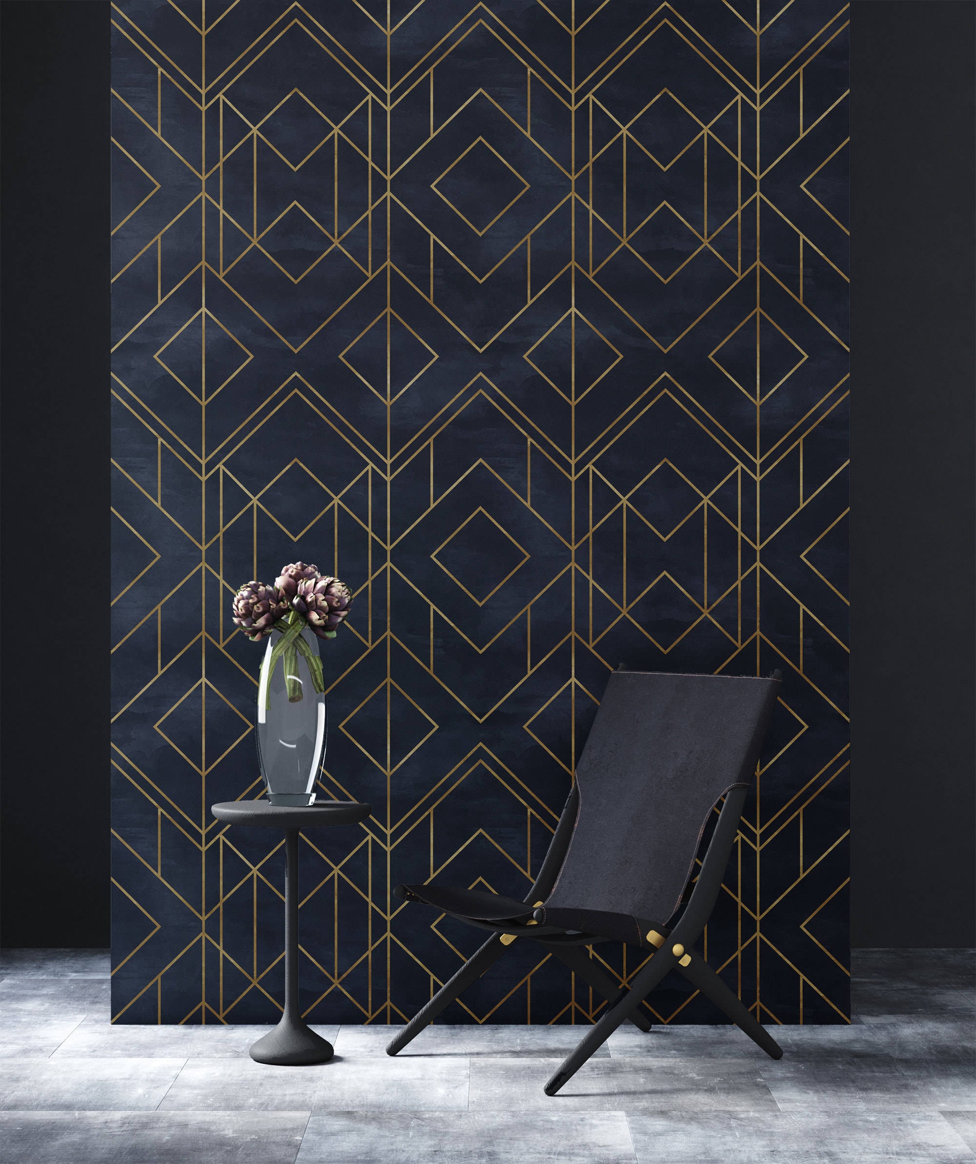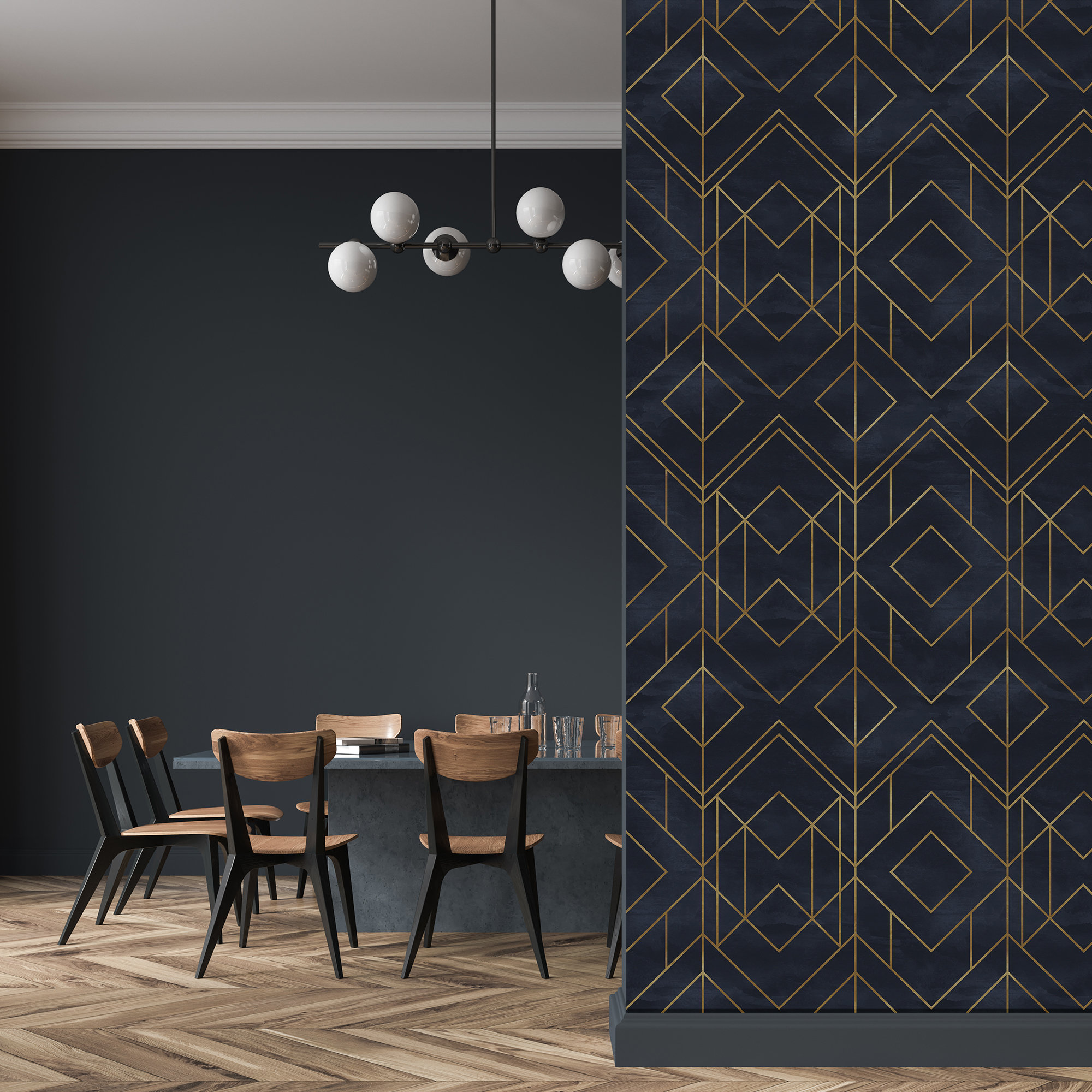 Art Deco Geometric Wallpaper: Black and Gold Peel and Stick Vinyl