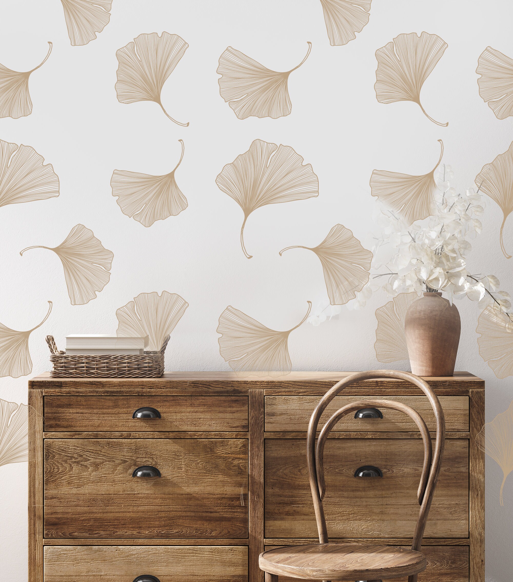 Gold line art Ginkgo Leaves Combining a harmonious blend of classic and modern aesthetic, this stunning piece effortlessly brings a touch of elegance to your home. Adorned in captivating gold and black tones with a subtly warm hue, these oversized ginkgo leaves create a stylish, contemporary, and inviting atmosphere in any room. Crafted with meticulous care, we utilize premium release paper and vinyl paper that promises exceptional durability and quality. Transform your living space into a captivating sanctuary with the enchanting allure of our Ginkgo Leaves.
