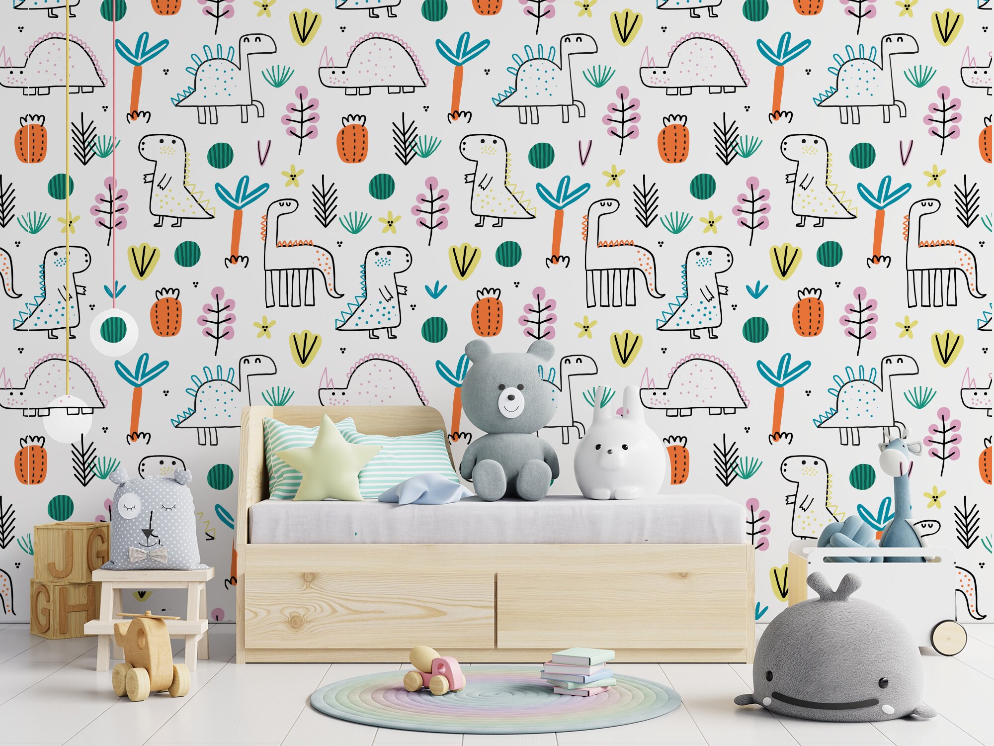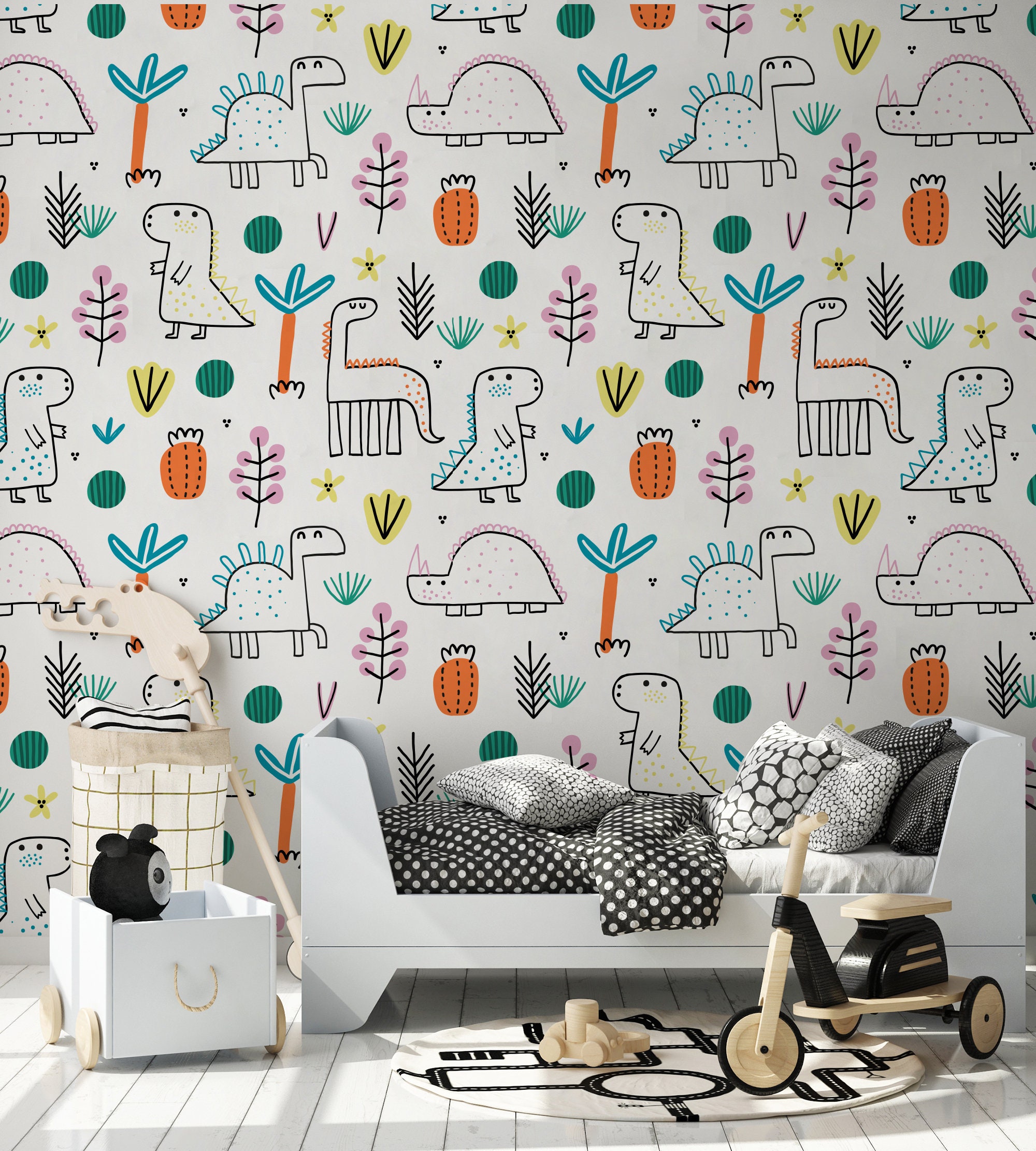 Cartoon Dinosaur Wallpaper: Colorful Peel and Stick Baby Room Decor