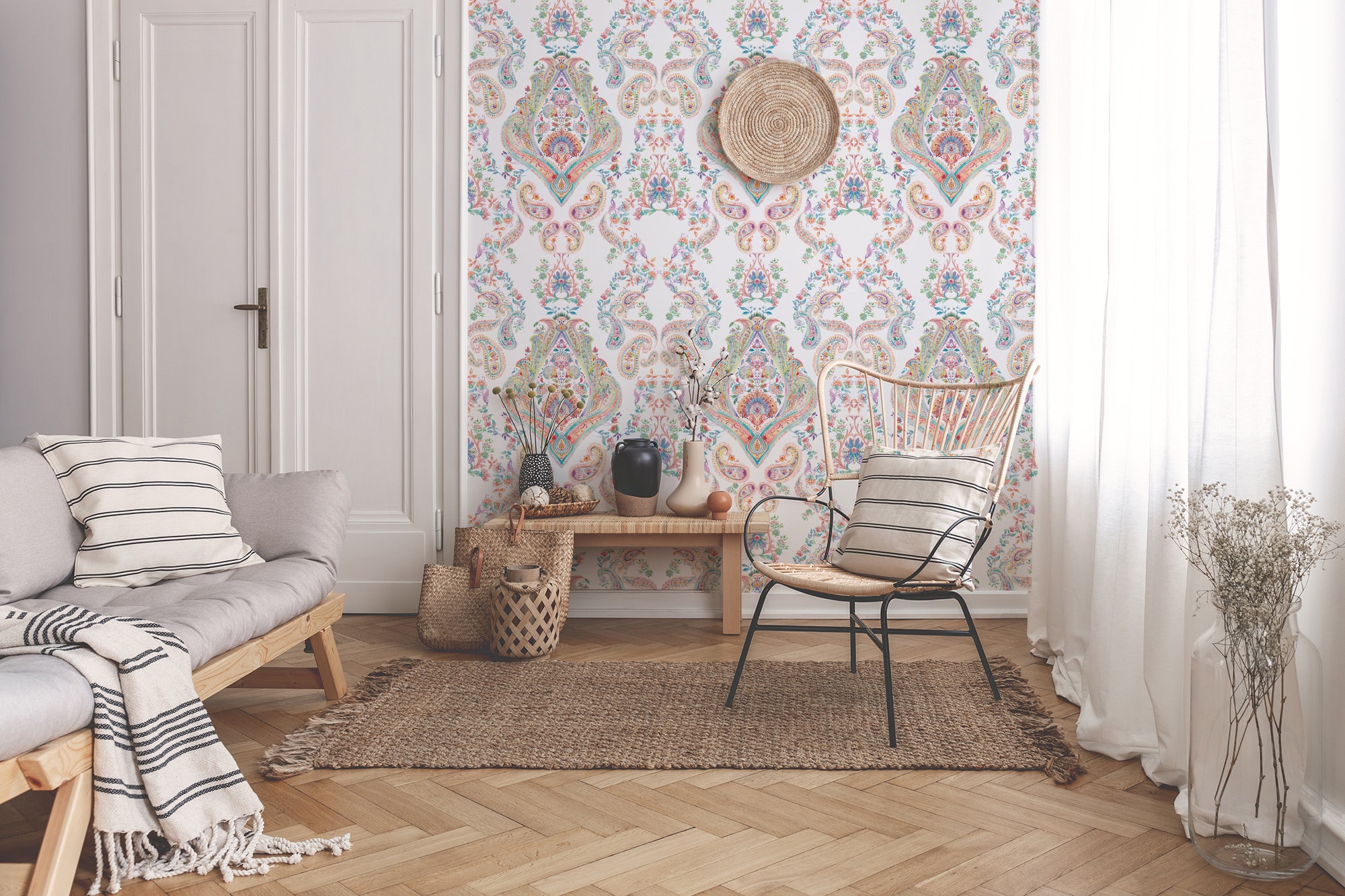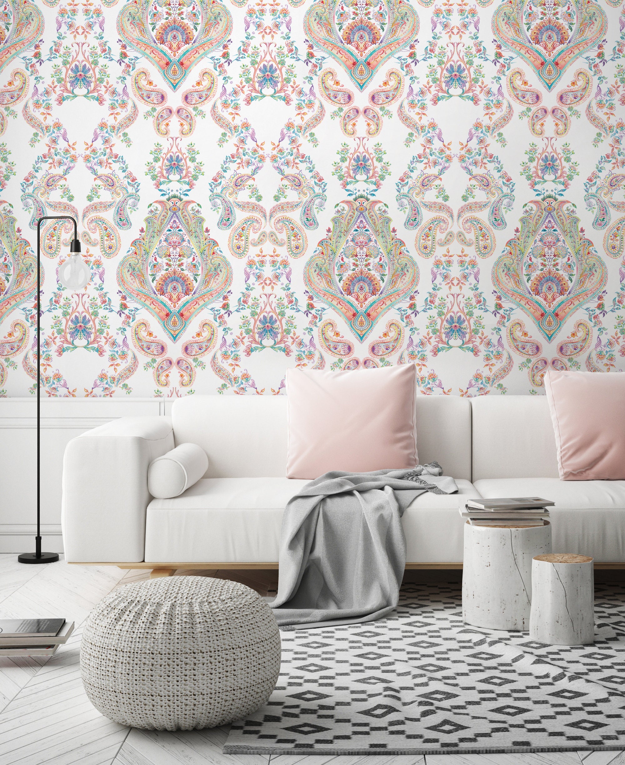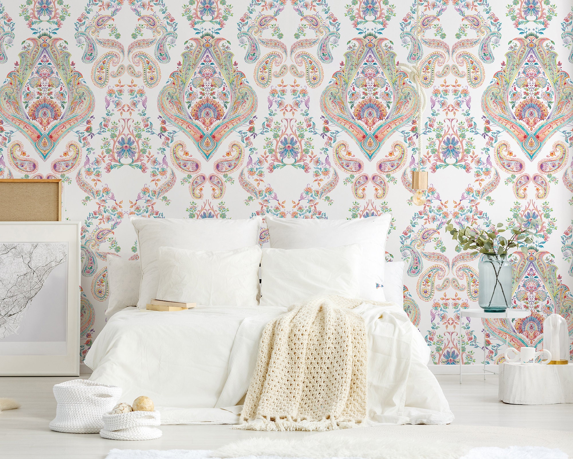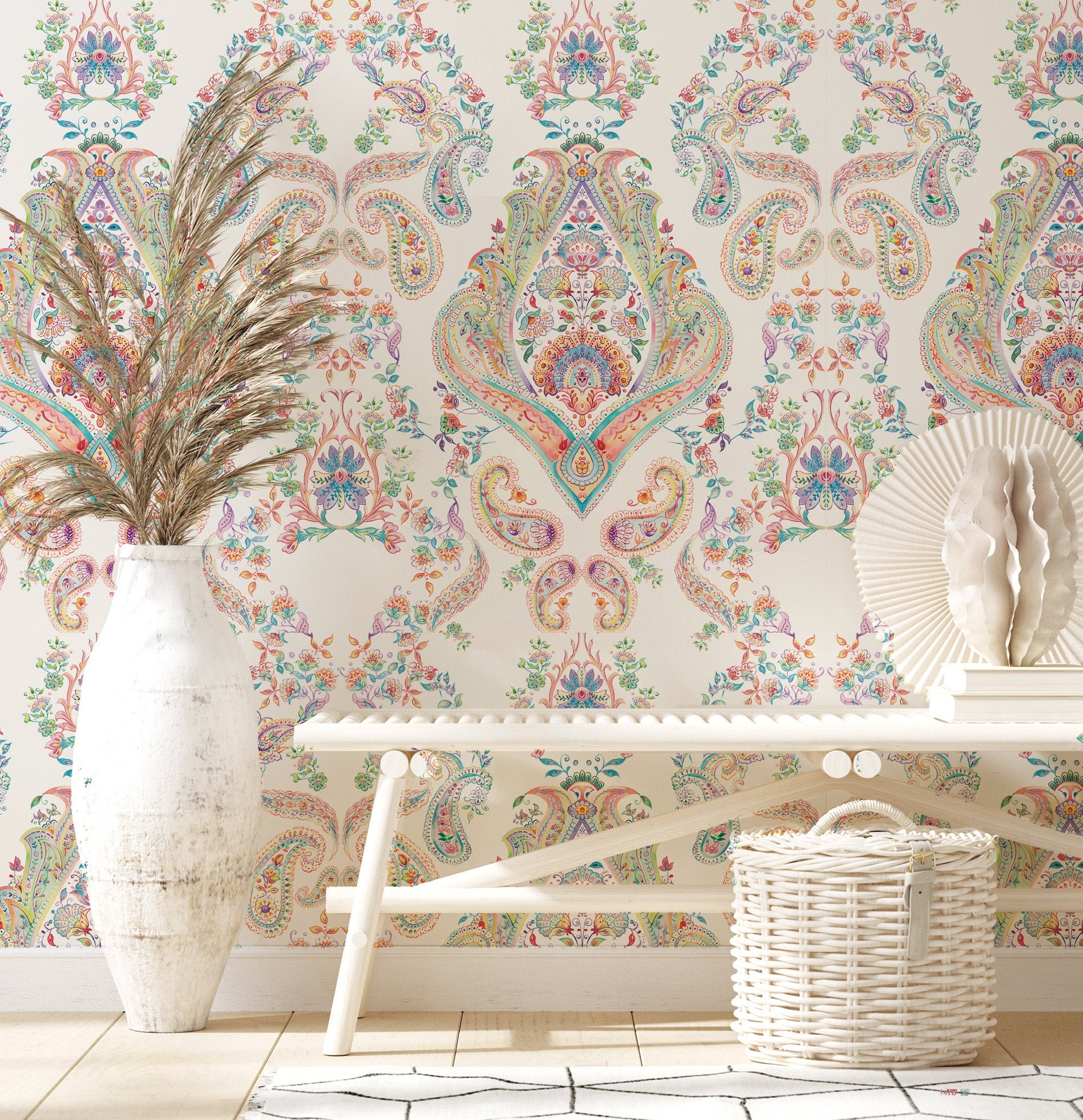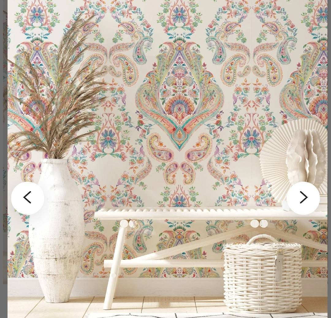 Colorful Paisley Damask Wallpaper: Peel and Stick Vinyl Mural