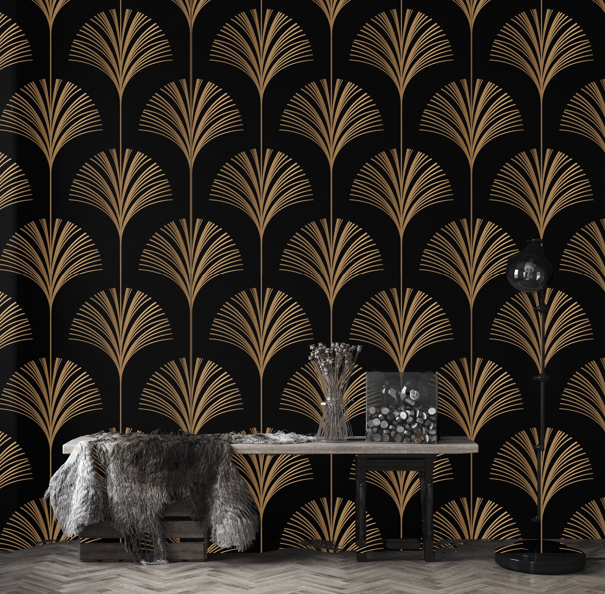 Art Deco Gold Leaf Wallpaper: Geometric Line Art, Peel and Stick