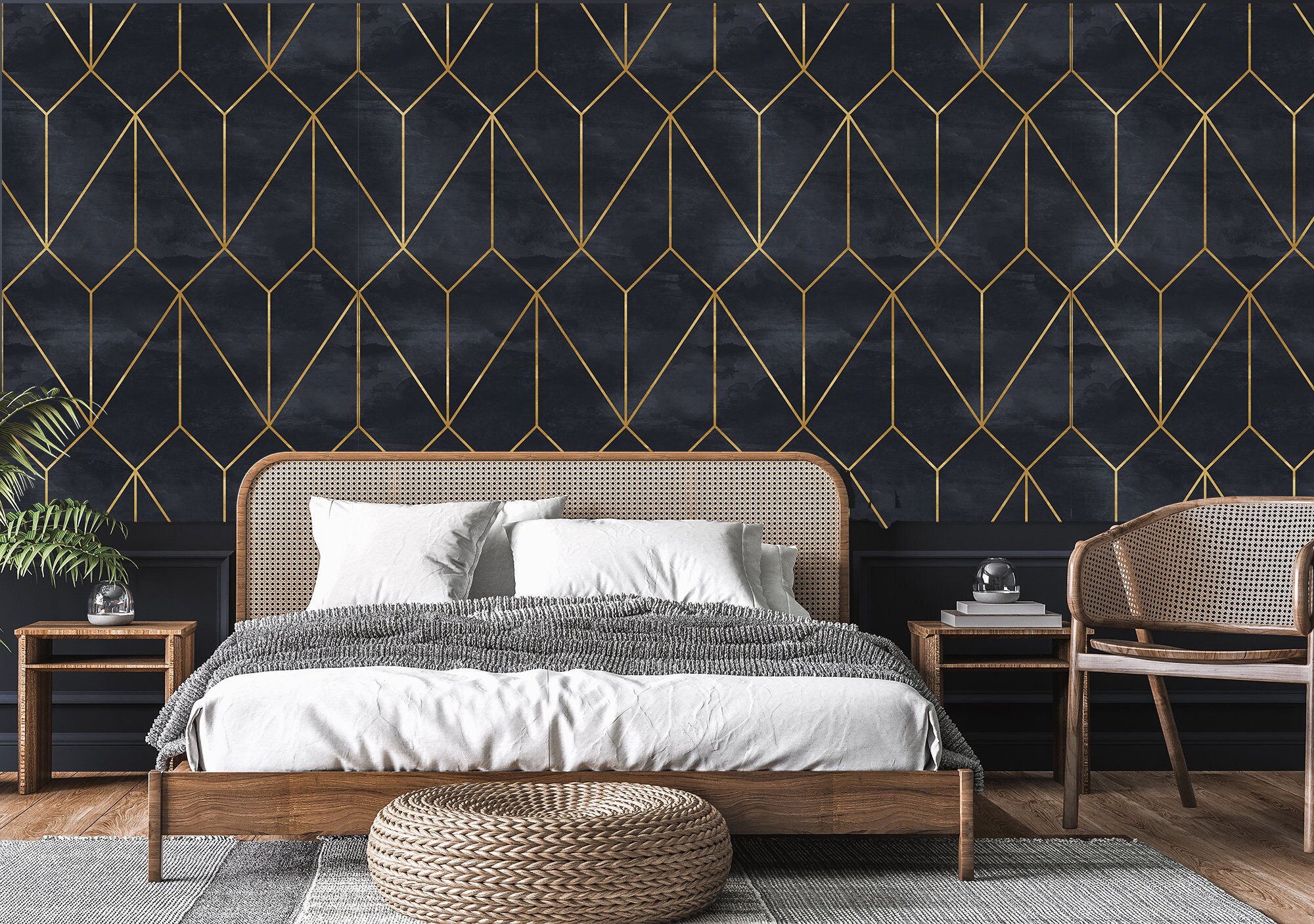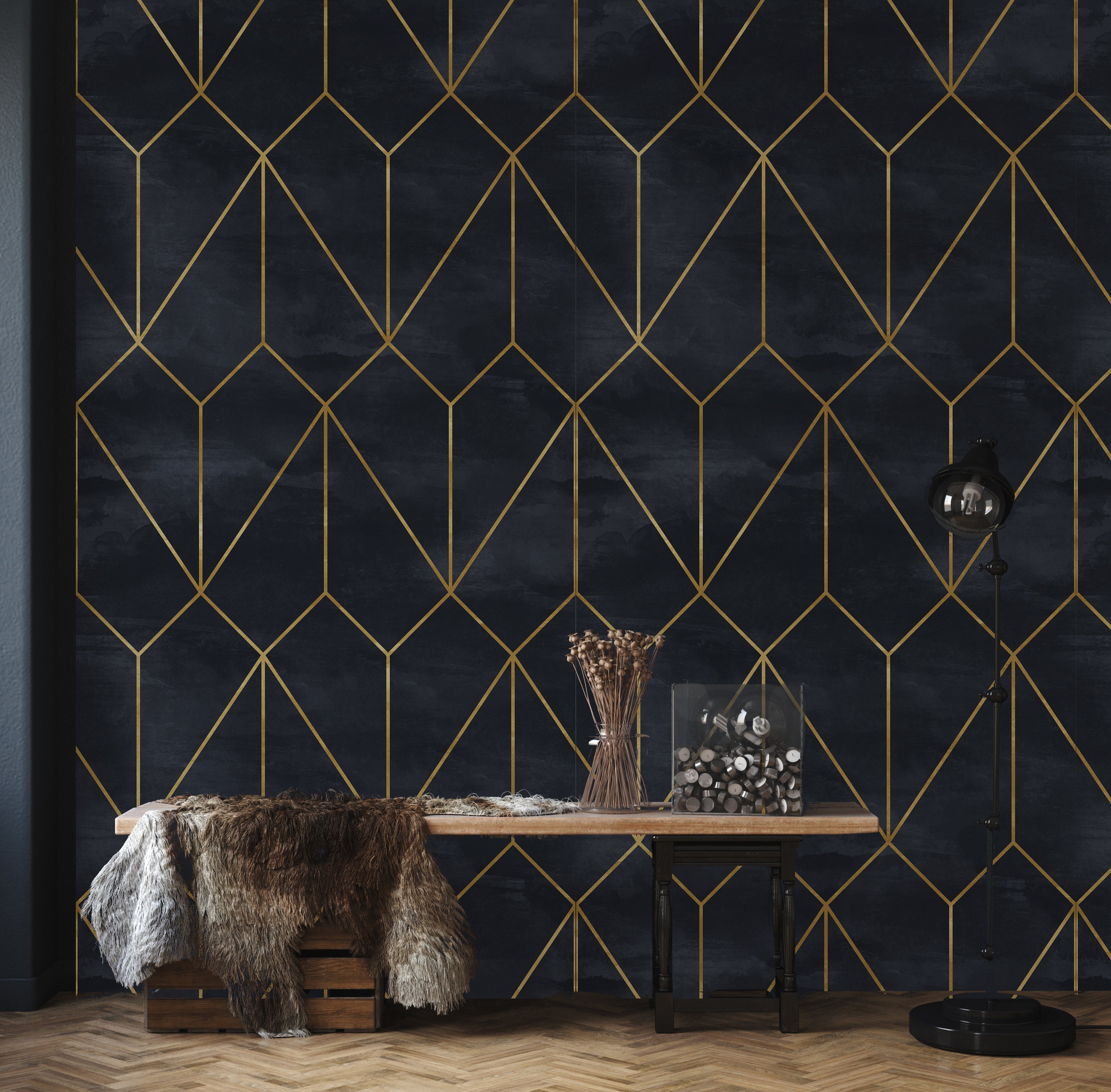 Art Deco Geometric Wallpaper: Black and Gold Peel and Stick Vinyl