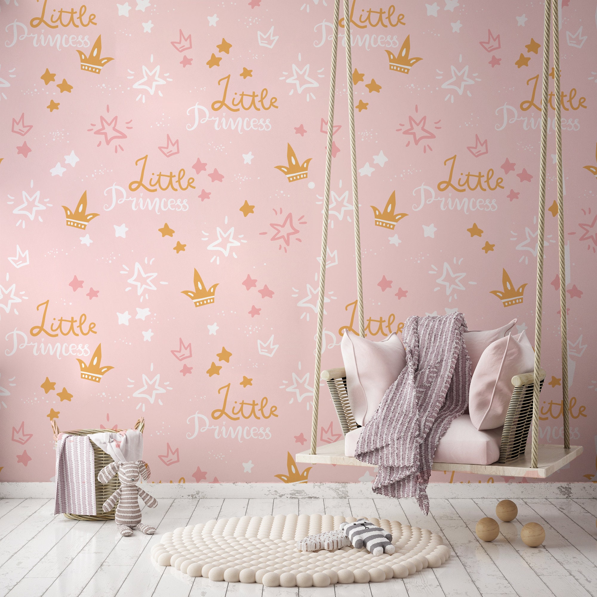 Princess Nursery Wallpaper: Pink Crown & Stars, Peel and Stick Vinyl