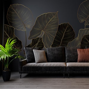 Bring the serene beauty of an exotic forest into your interiors with this wallpaper. Featuring soft pastel plant motifs and subtle gold lines, the design combines minimalist elegance with a hint of luxury. Organic shapes and delicate botanical details create a calming yet stylish ambiance, making this mural perfect for modern, boho, or tropical-inspired interiors. Transform your space into a tranquil oasis with refined artistic flair.