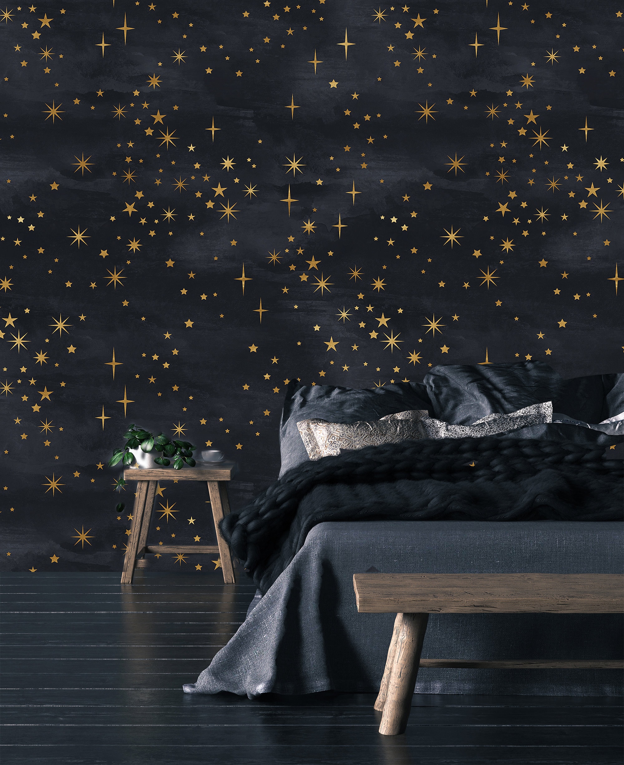 Art Deco Starry Nights Wallpaper: Black & Gold, Peel and Stick