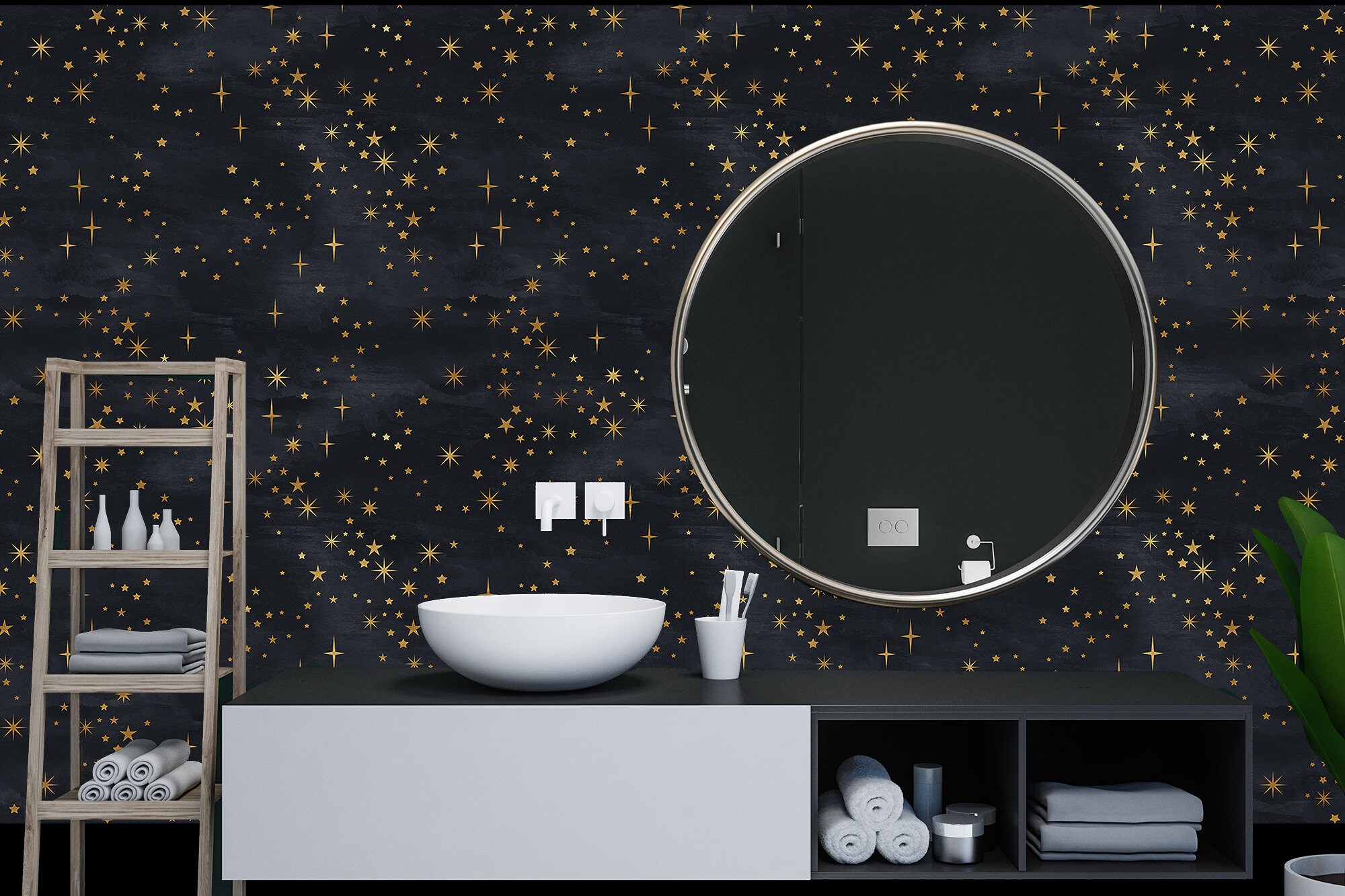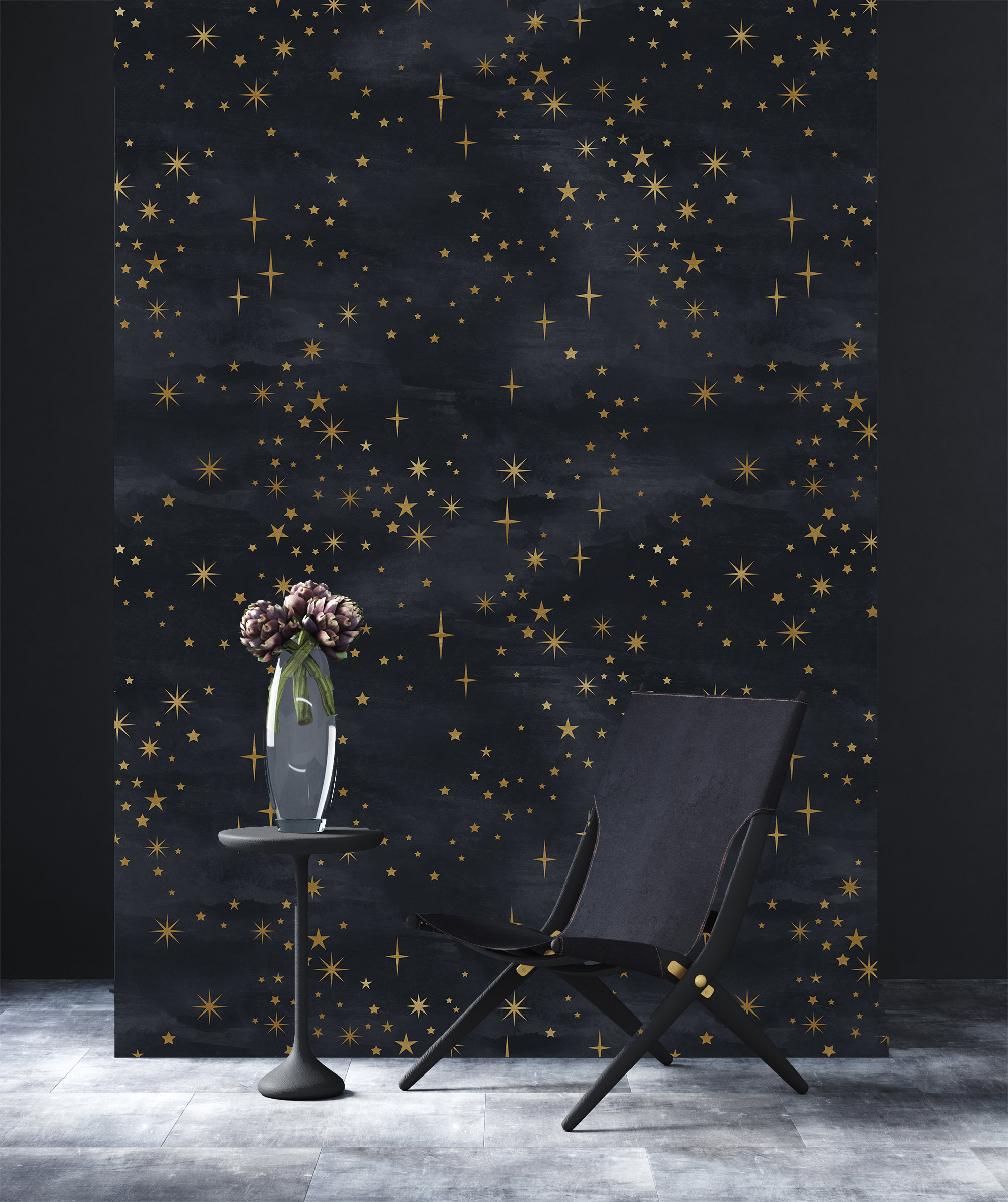 Transform your space into a celestial paradise with our Starry Nights: Art Deco Style Black with Gold Stars Wallpaper. This cosmic-inspired wallpaper is perfect for dreamers and stargazers alike. The sleek black backdrop exudes elegance, while the shimmering gold stars add a touch of glamour. Whether you're looking to create a captivating accent wall or transform an entire room, this wallpaper is sure to elevate your space to new artistic heights. Let the night sky be your guide and immerse yourself in a cosmic dream with our Starry Nights wallpaper.