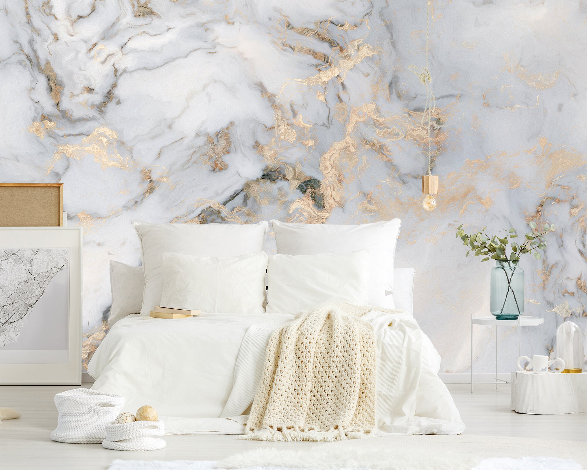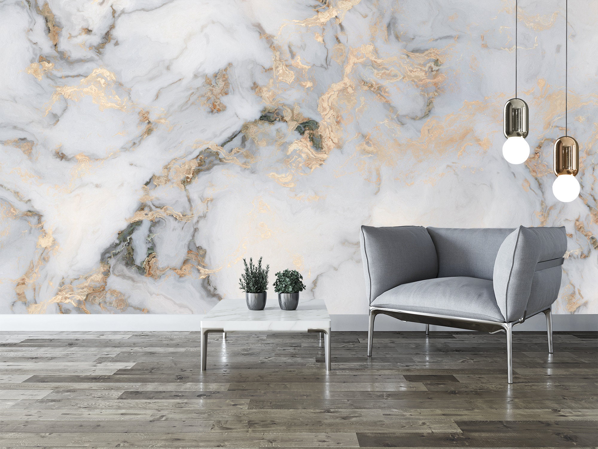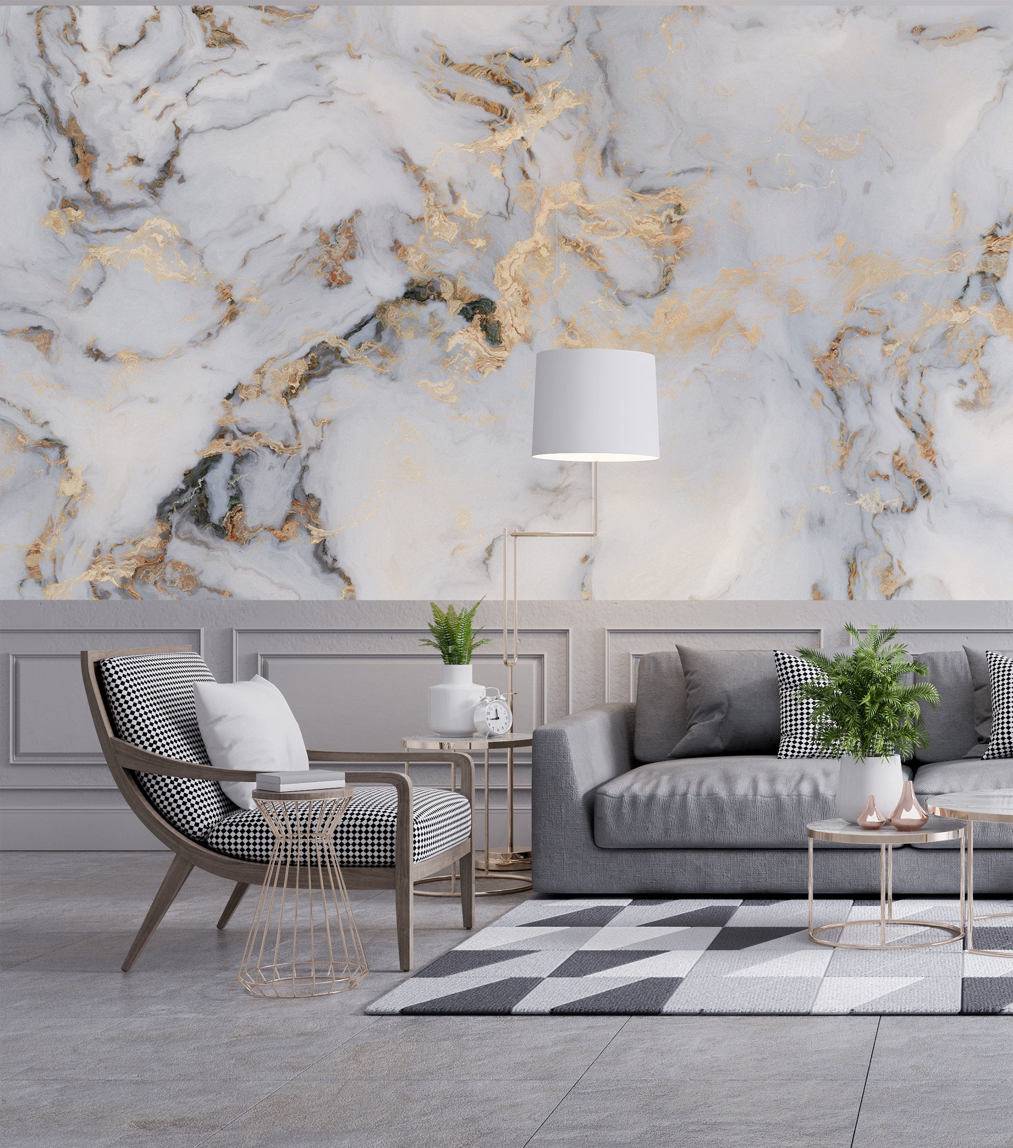 Chic White Marble Peel and Stick Mural for Luxe Home Decor, vinly wallpaper, removable