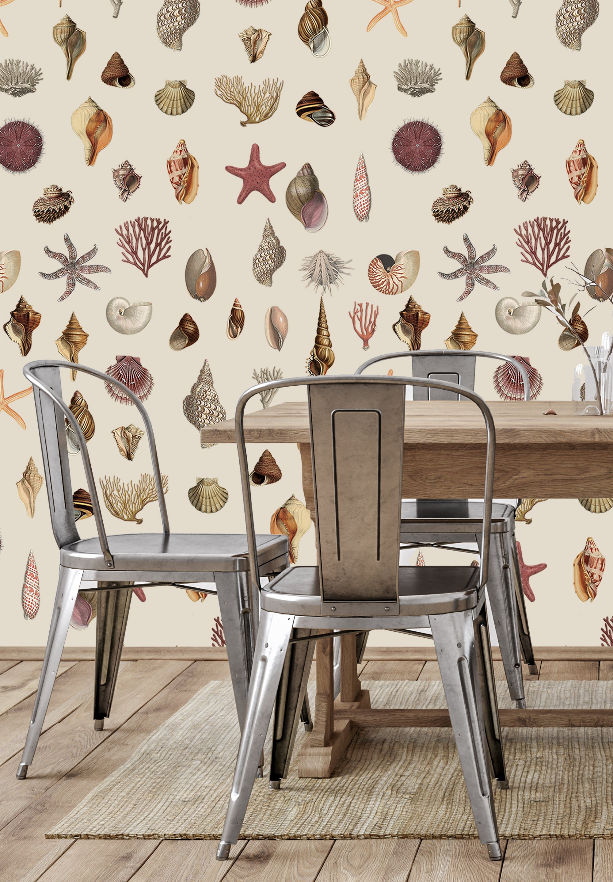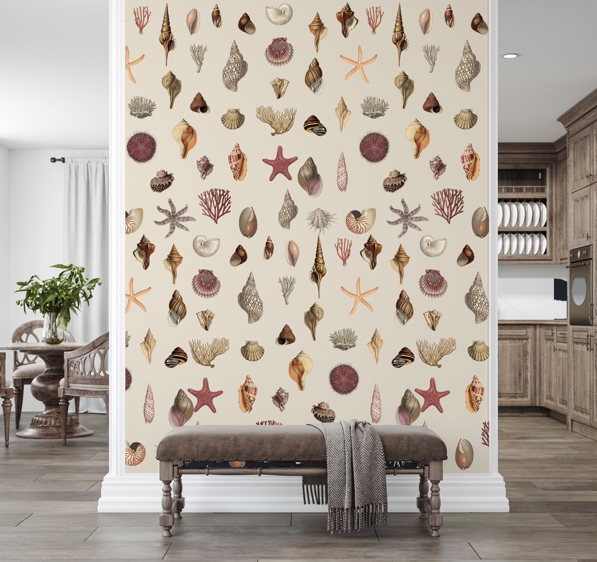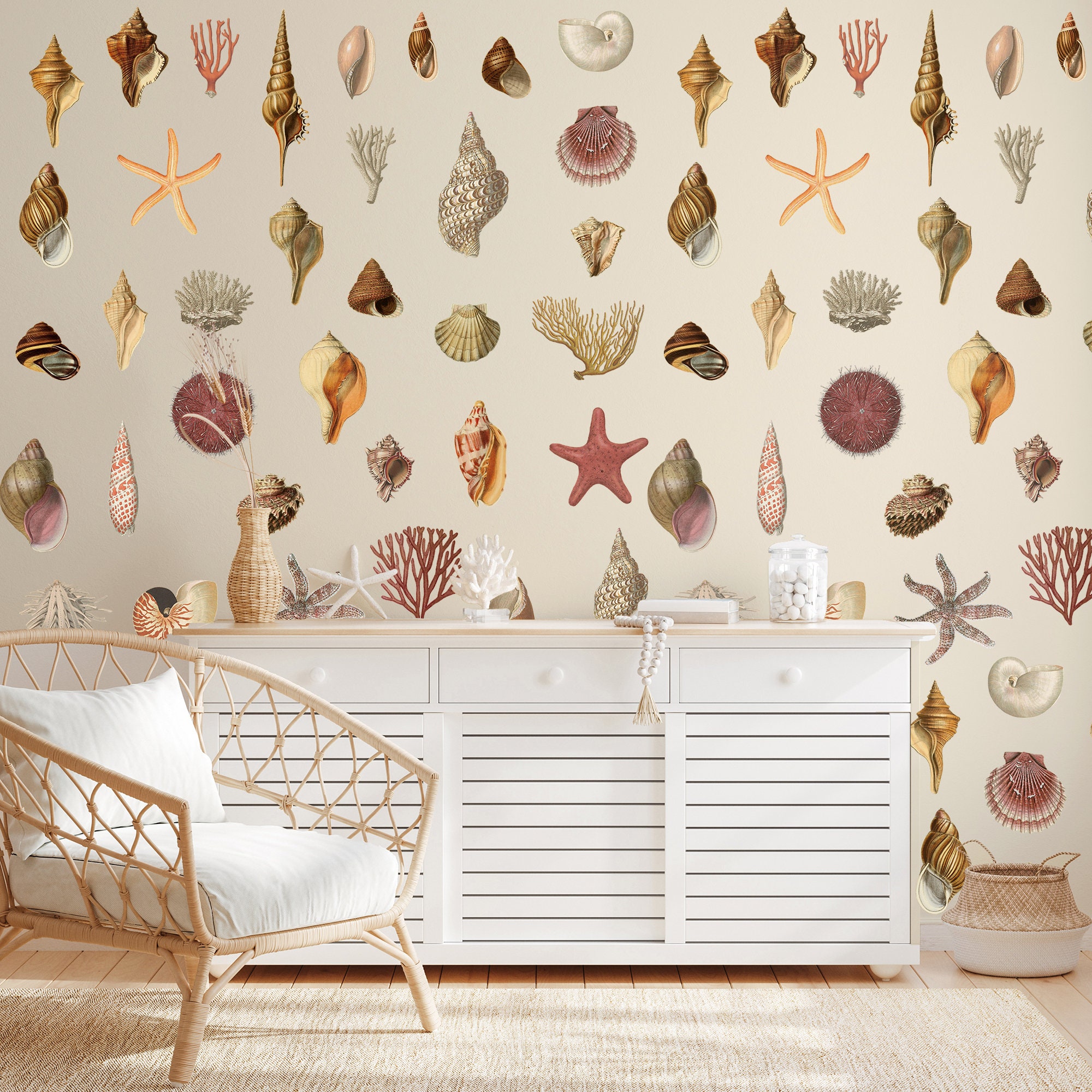 Vintage Seashell Wallpaper: Coastal Beach House Decor, Peel and Stick Wall Mural