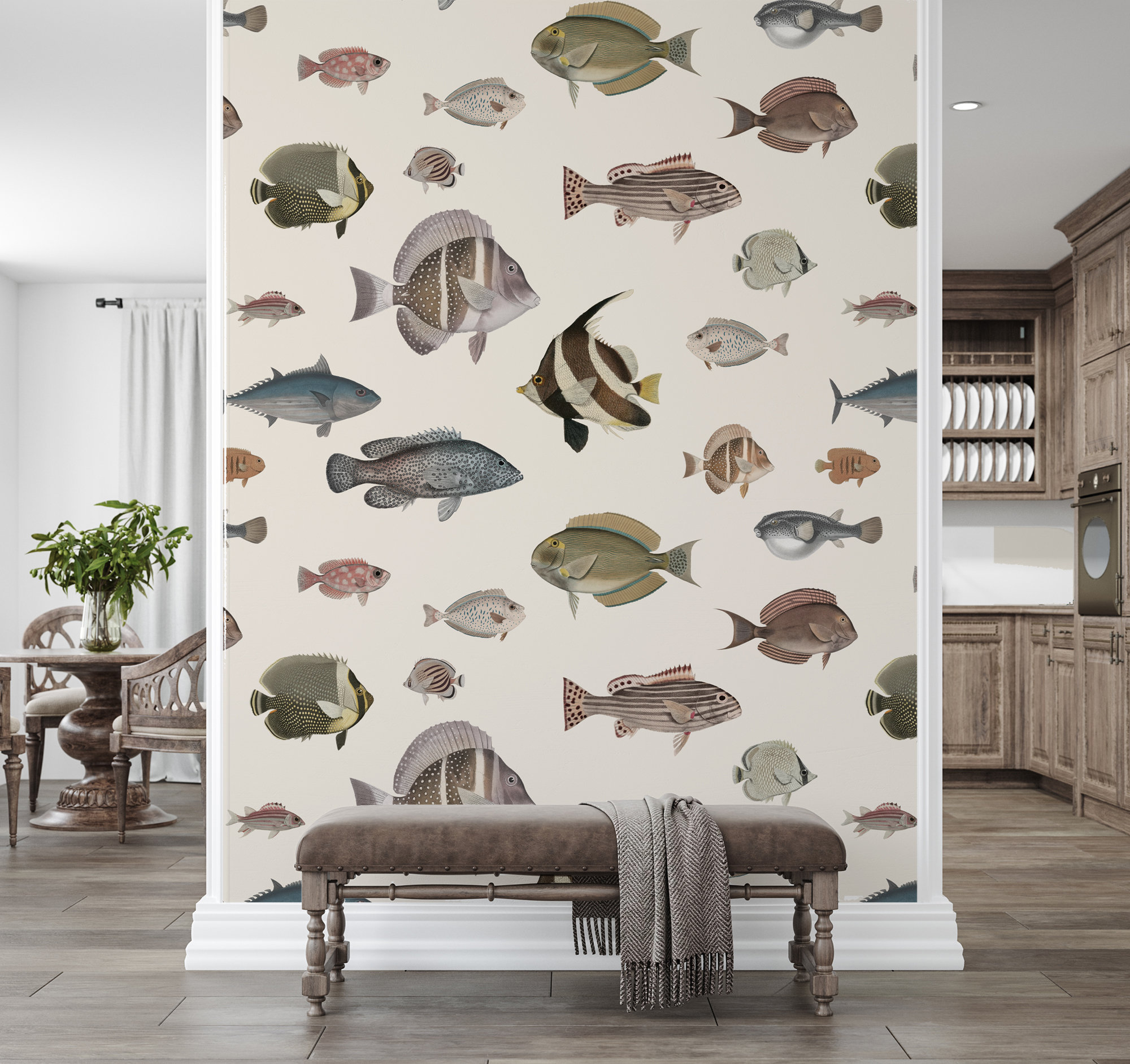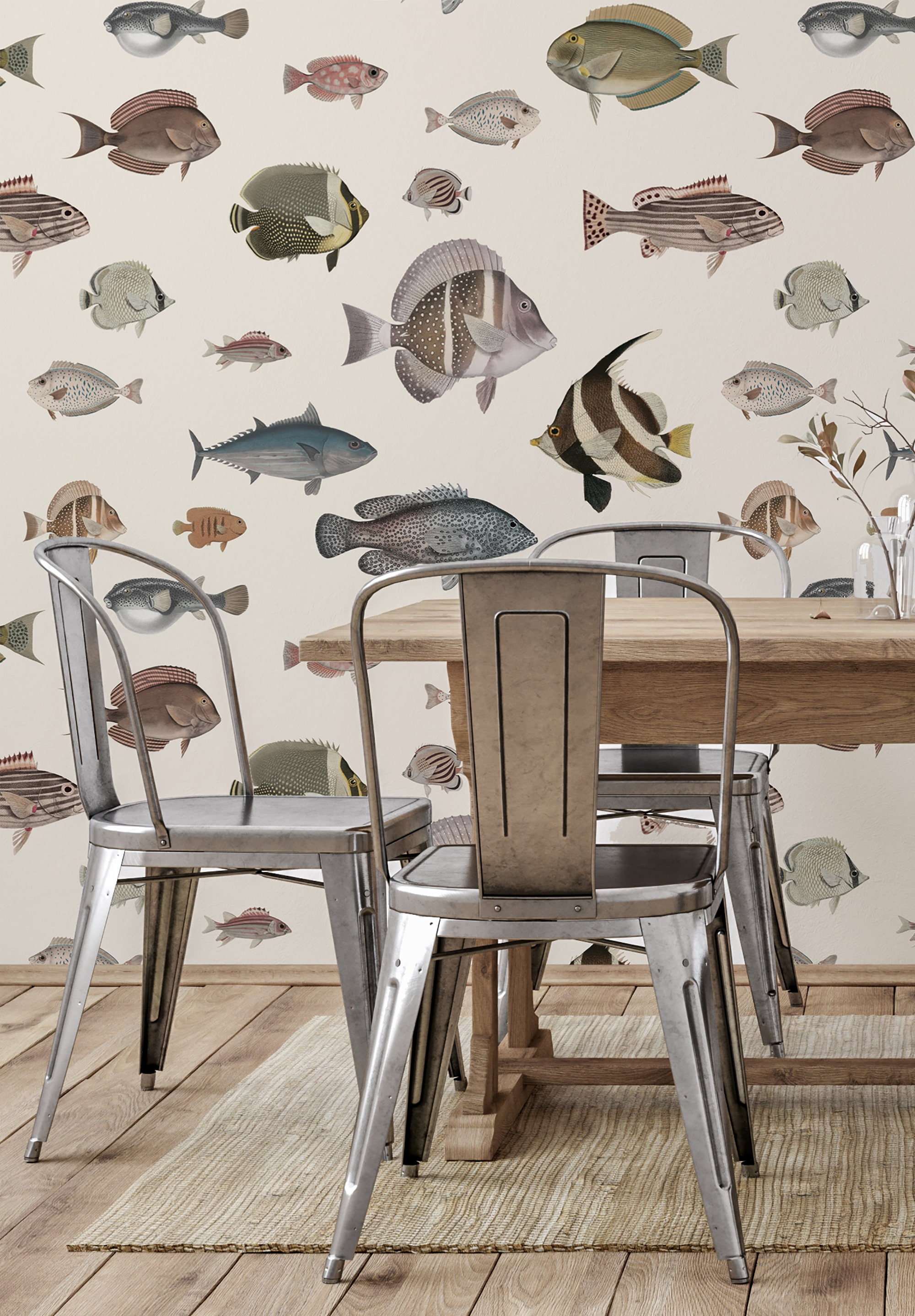 Vintage Fish Wallpaper Mural: Hand-Drawn Ocean Pattern, Removable Vinyl