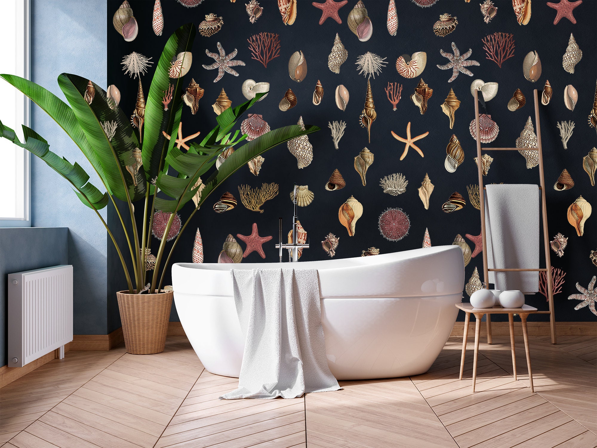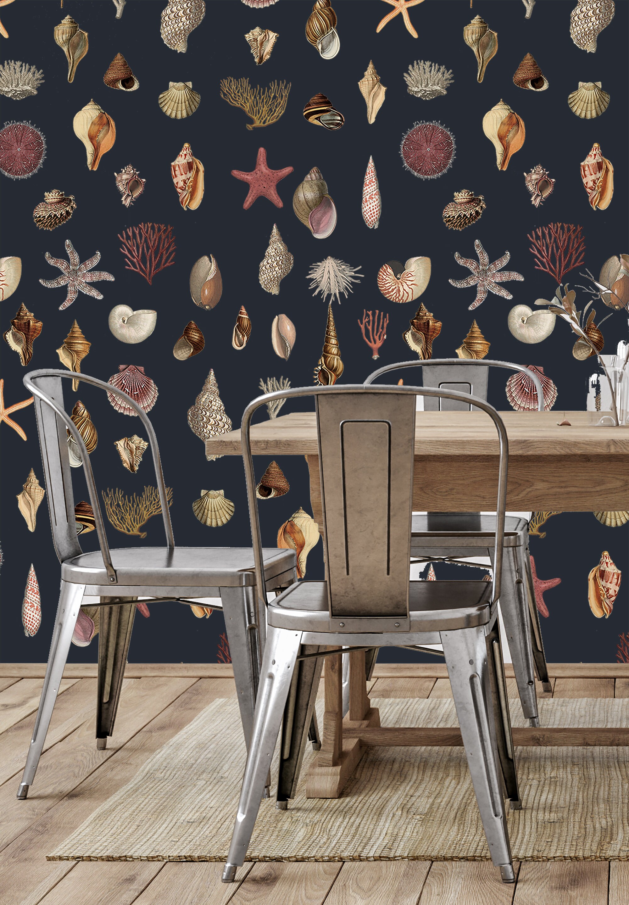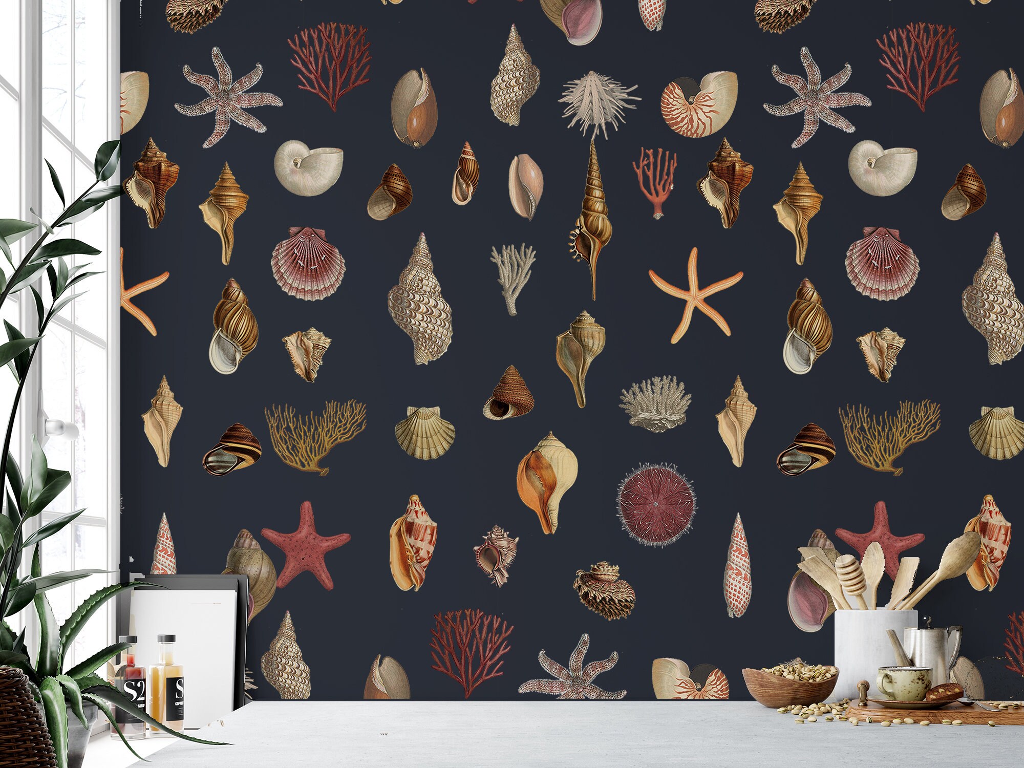 Introducing our magnificent Vintage Seashell Wallpaper, designed to transport you to the mesmerizing depths of the ocean. This unique wallpaper showcases exquisite starfish and coral motifs, creating an enchanting sea world right within your home. The sublime ocean, with its deep dark blue hues, unveils its precious jewels, gifting us with its awe-inspiring beauty. Embellish every corner of your living space with these immaculate treasures from the sea, and let their presence invoke a sense of tranquility and elegance. Transform your home into a captivating sanctuary with these extraordinary gifts from the sea.