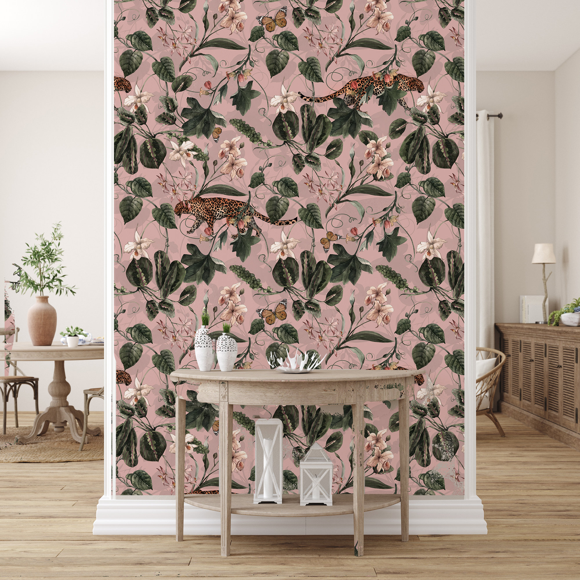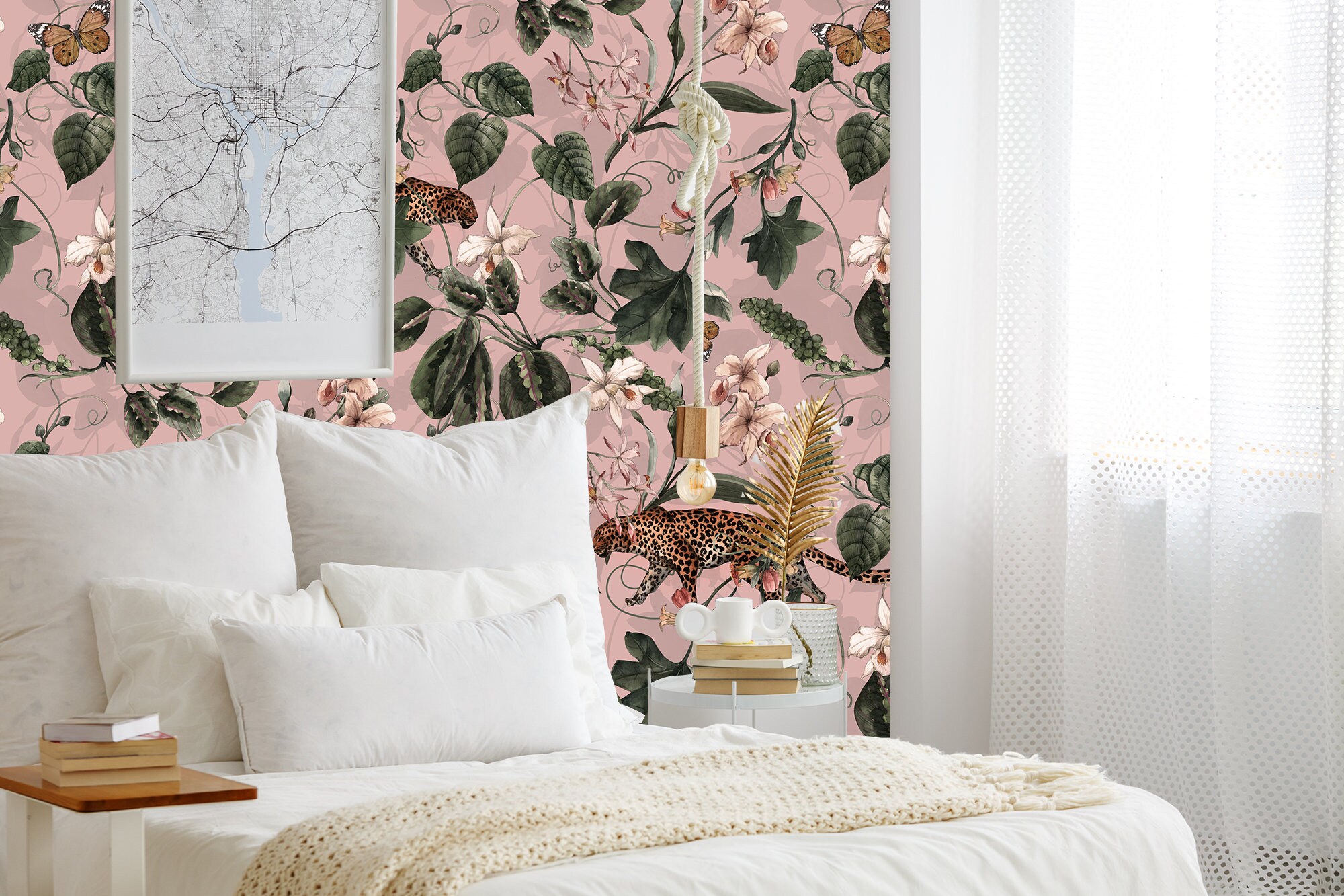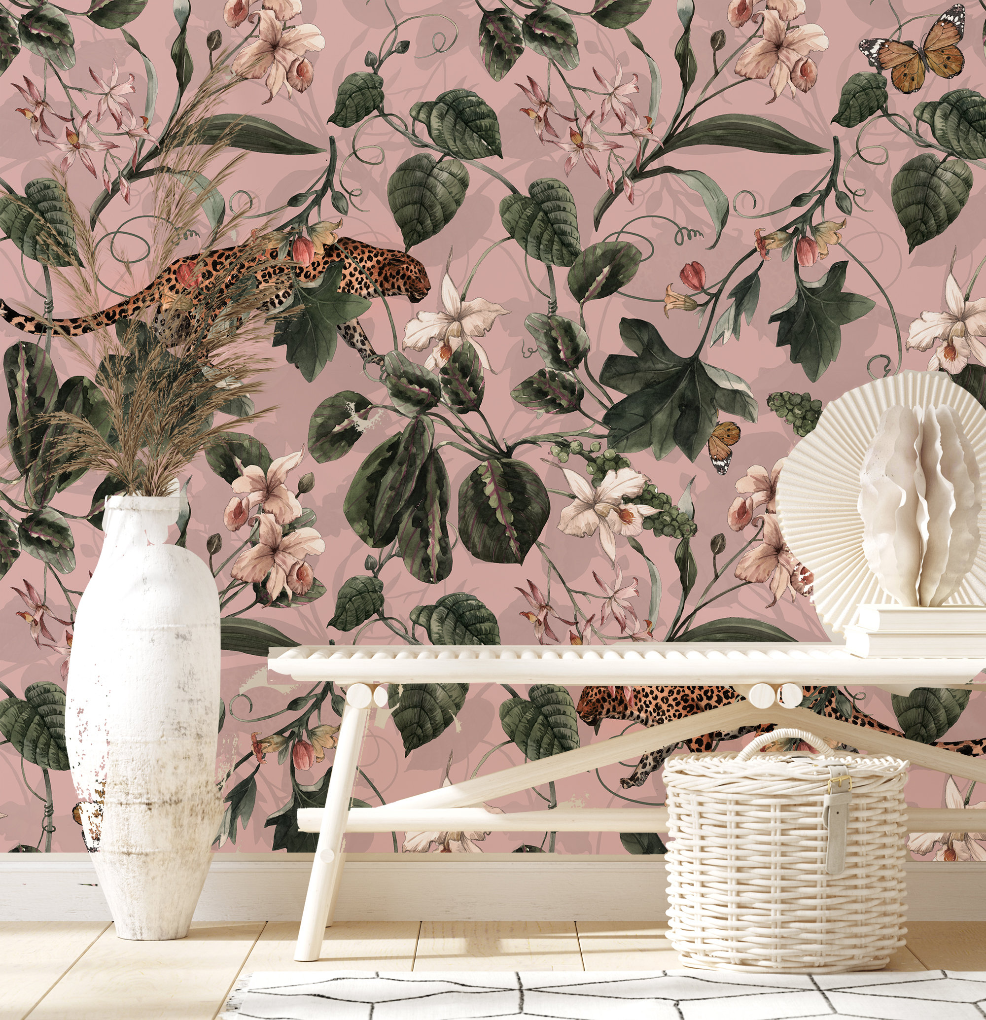 Cheetah & Floral Print Wallpaper: Pink, Peel and Stick, Removable